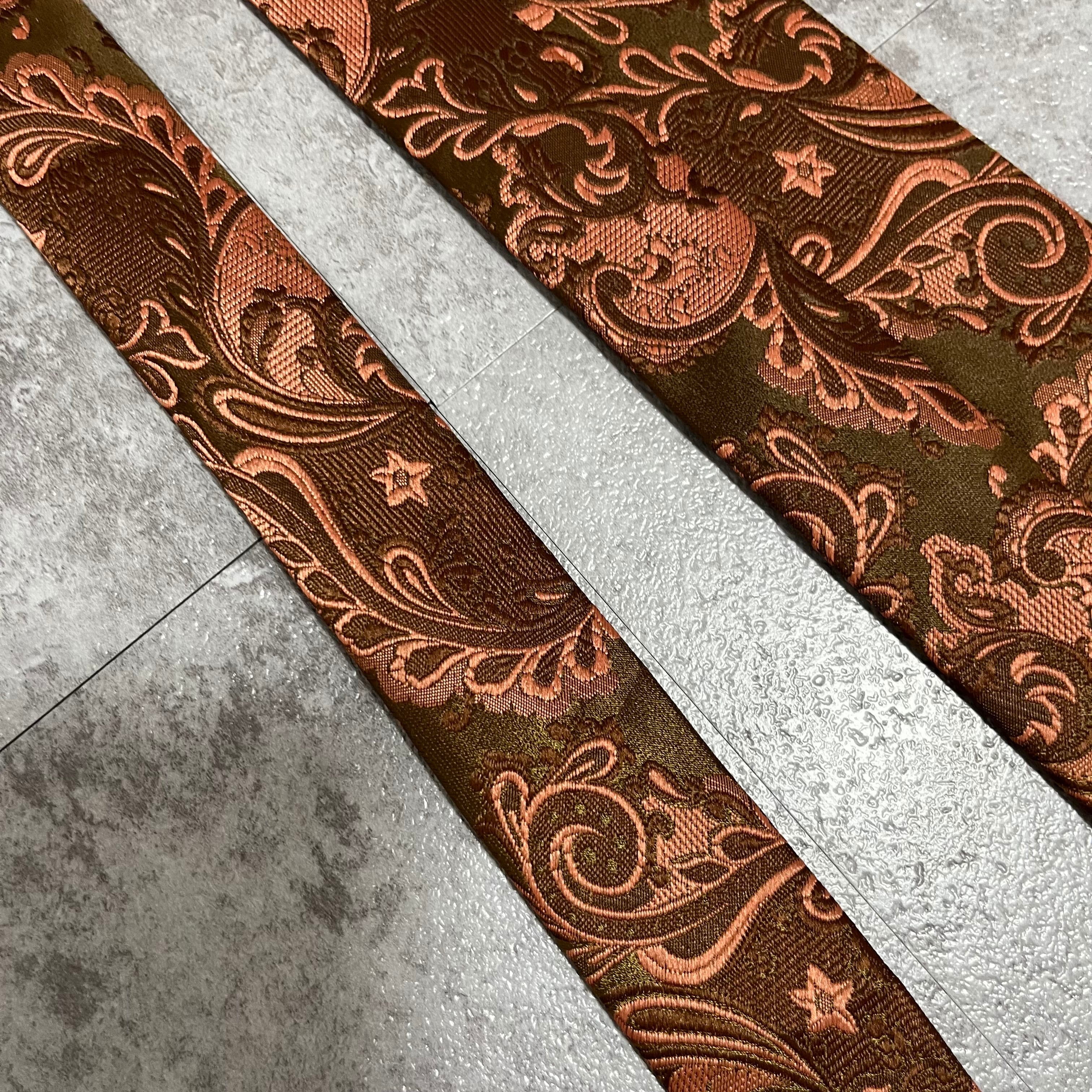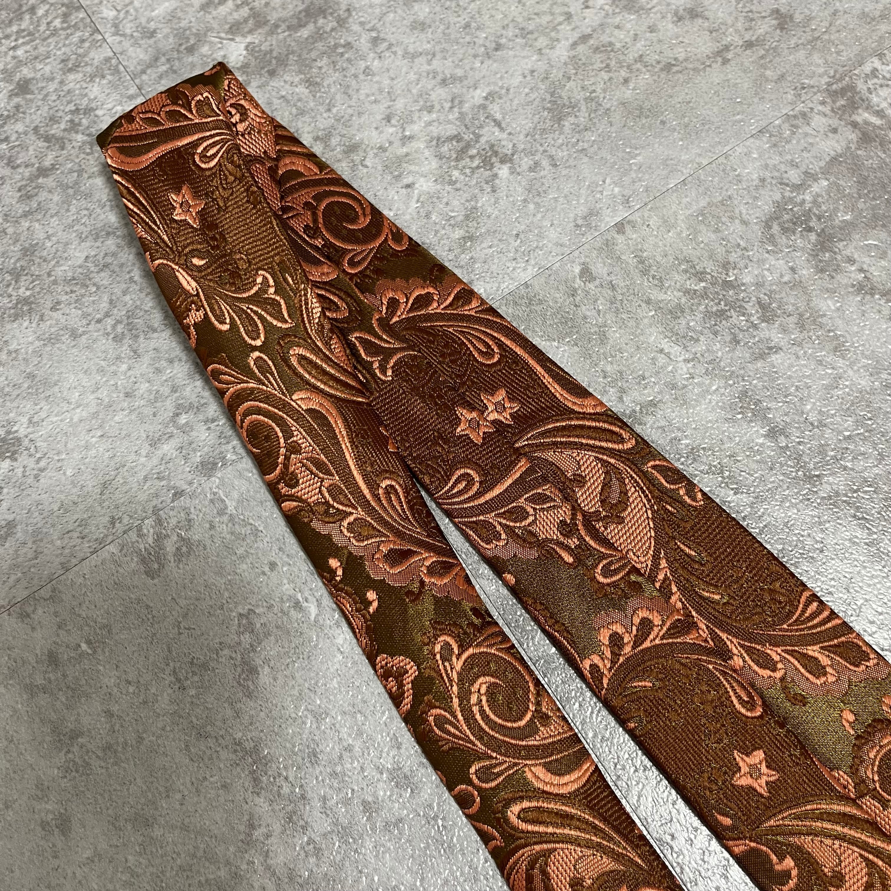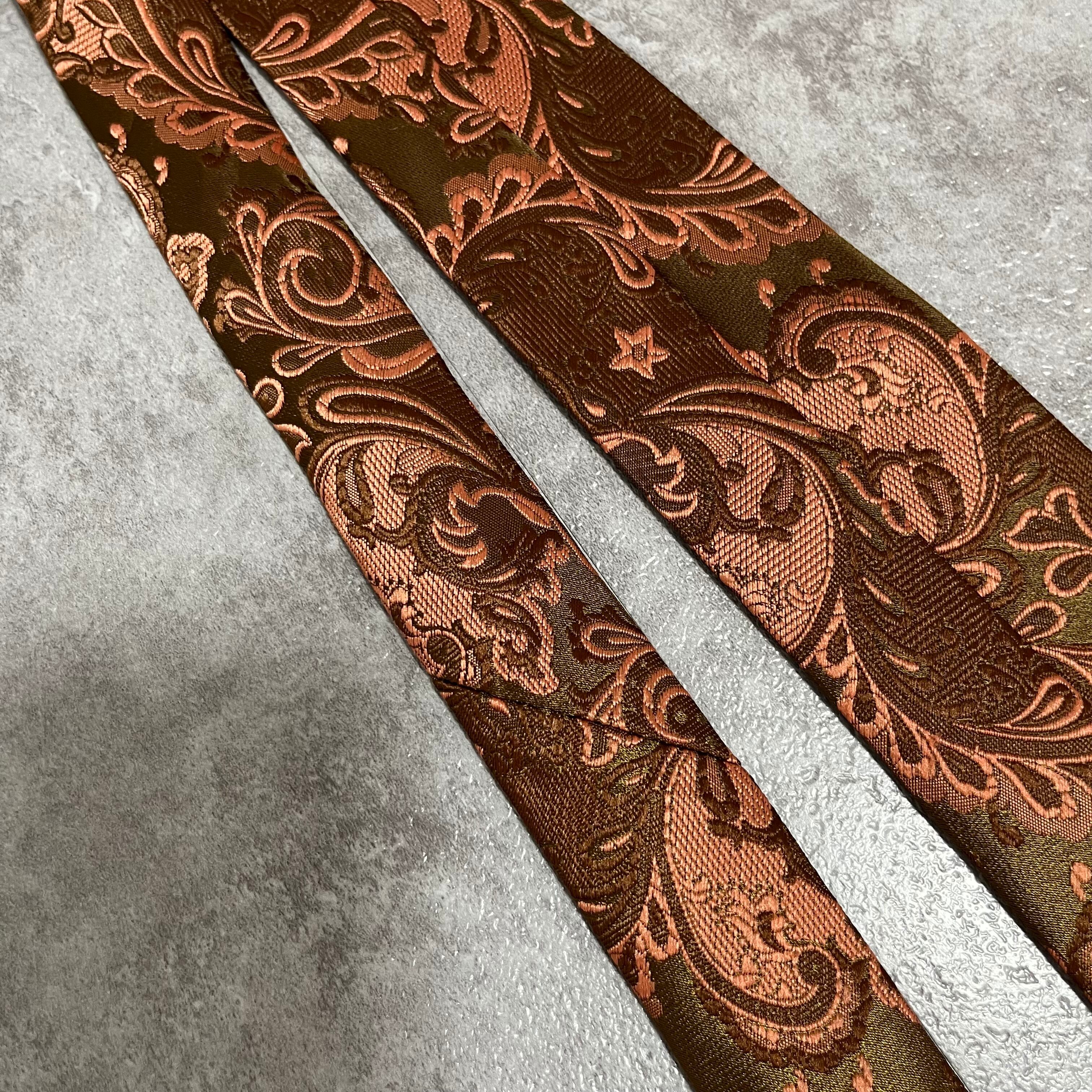 【ペイズリー柄】ペイズリー柄ネクタイ 光沢銅色 ブロンズ