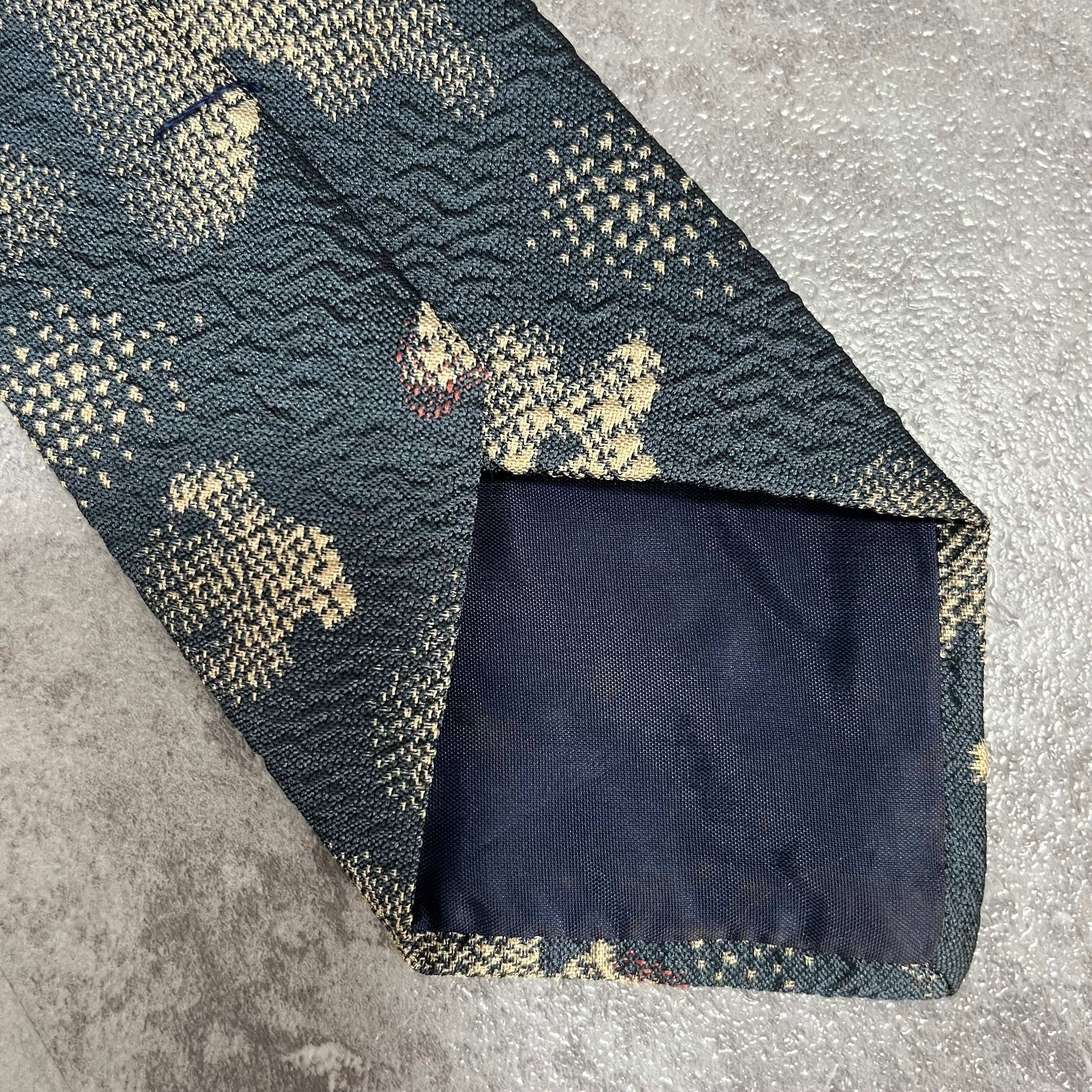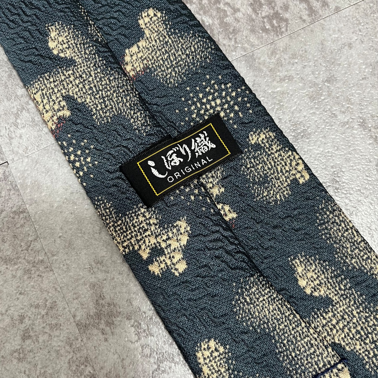 【和柄】しぼり織和柄ネクタイ ブルー ワッシャー加工 しわ加工