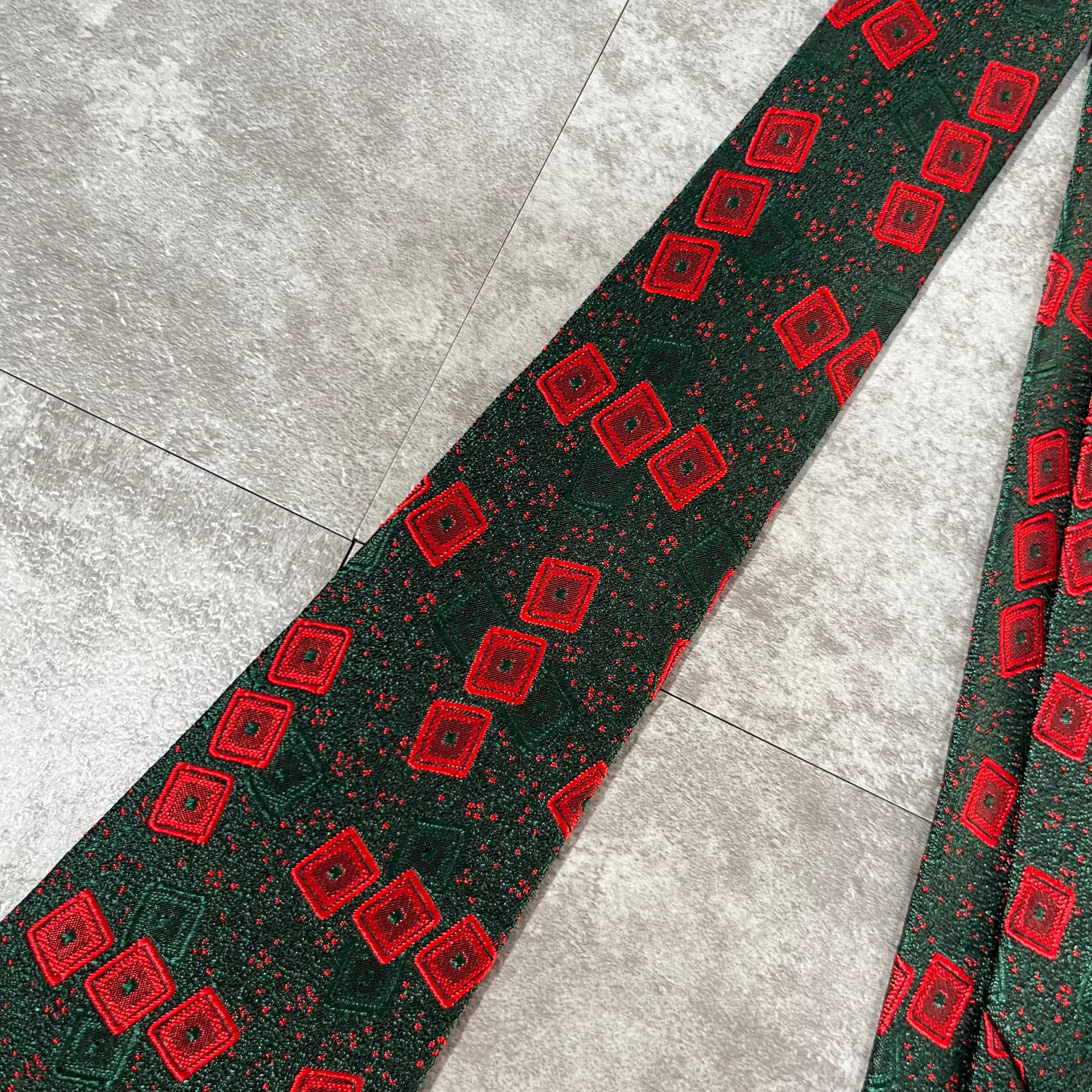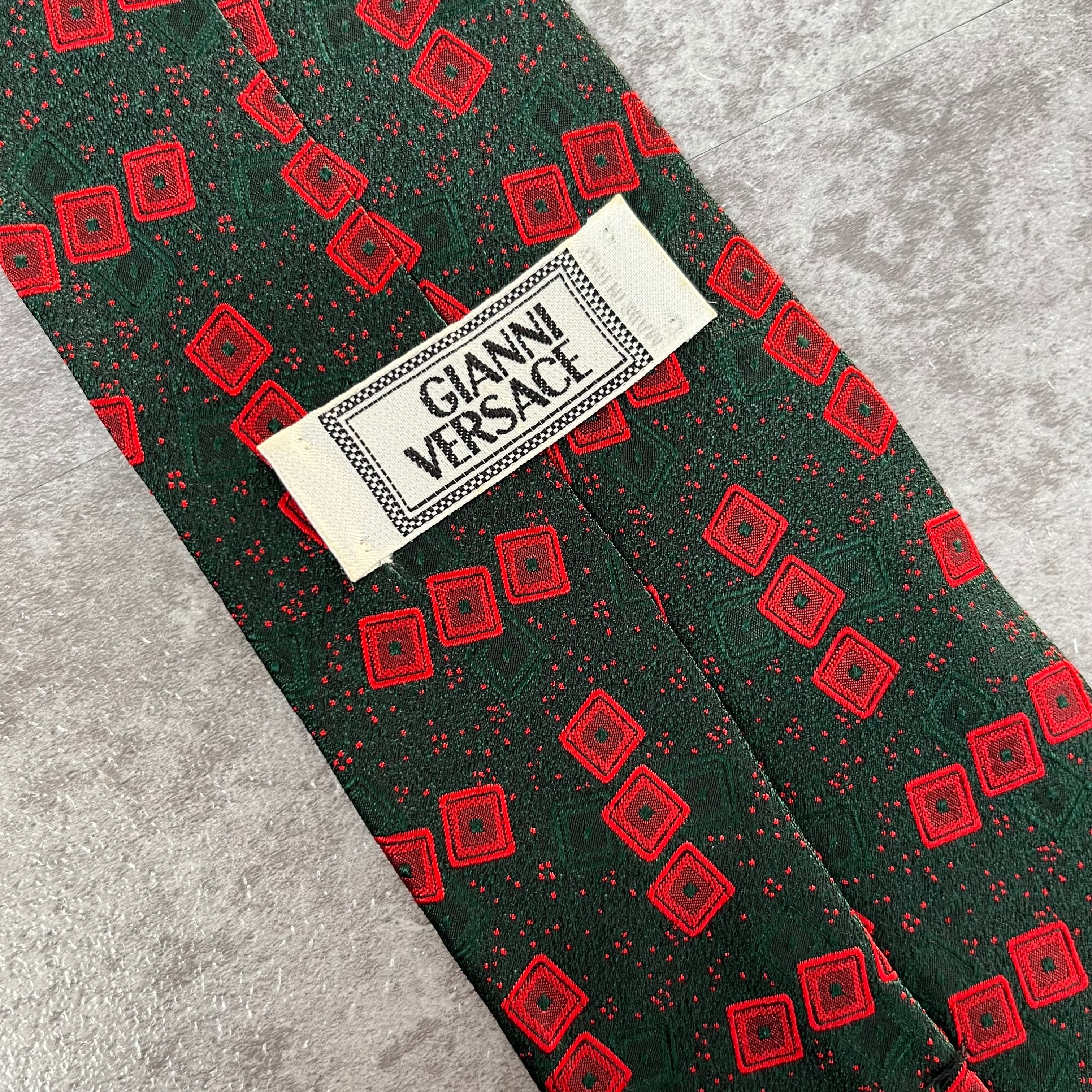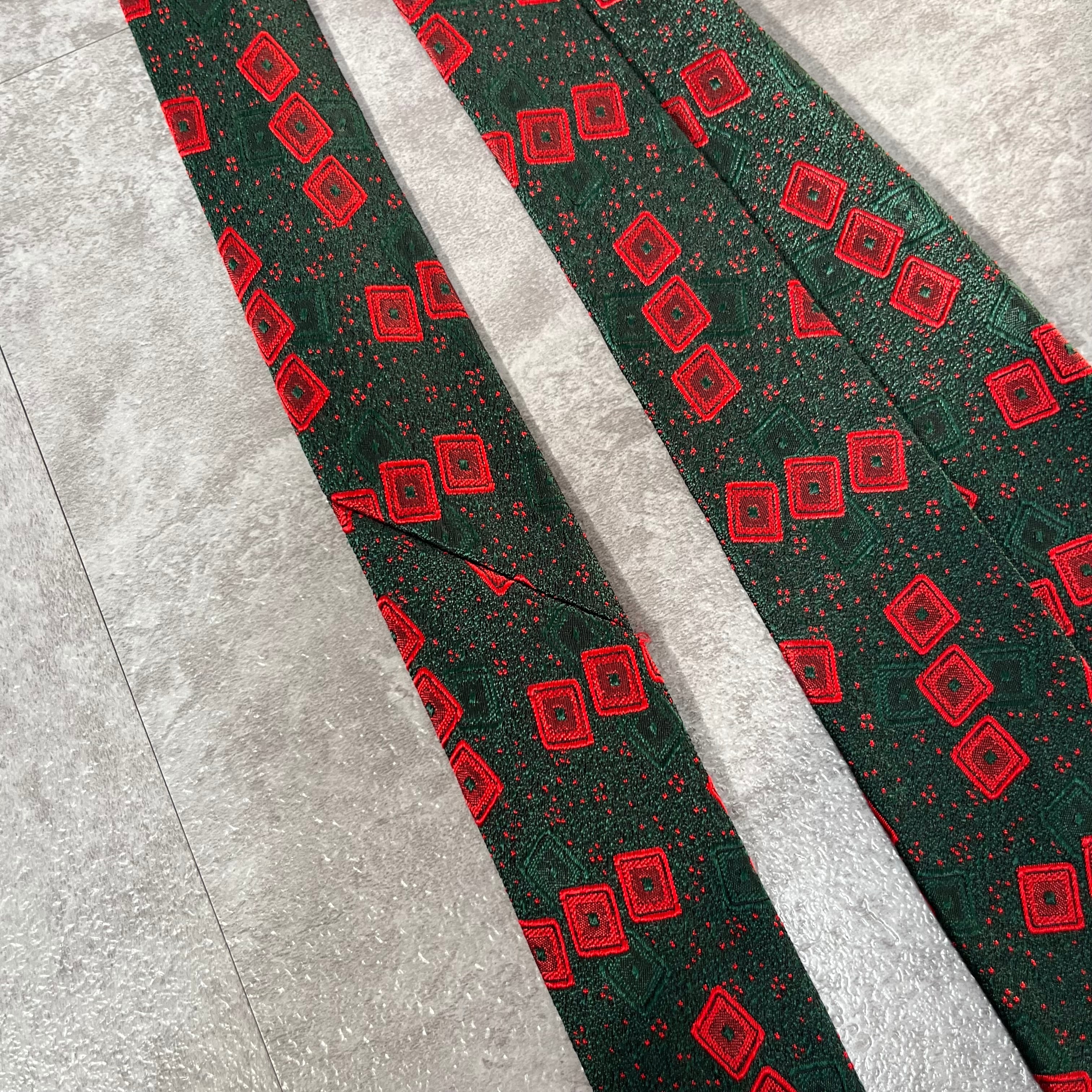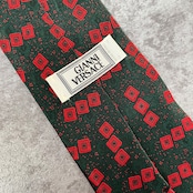 【Versace】バイカラーネクタイ グリーン レッド 小紋柄 パターン