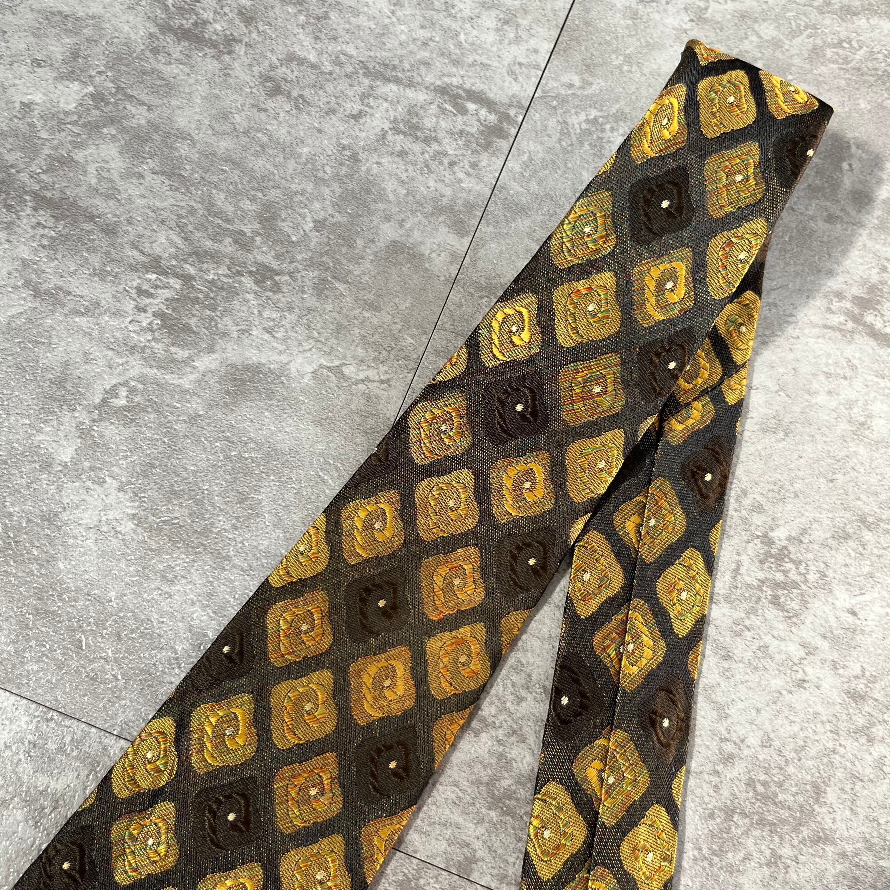 【銀座田屋】ジャガードチェックネクタイ バイカラー ブラウン ゴールド