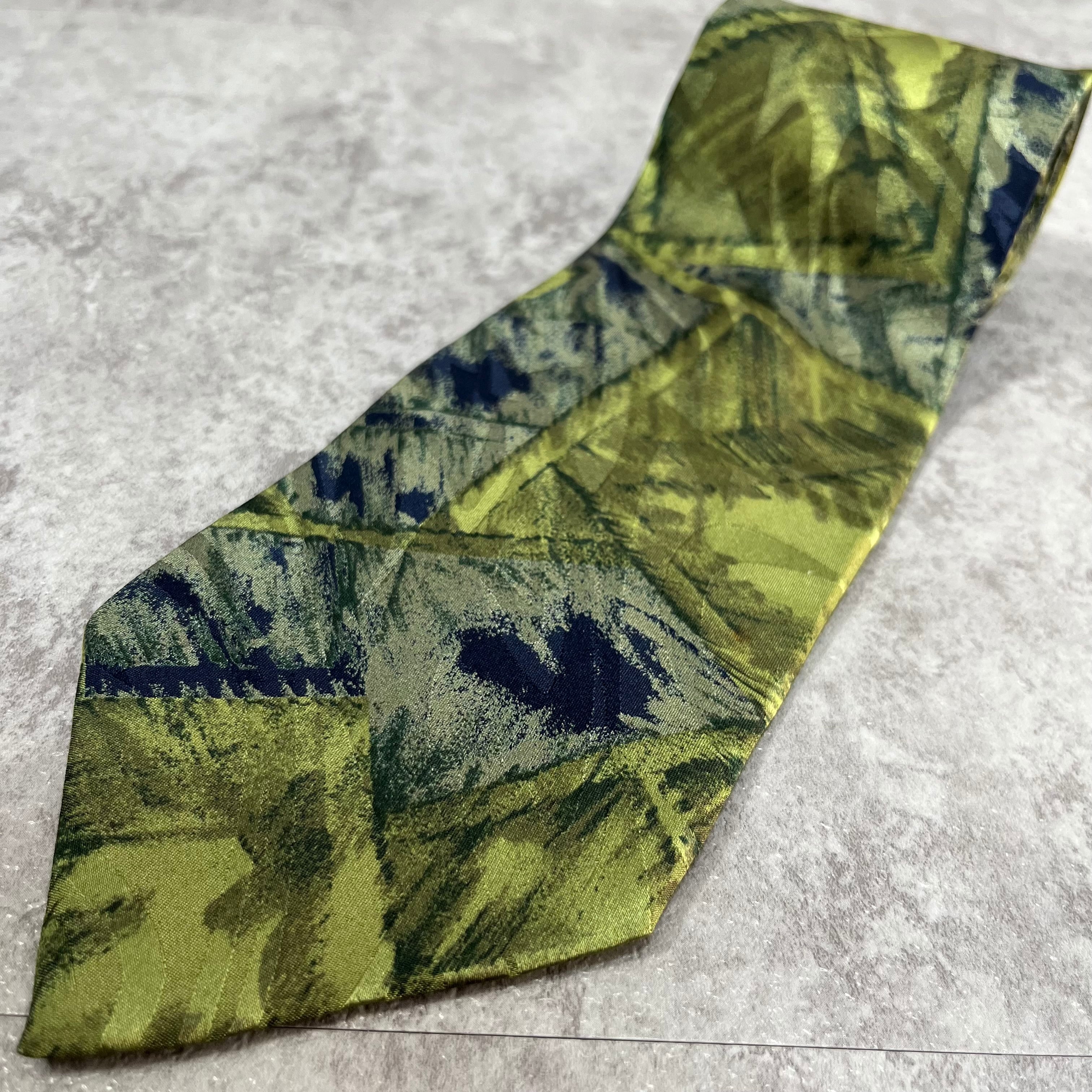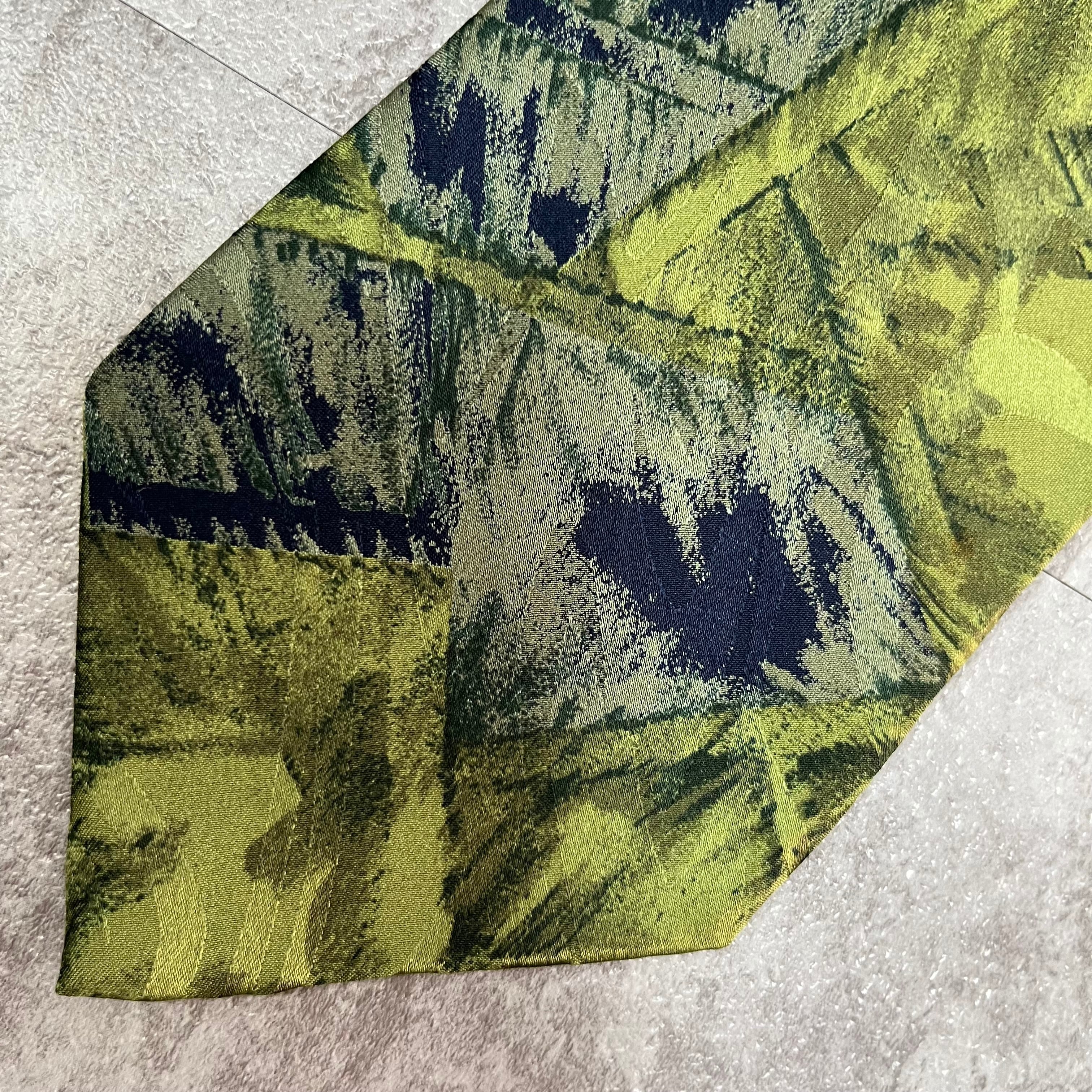 【Mr.JUNKO】光沢グリーンアート柄ネクタイ