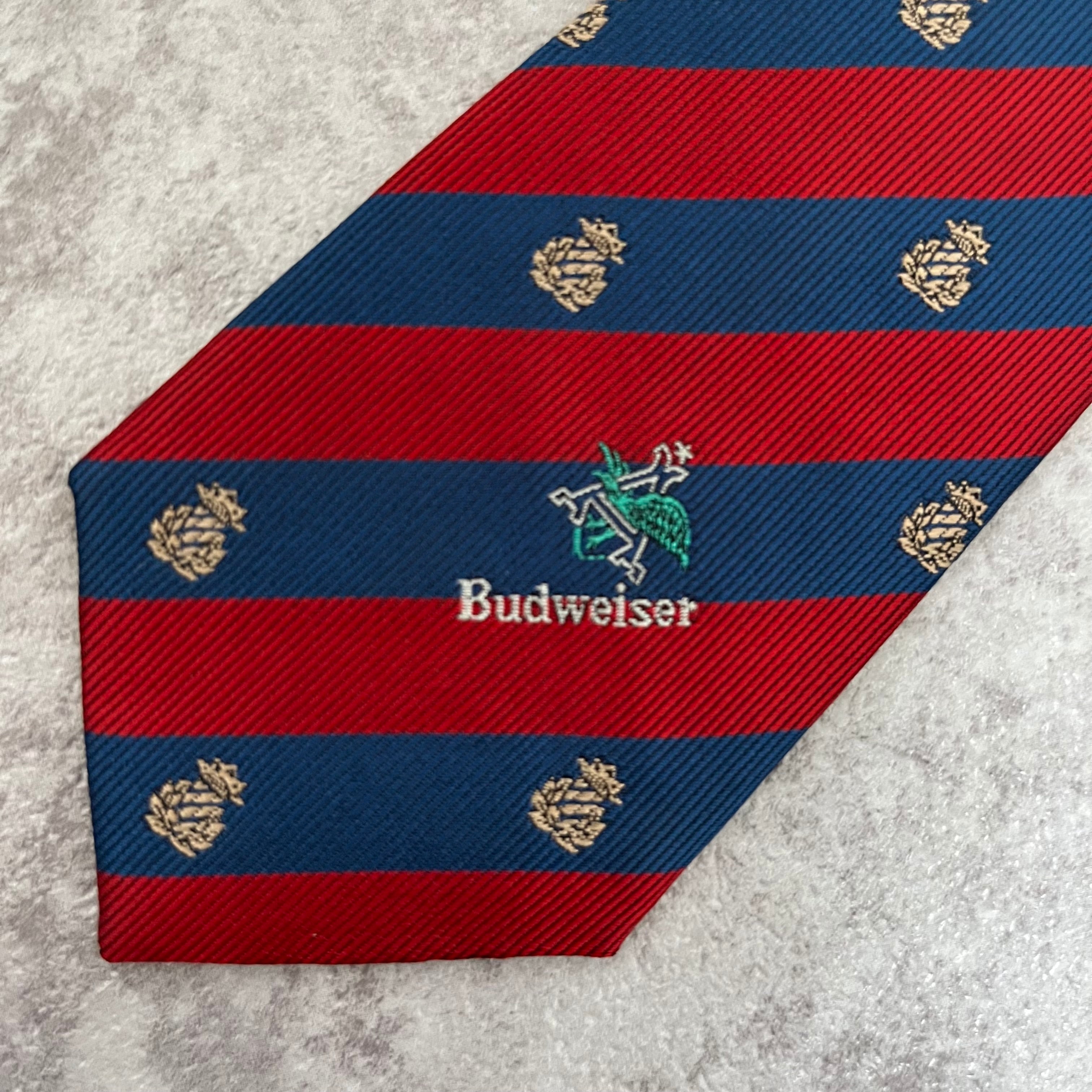 【Budweiser】レジメンタルストライプネクタイ ロゴ入り バイカラー レッド ブルー レア物