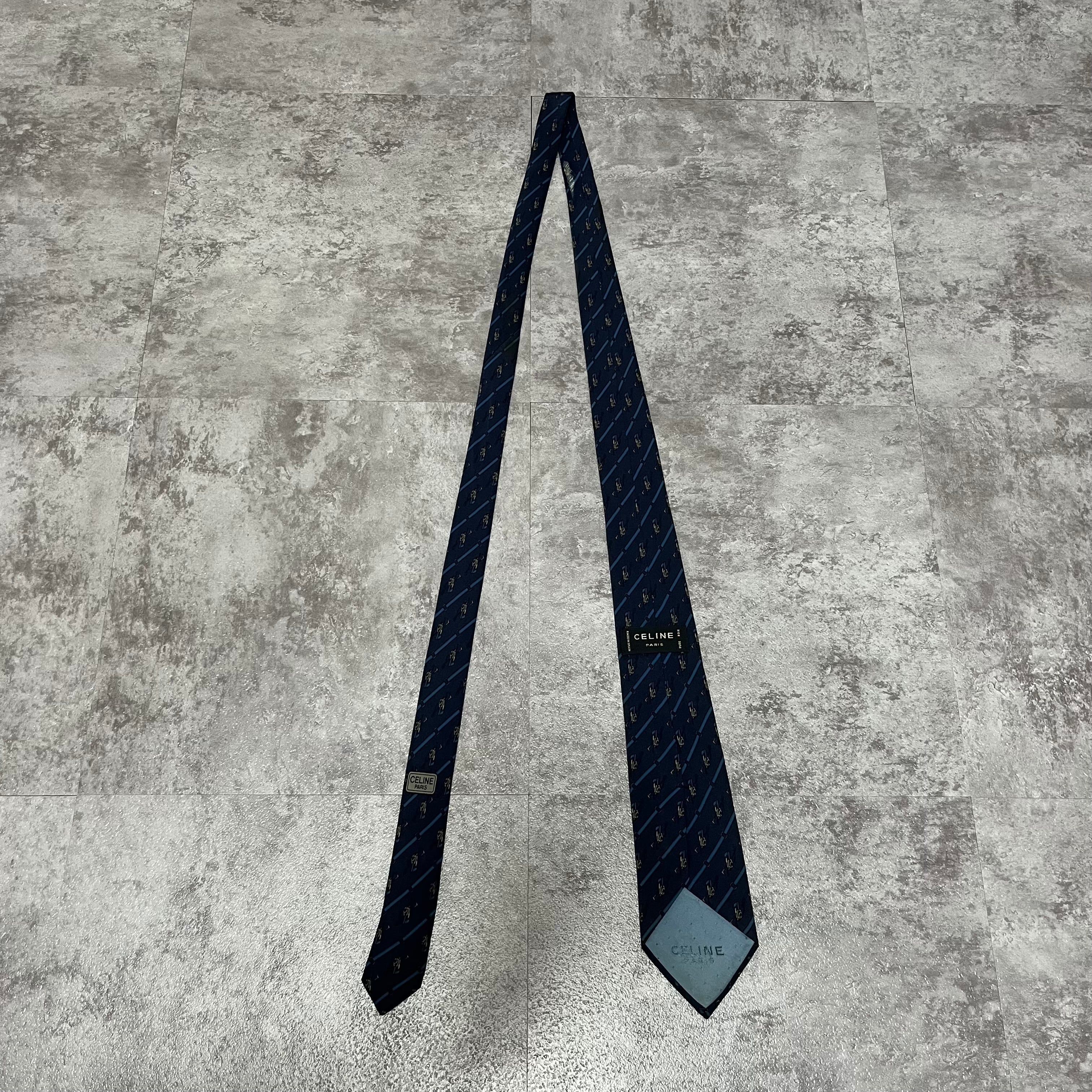 【CELINE】レジメンタルストライプネクタイ ネイビー 道具モチーフ