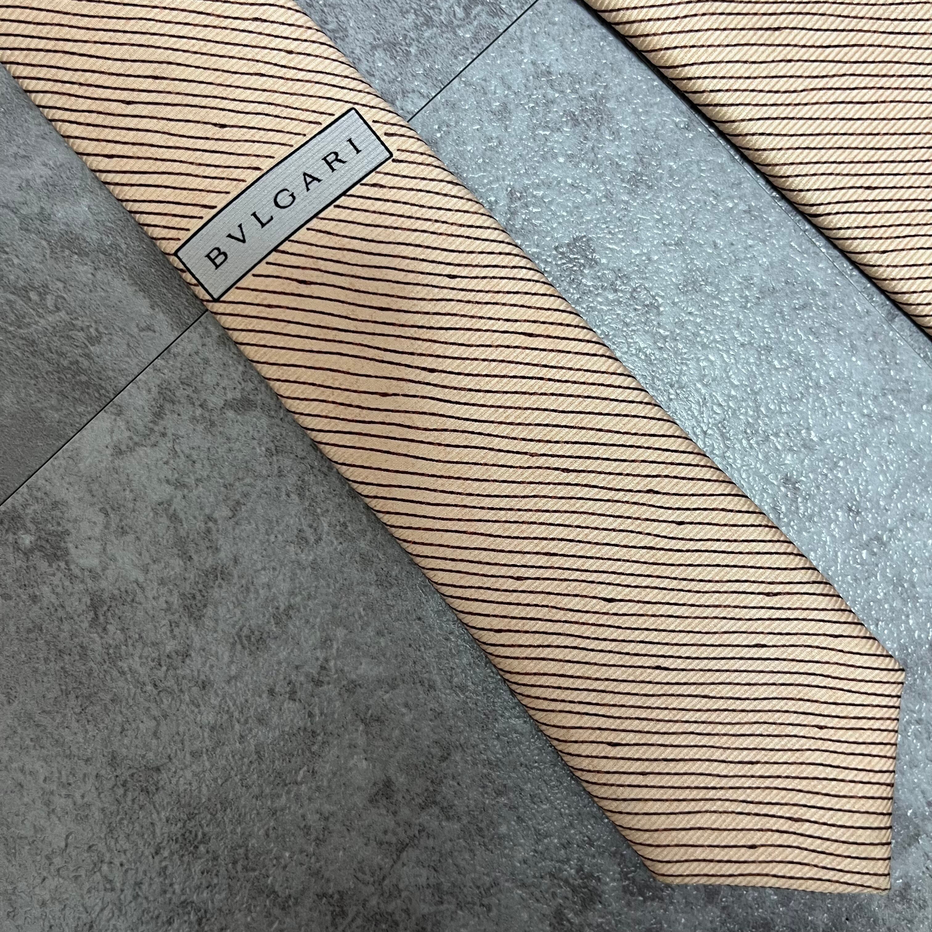 【BVLGARI】レジメンタルストライプネクタイ ピンクベージュ 最高級 セッテピエゲ