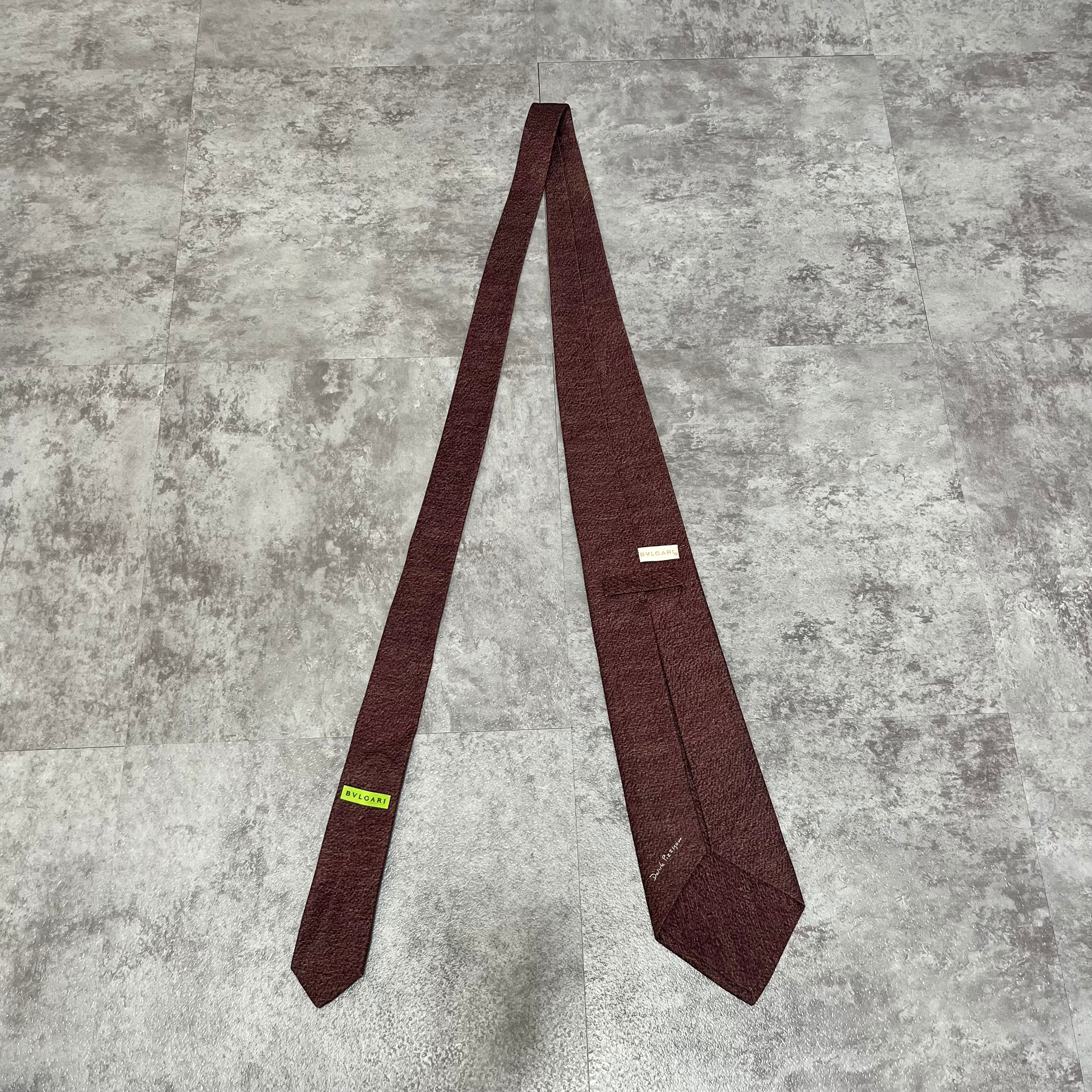 【BVLGARI】無地ネクタイ ワインレッド 最高級 セッテピエゲ