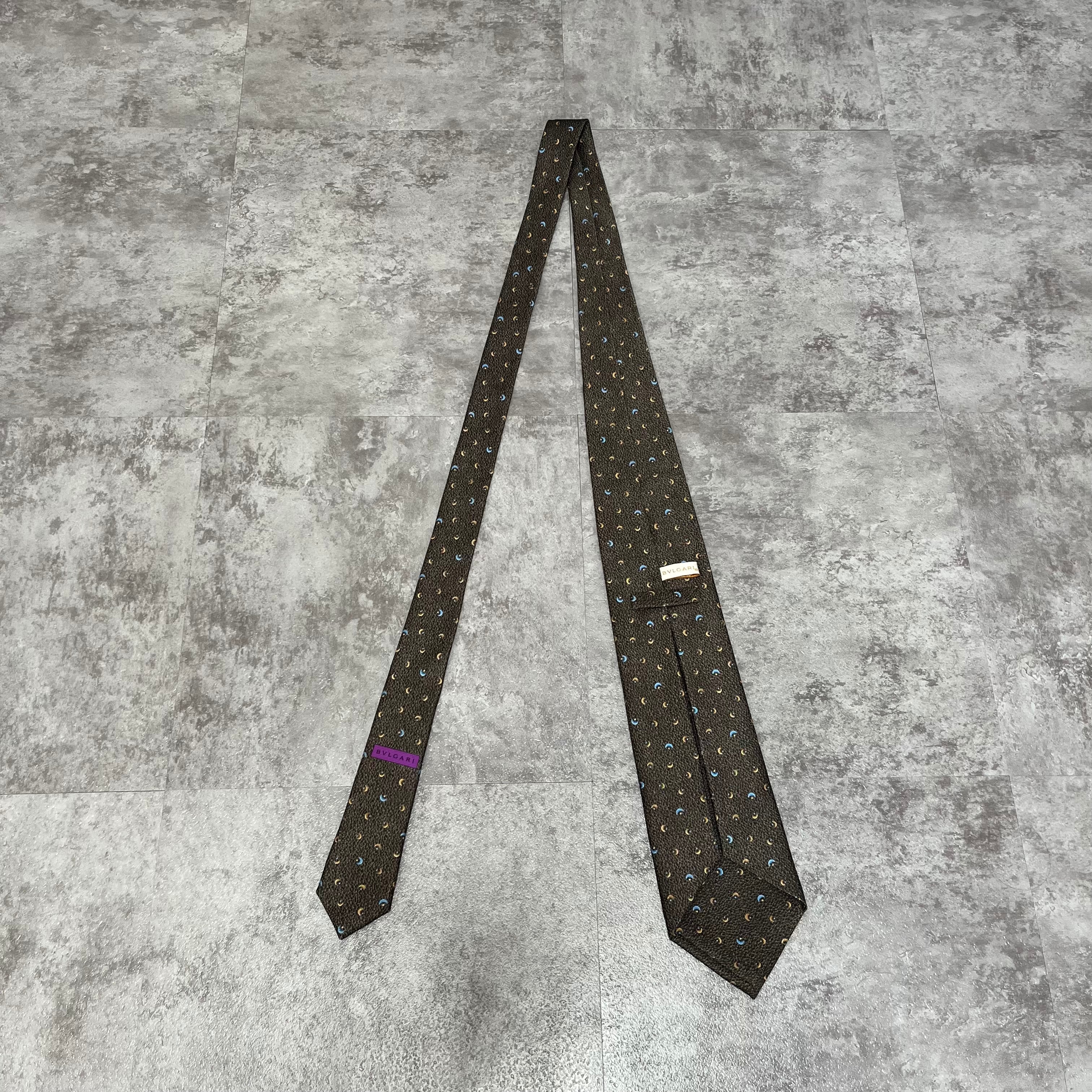【BVLGARI】月模様ネクタイ グレー 小紋柄 最高級 セッテピエゲ