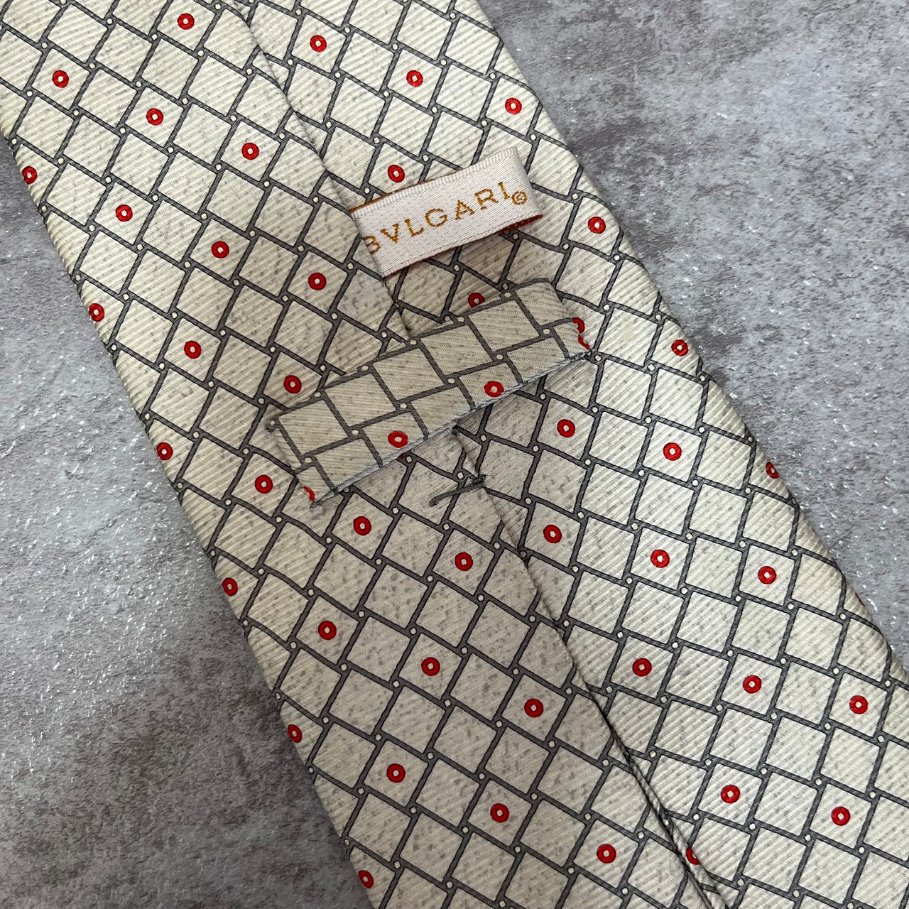 【BVLGARI】スクエアパターンドットネクタイ ライトグレー 最高級 セッテピエゲ
