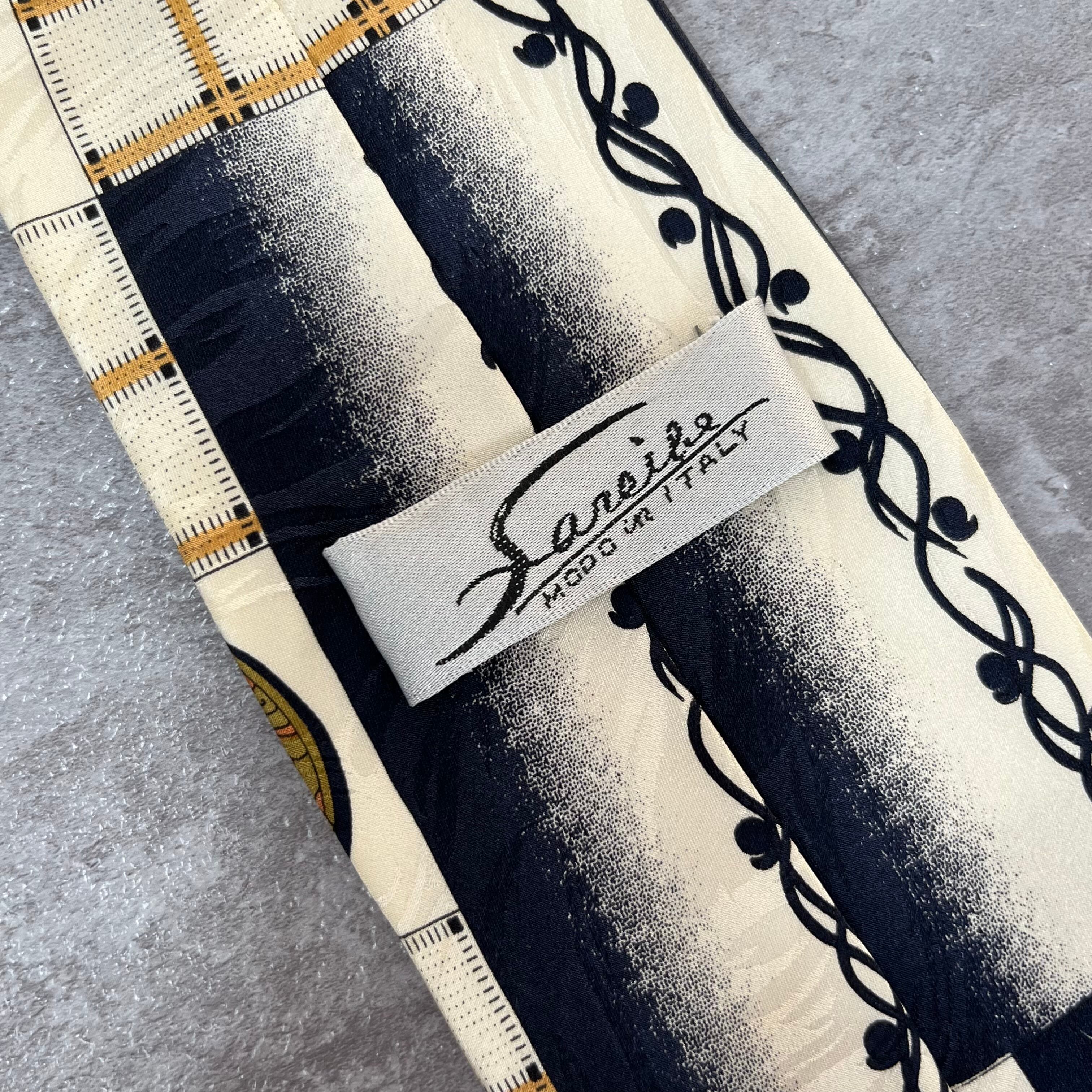 【パネル柄】パターンネクタイ ベージュ ブラック シャドウライン