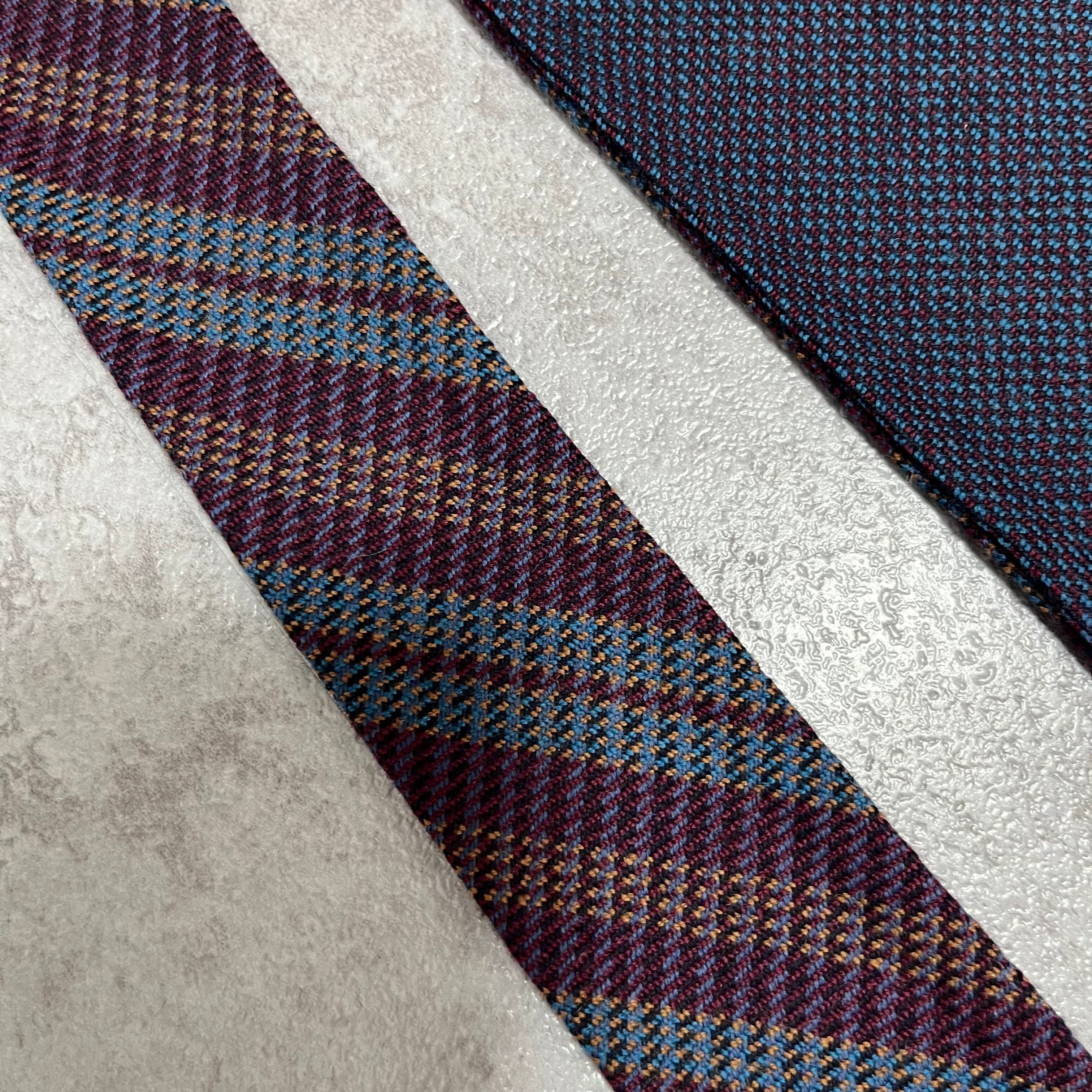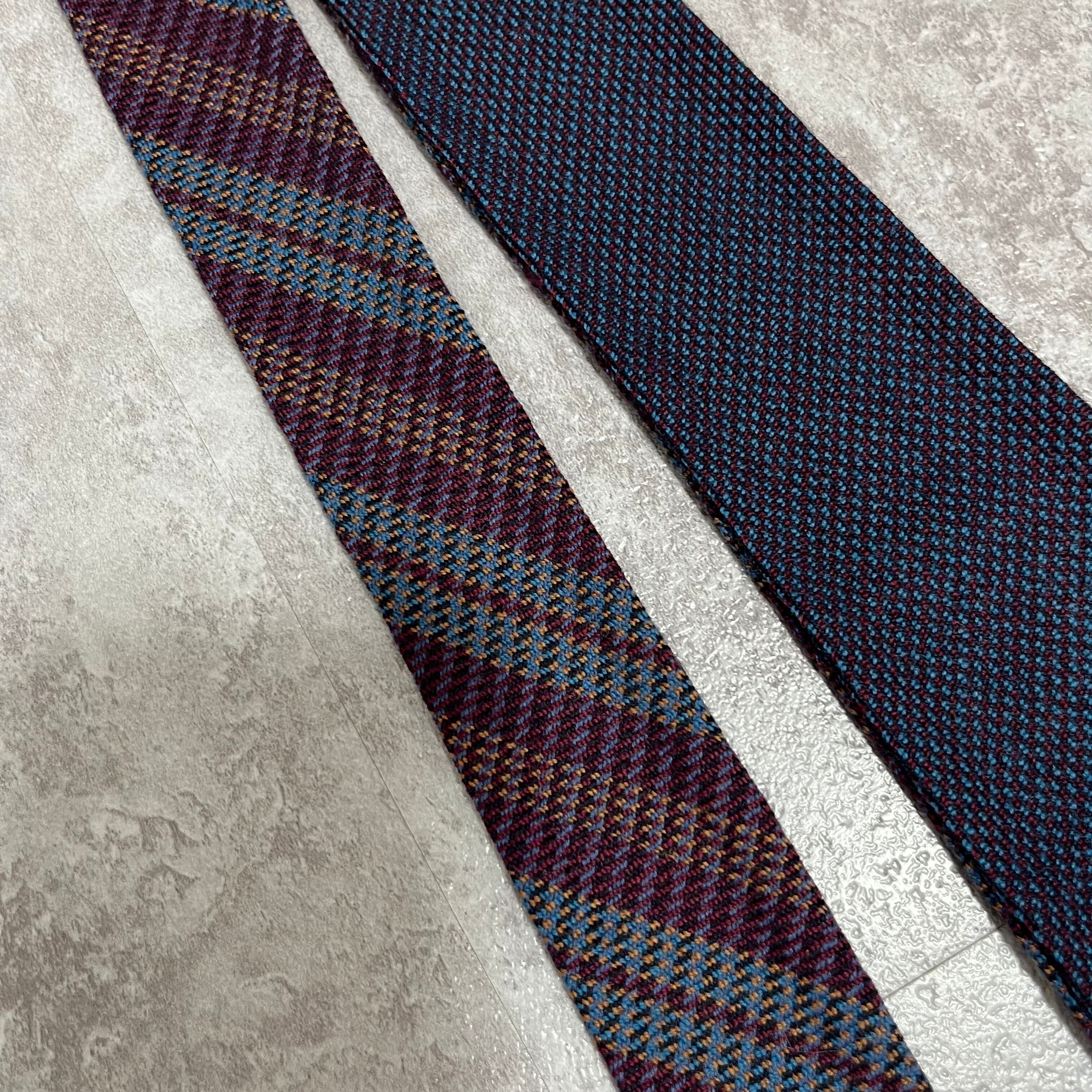 【Mila Schoen】レジメンタルストライプ マルチカラー ワインレッド ブルー ニットタイ