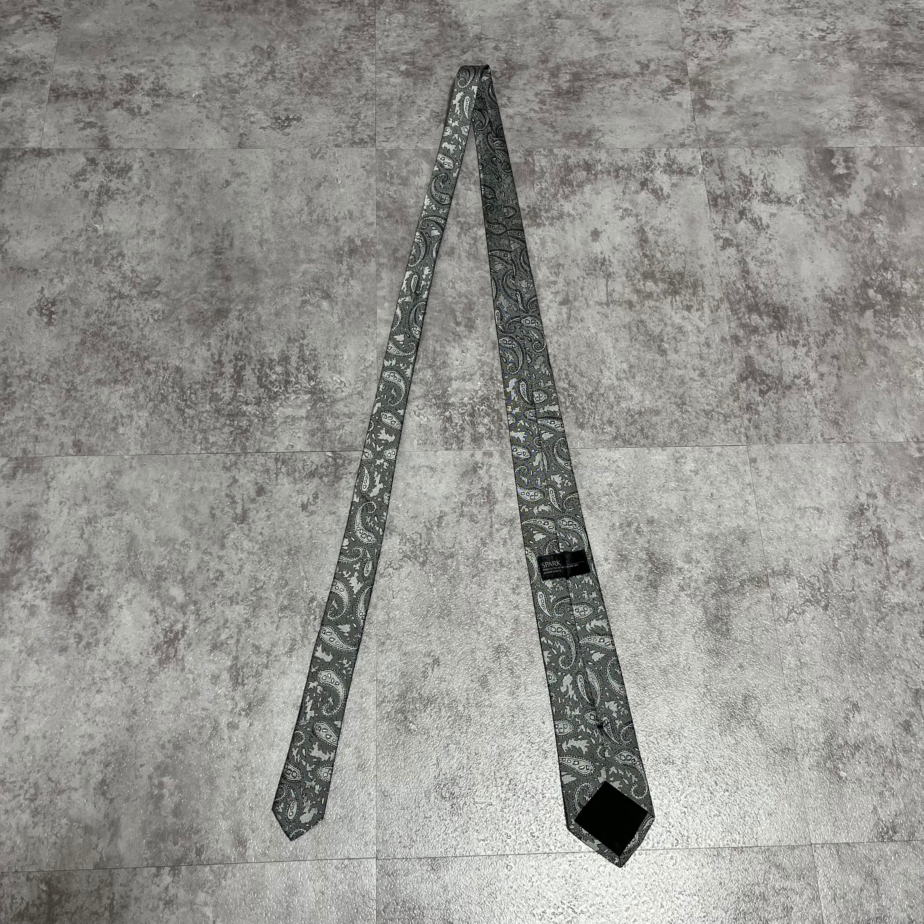 【ペイズリー柄】ペイズリーネクタイ シルバー 細め
