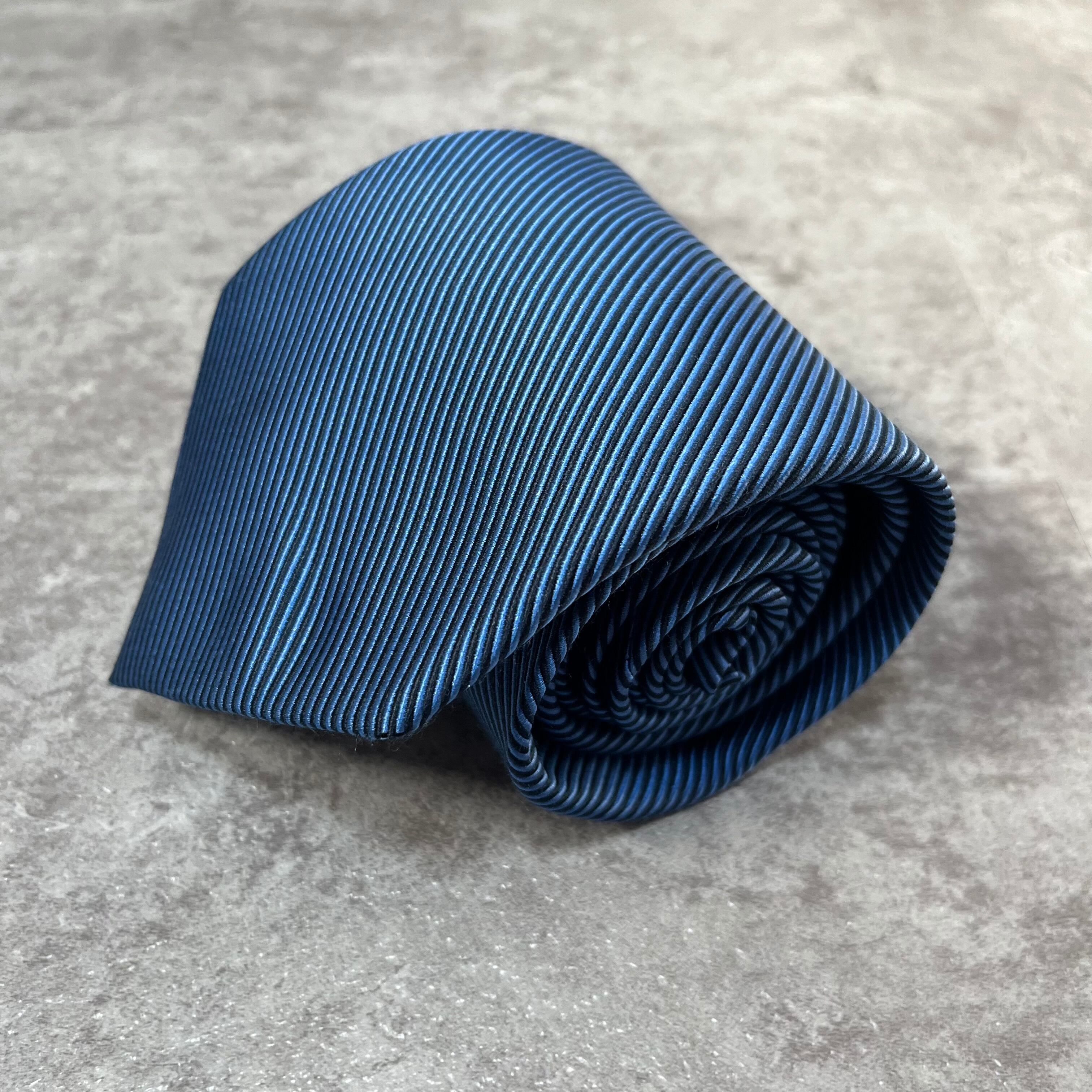 【Burberry】無地ブルーネクタイ 上品 細ストライプ