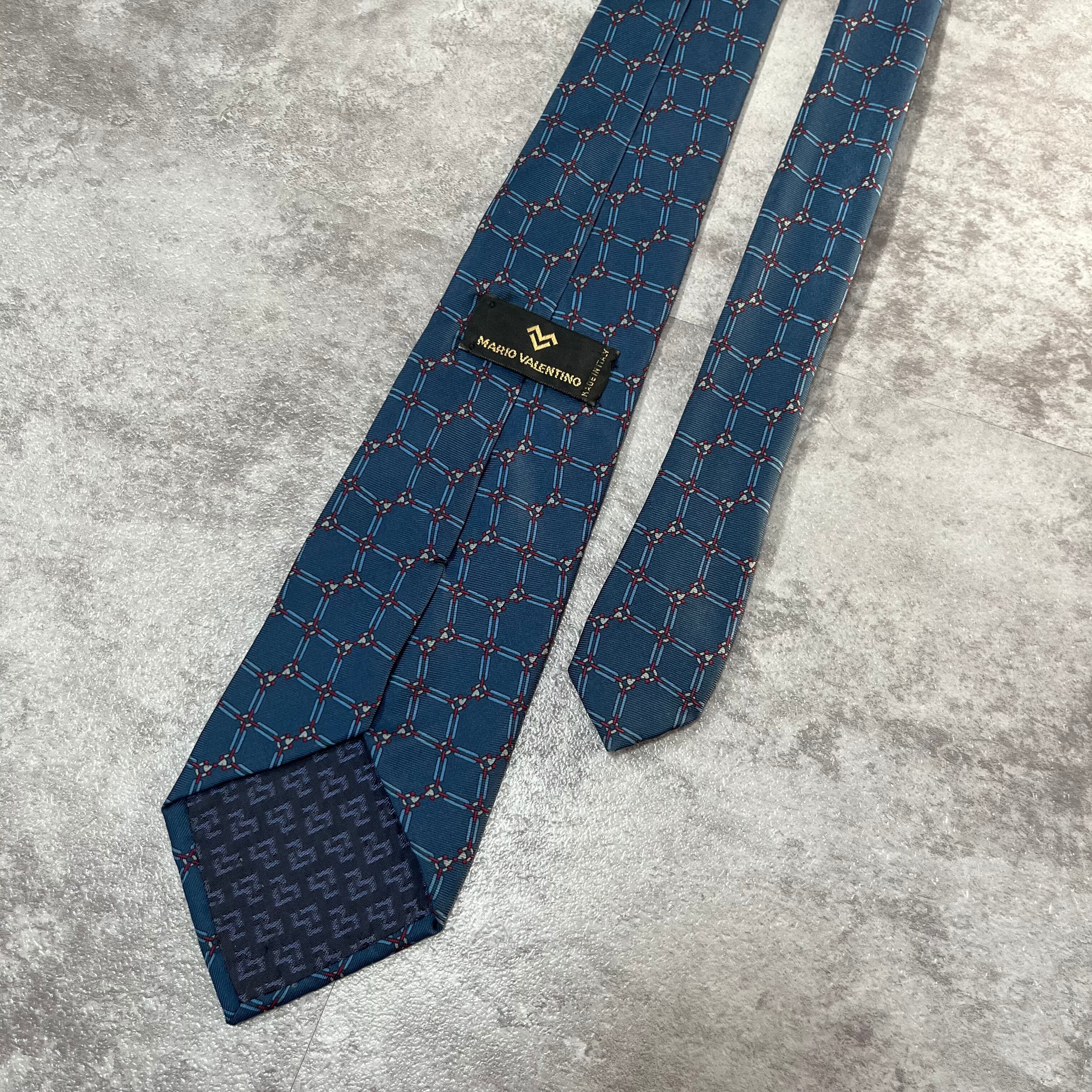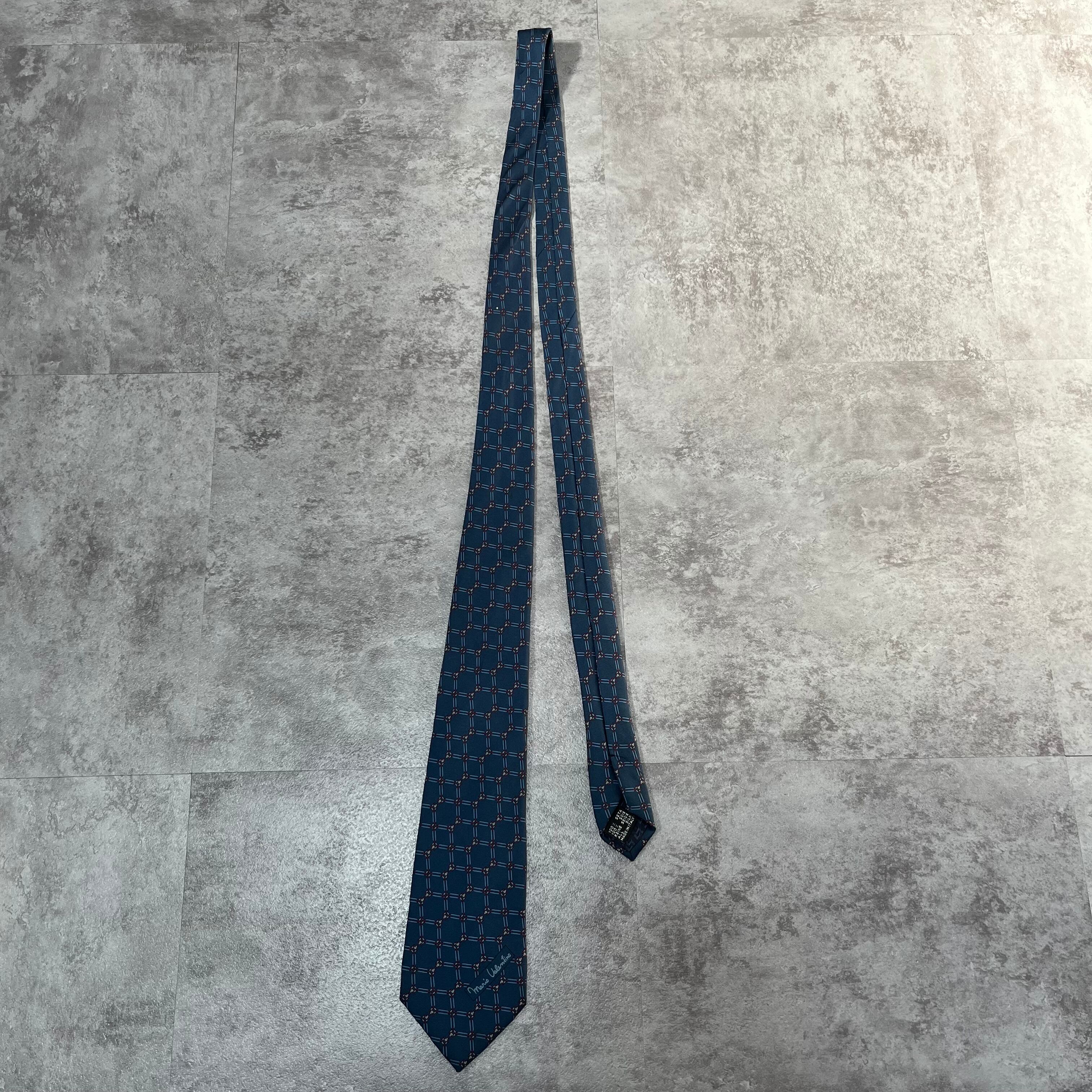 【VALENTINO】チェーンチェックネクタイ ブルー ロゴ入り