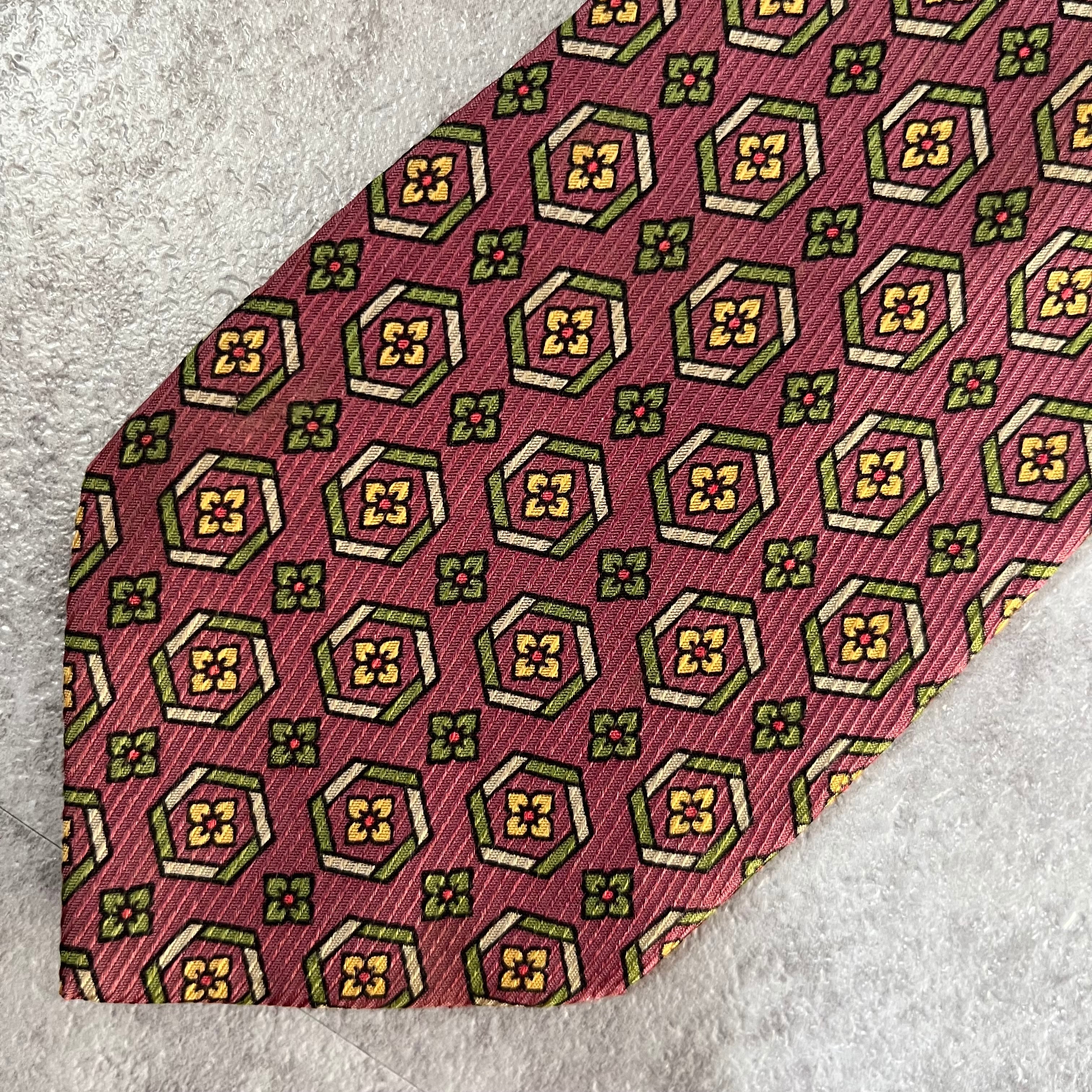 【Christian Dior】花柄ネクタイ 小紋柄 幾何学 ワインレッド 紫