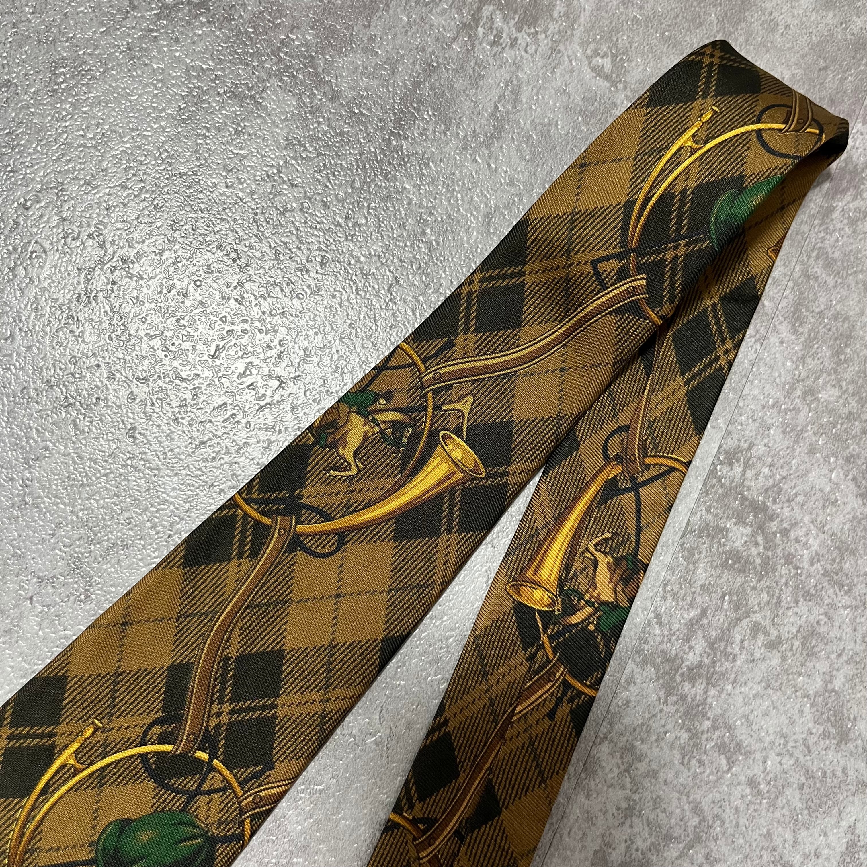 【Burberry】楽器と馬ネクタイ チェック柄 イエロー アニマル ホース