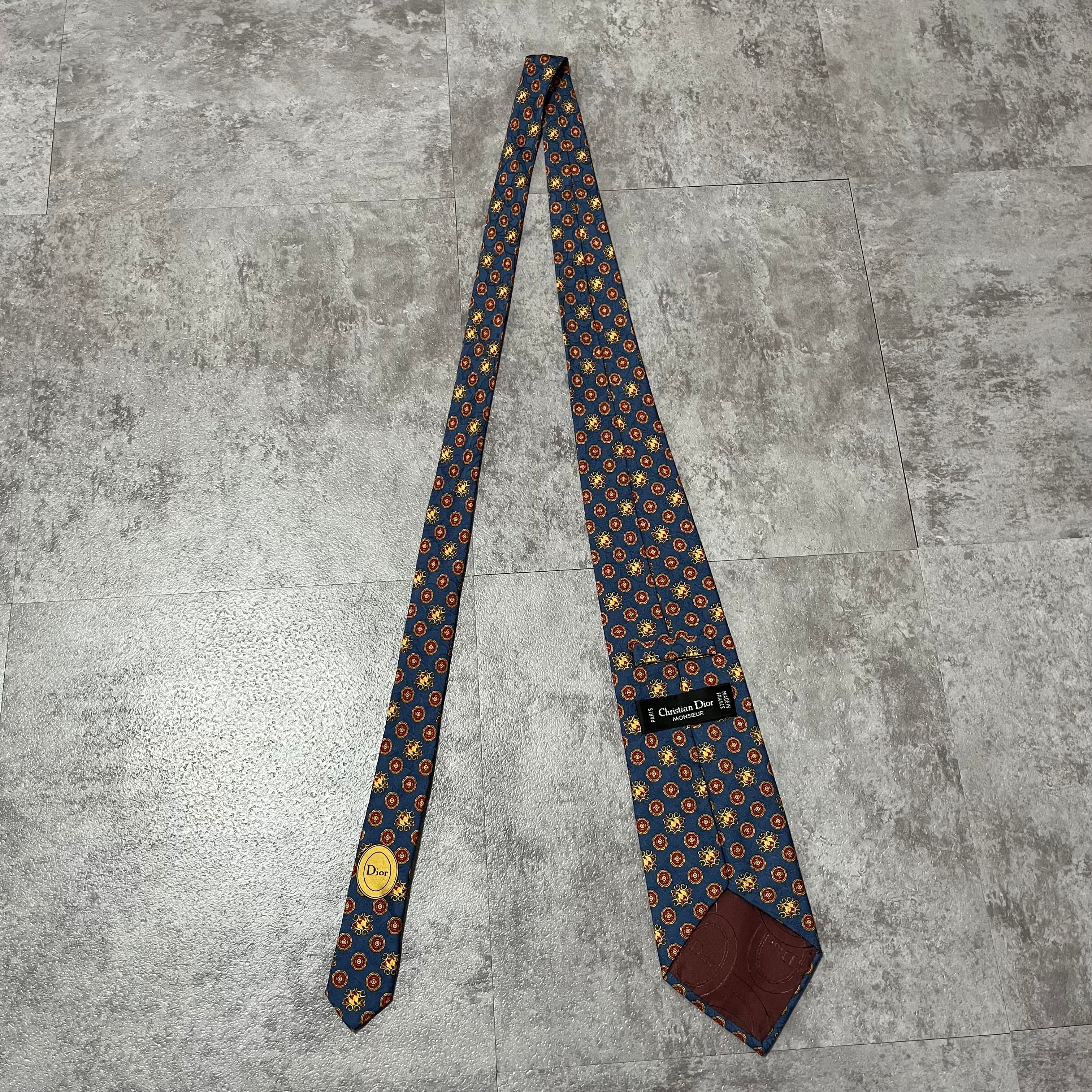 【Christian Dior】紋章柄ネクタイ ブルー 小紋柄 シャドウペイズリー