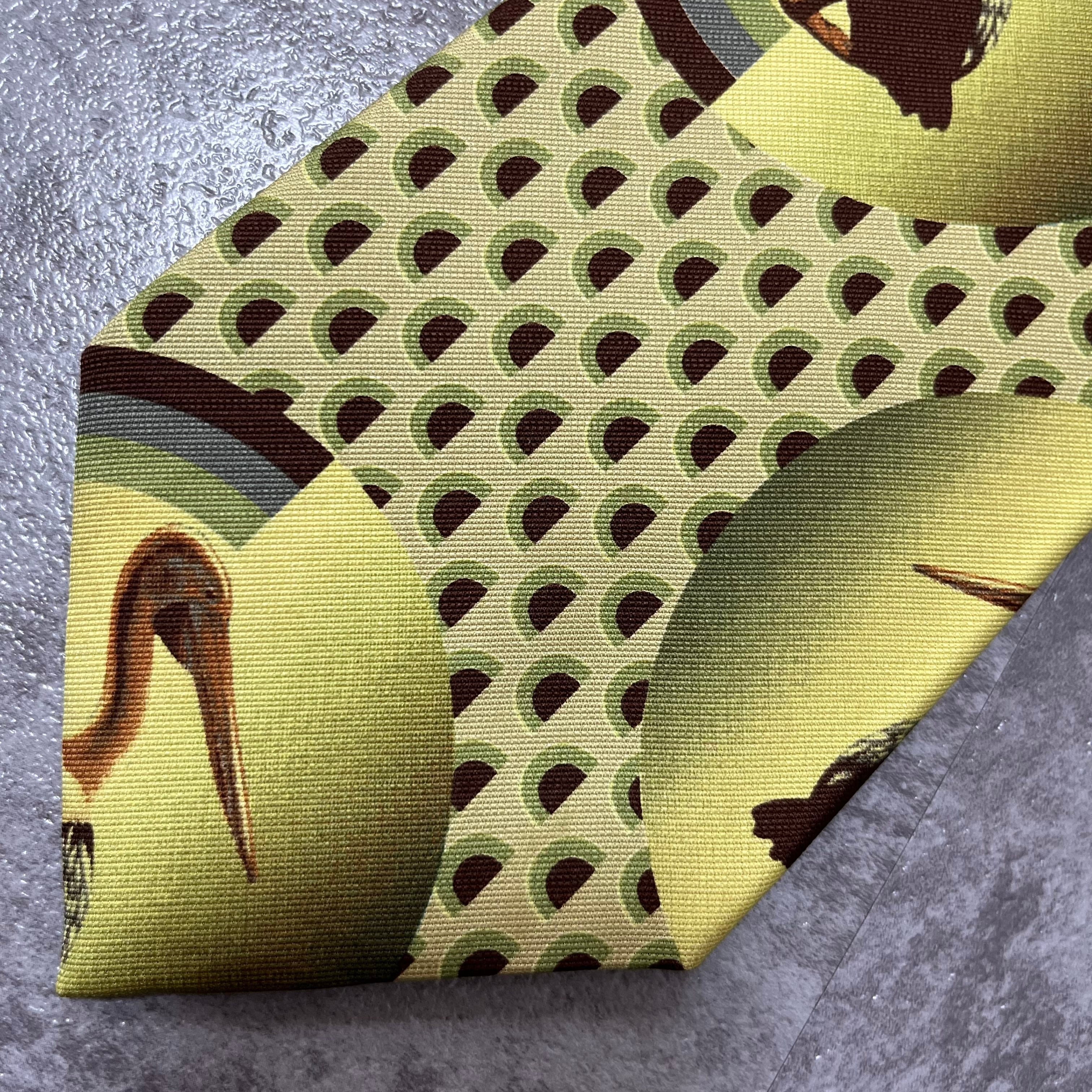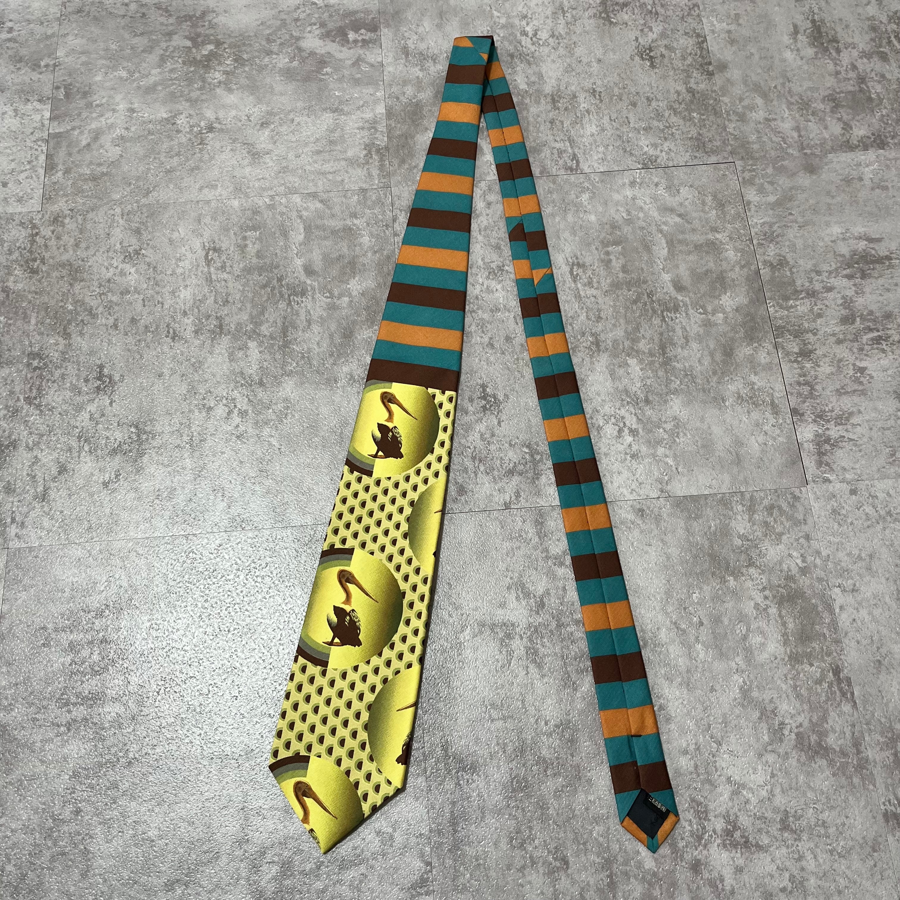 【NICOLE】ペリカン柄ネクタイ アニマル柄 チェック柄 切り替えパターン イエロー ブルー