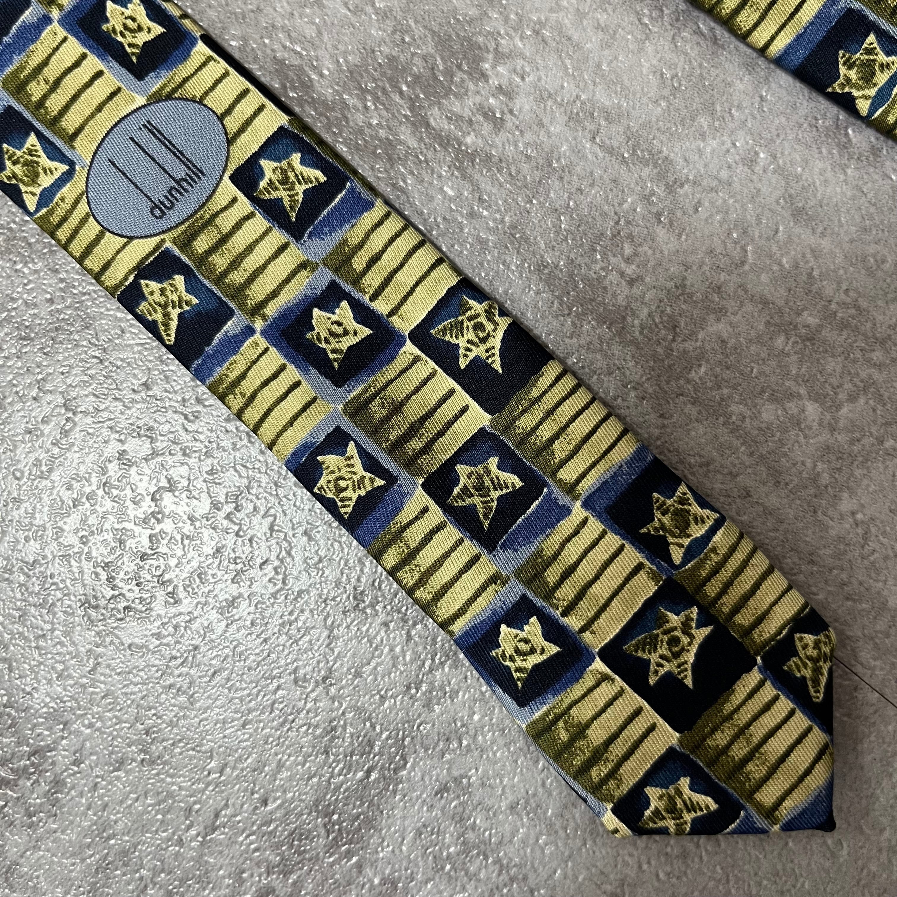 【dunhill】スターチェックネクタイ バイカラー イエロー ブルー 星柄
