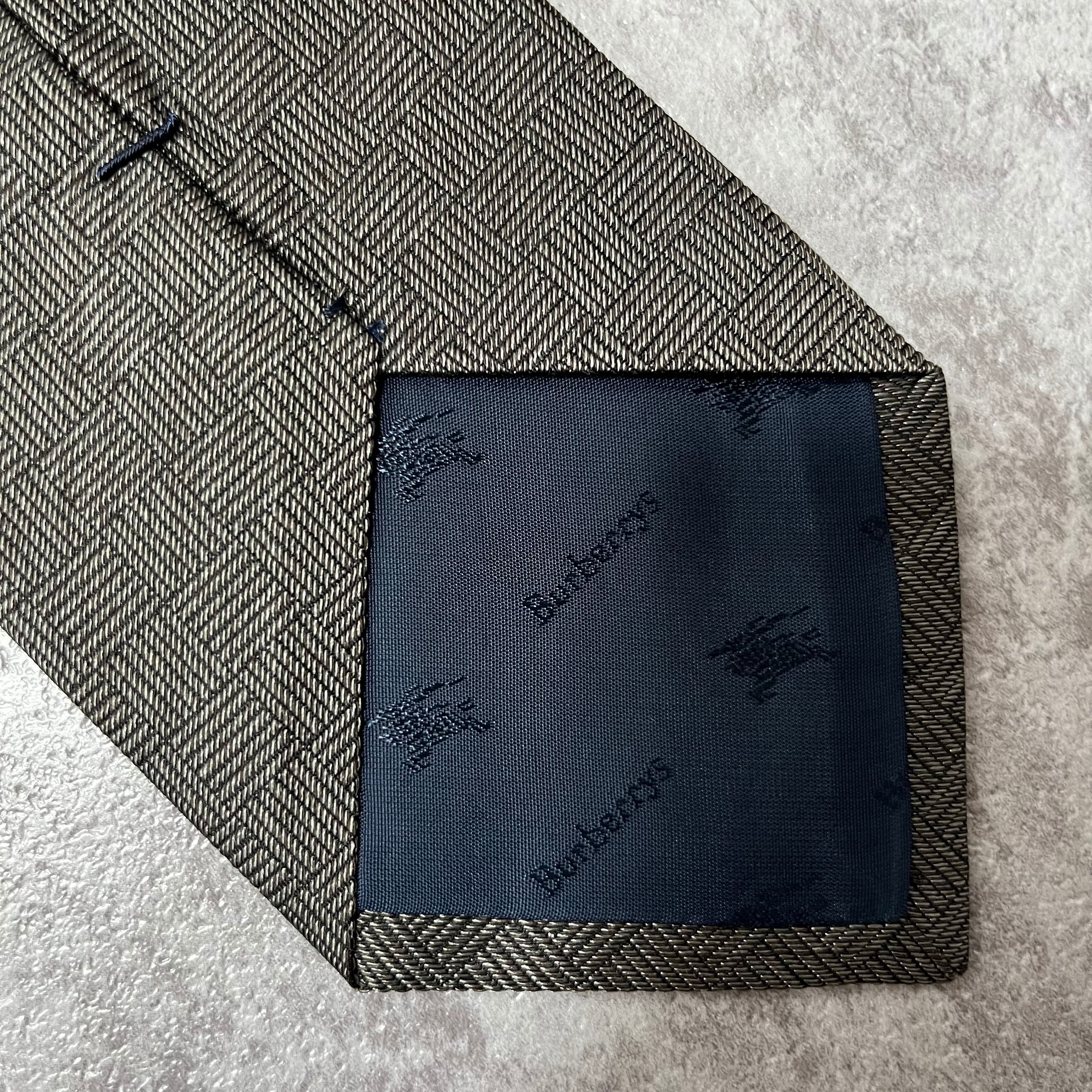 【Burberry】ウール混ネクタイ グレー ロゴ入り ホースロゴ チェック