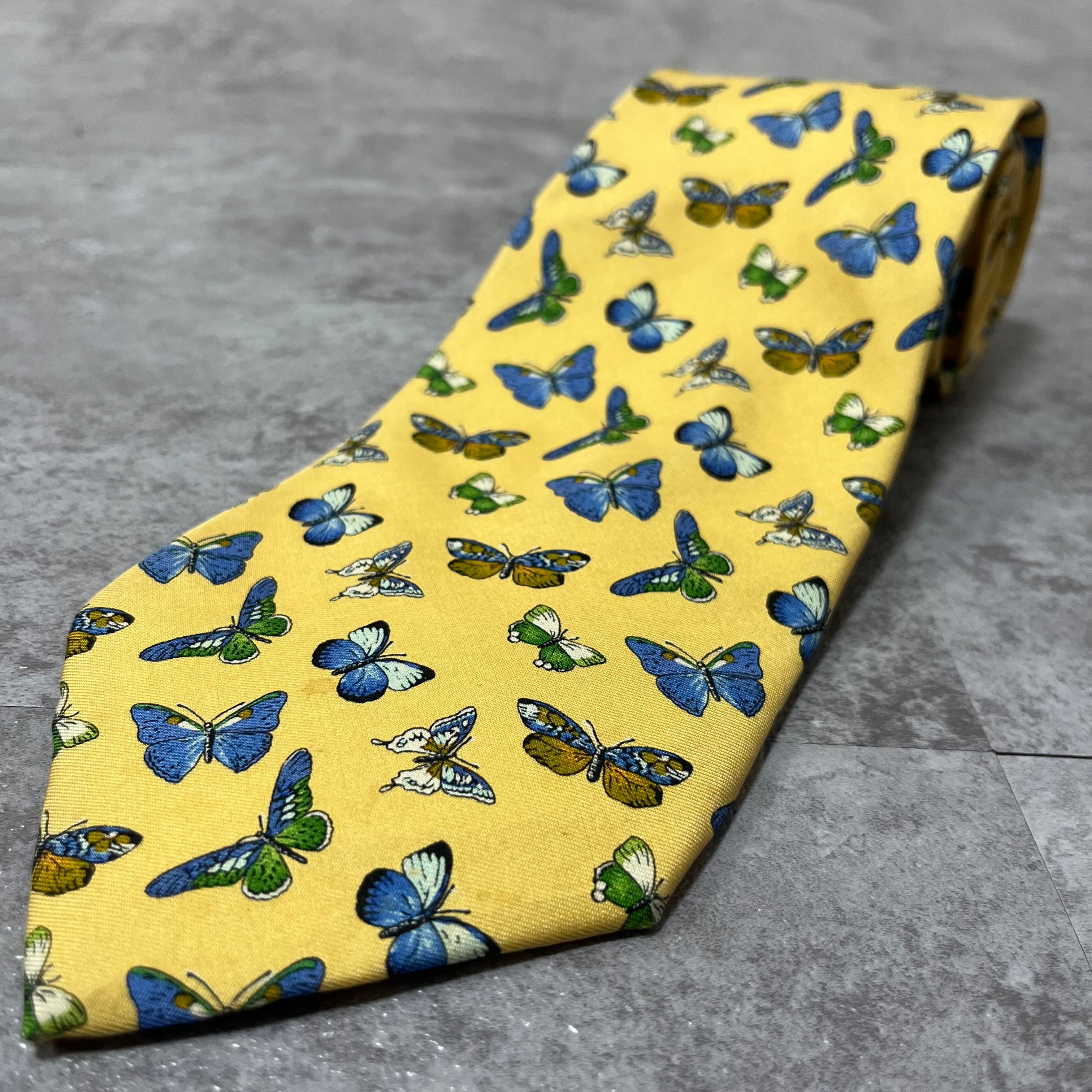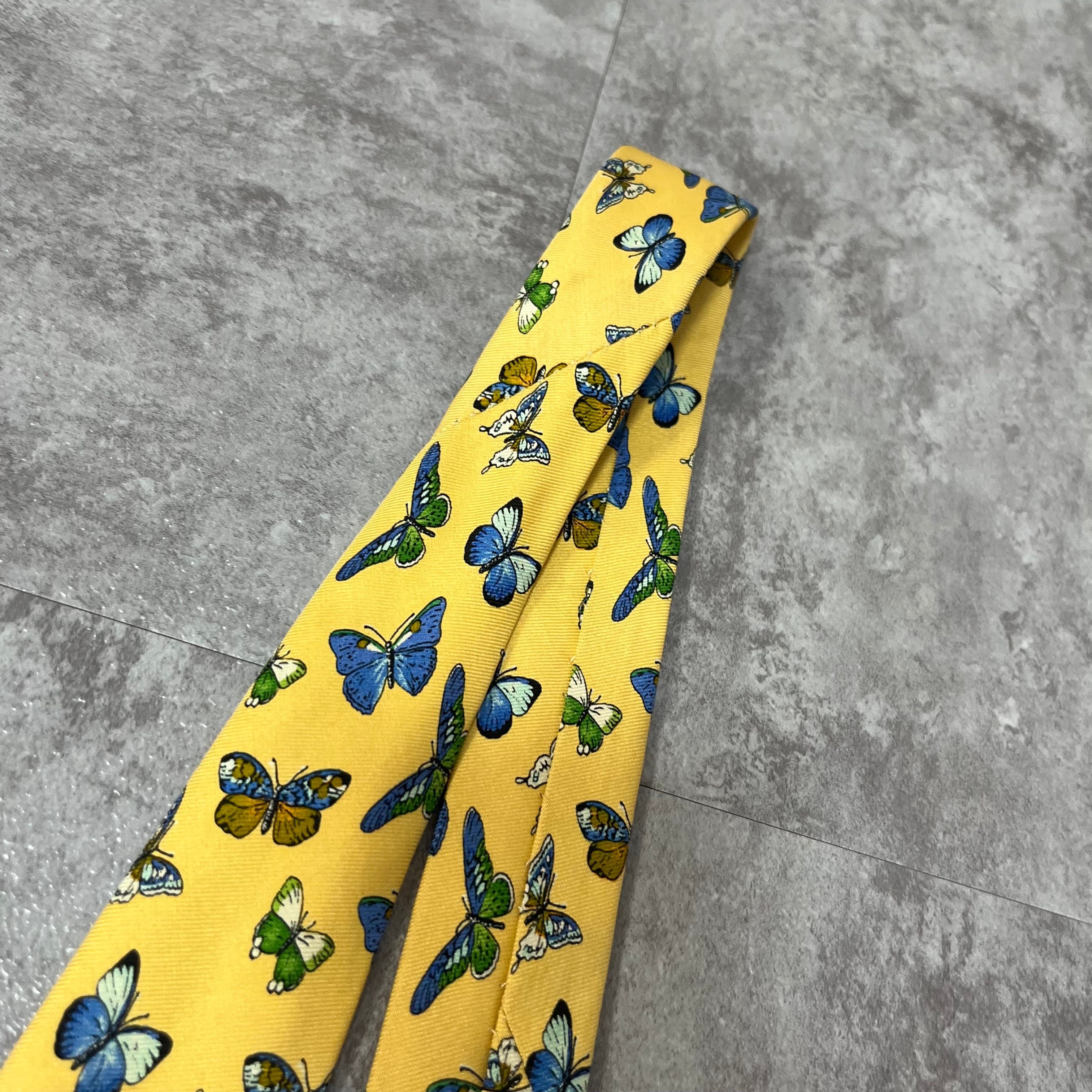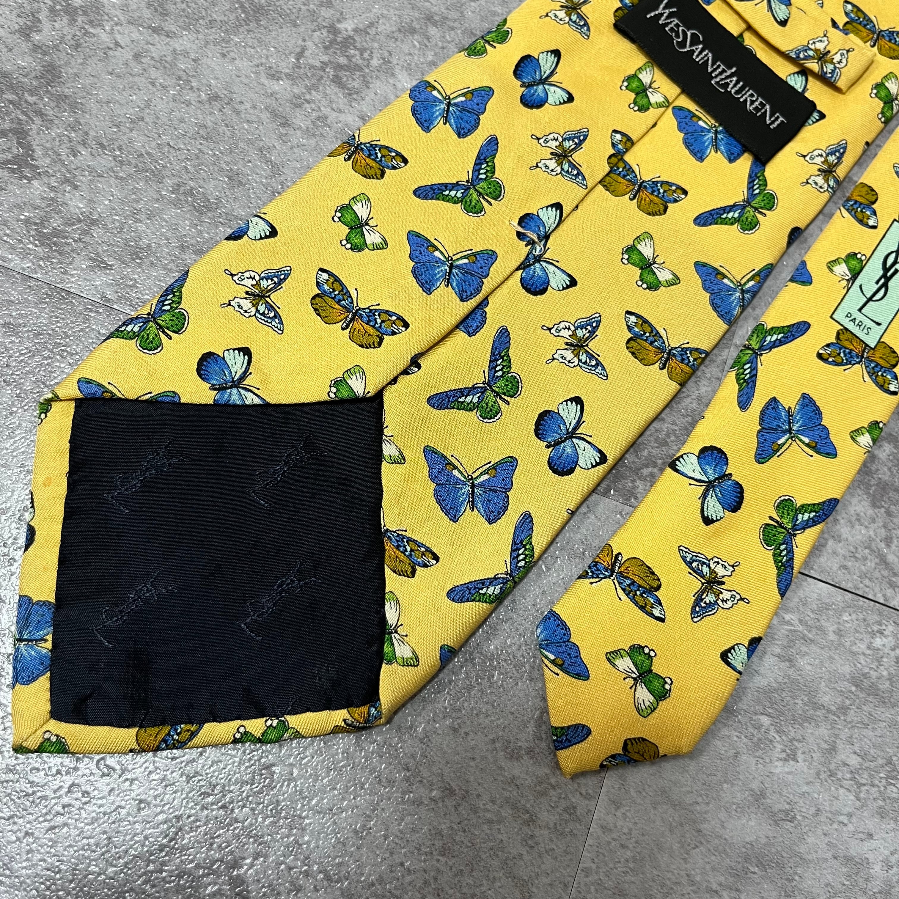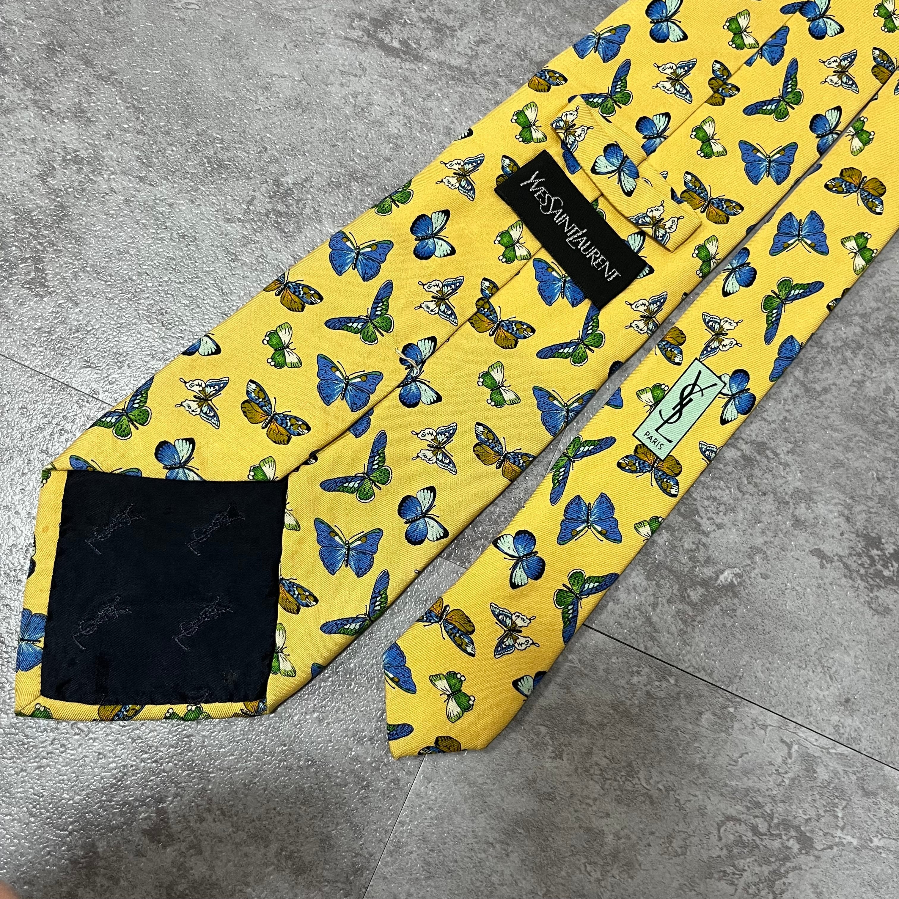 【Yves Saint Laurent】蝶柄ネクタイ イエロー アニマル柄 蝶々