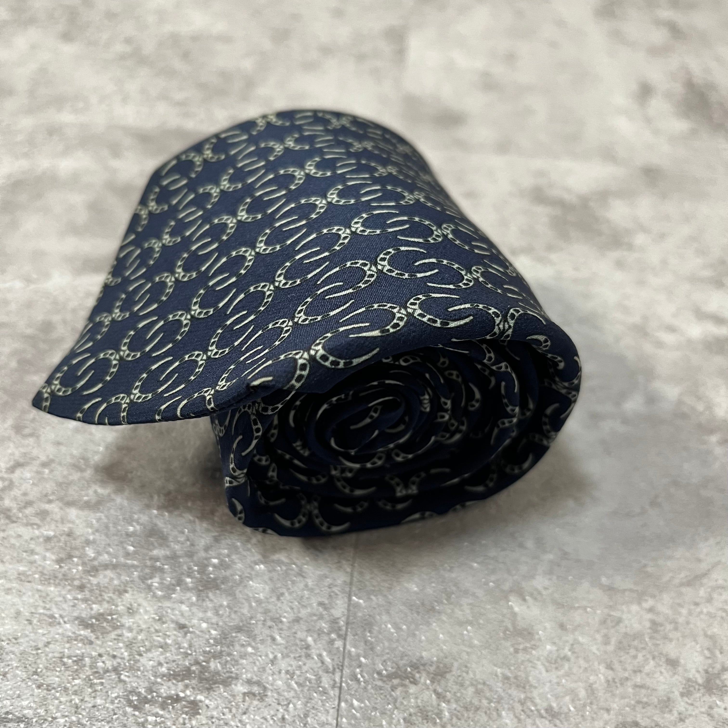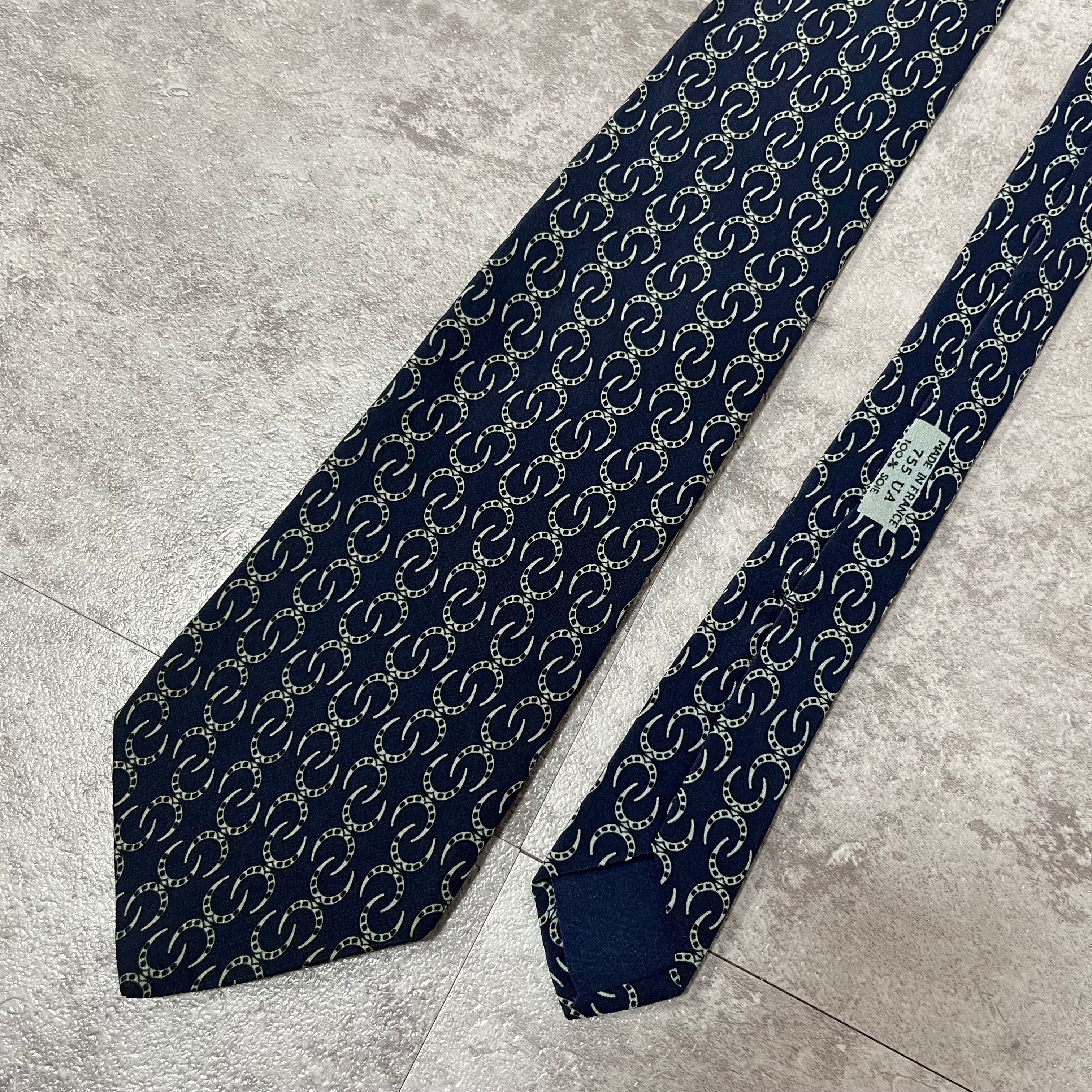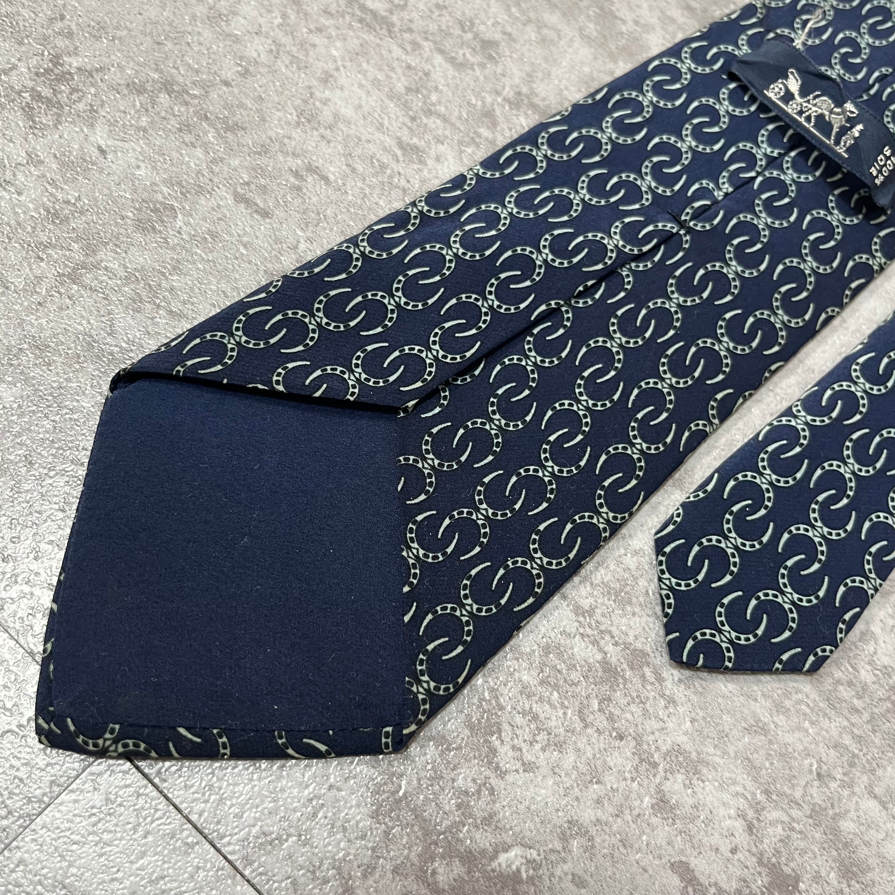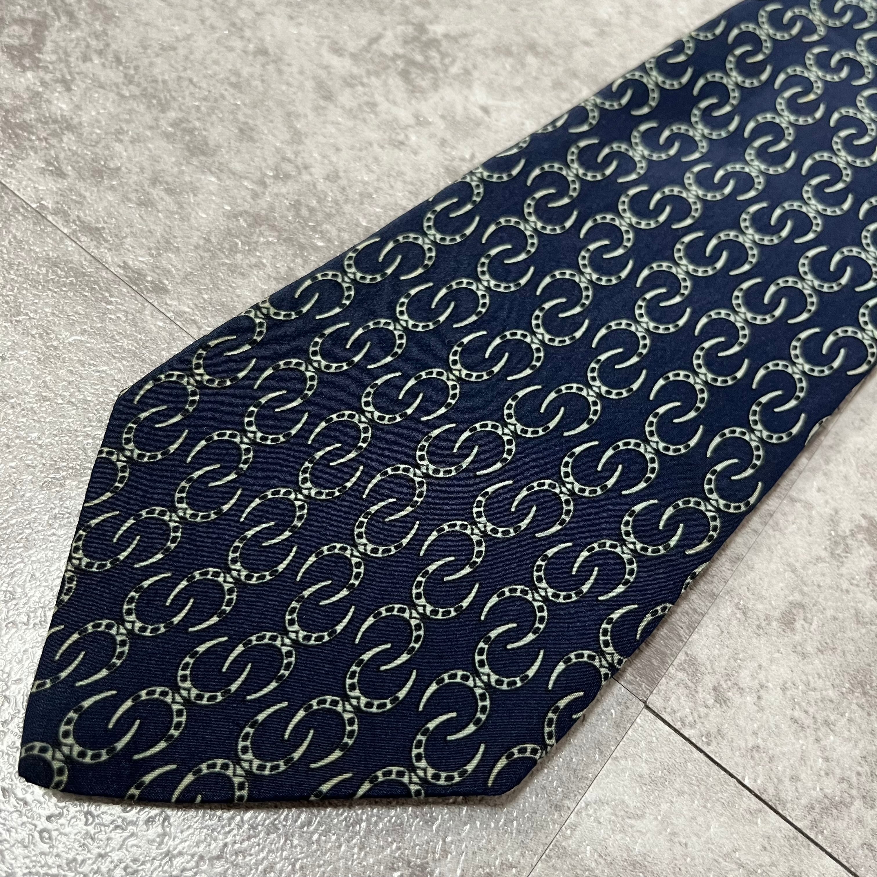 【HERMES】馬蹄柄ネクタイ ネイビー バイカラー 総柄
