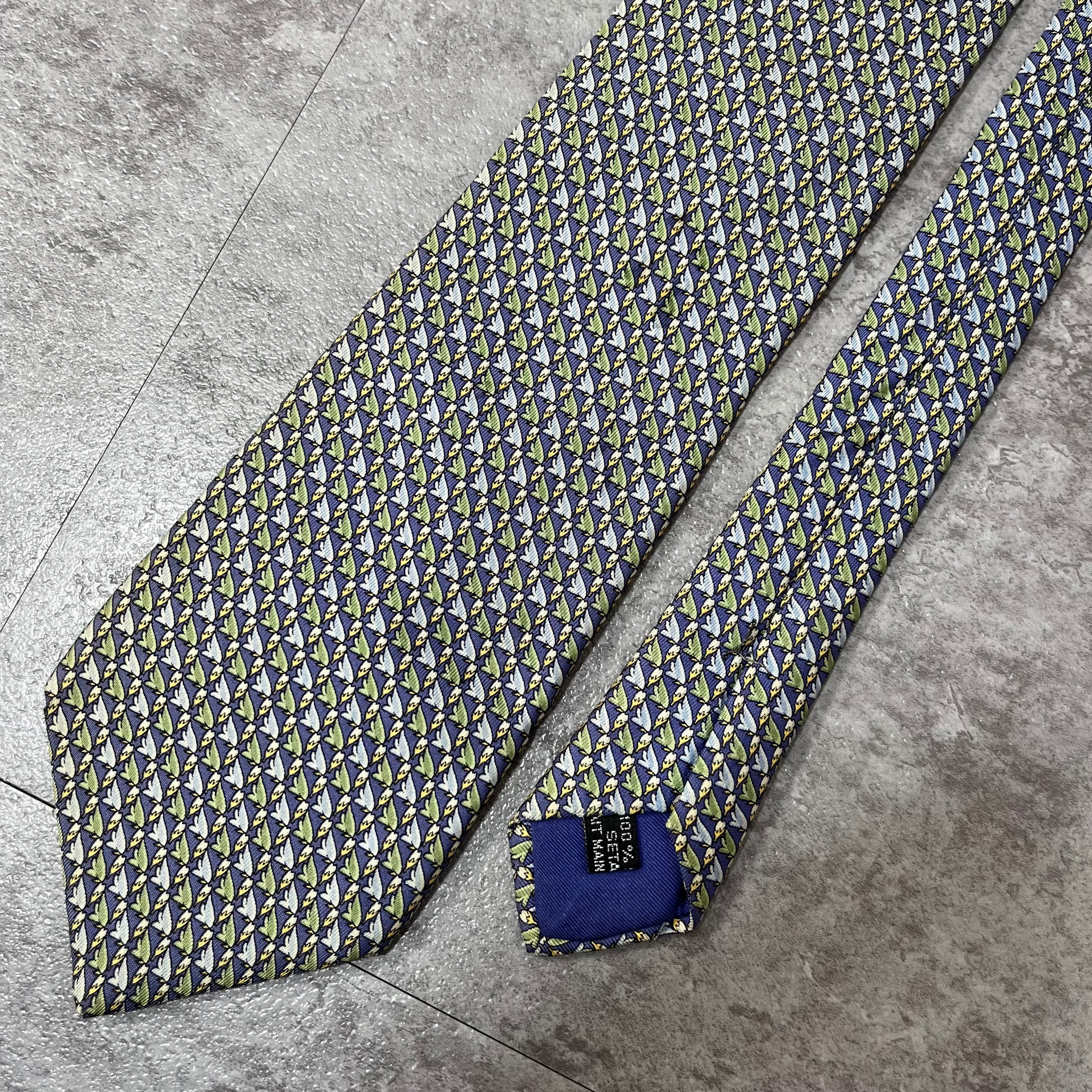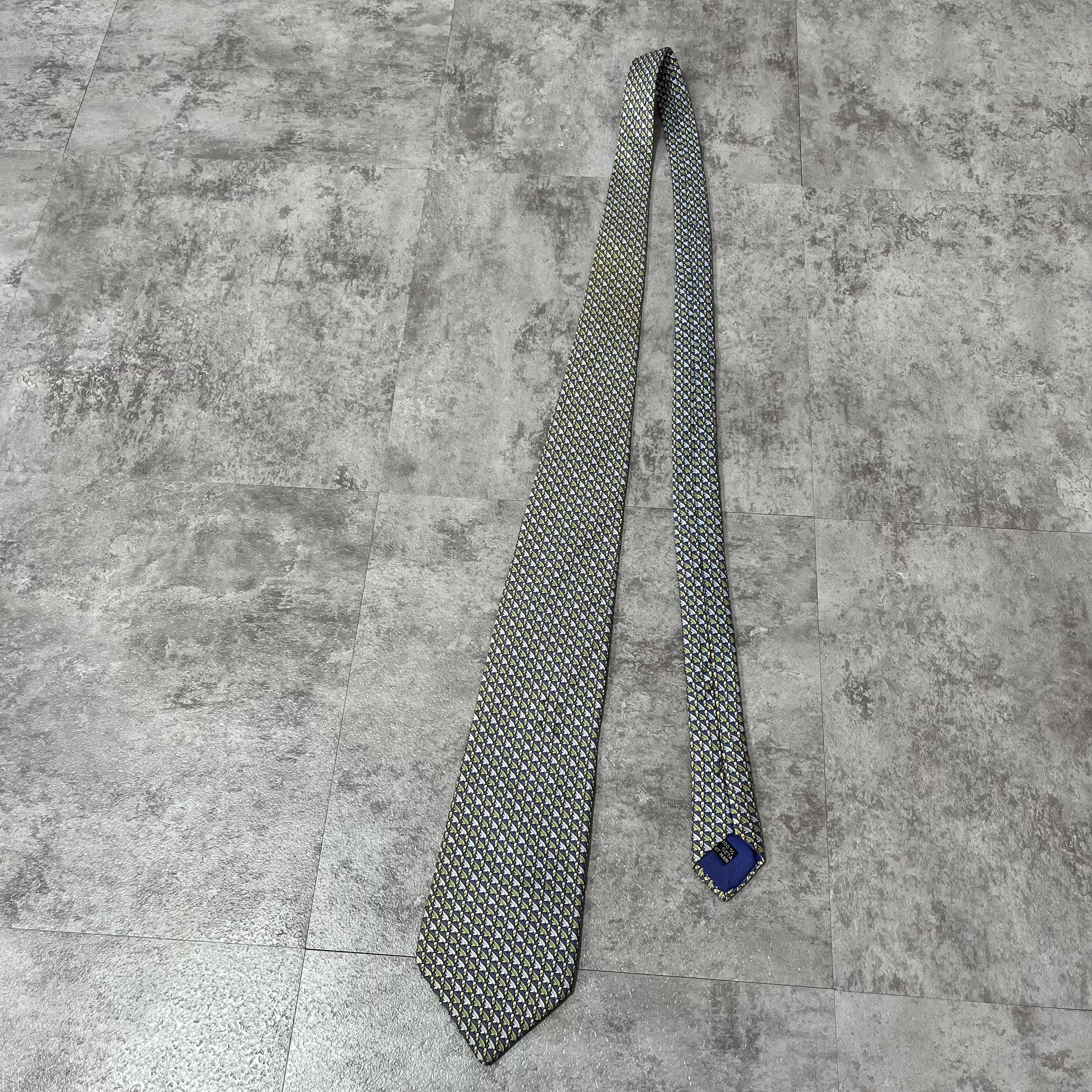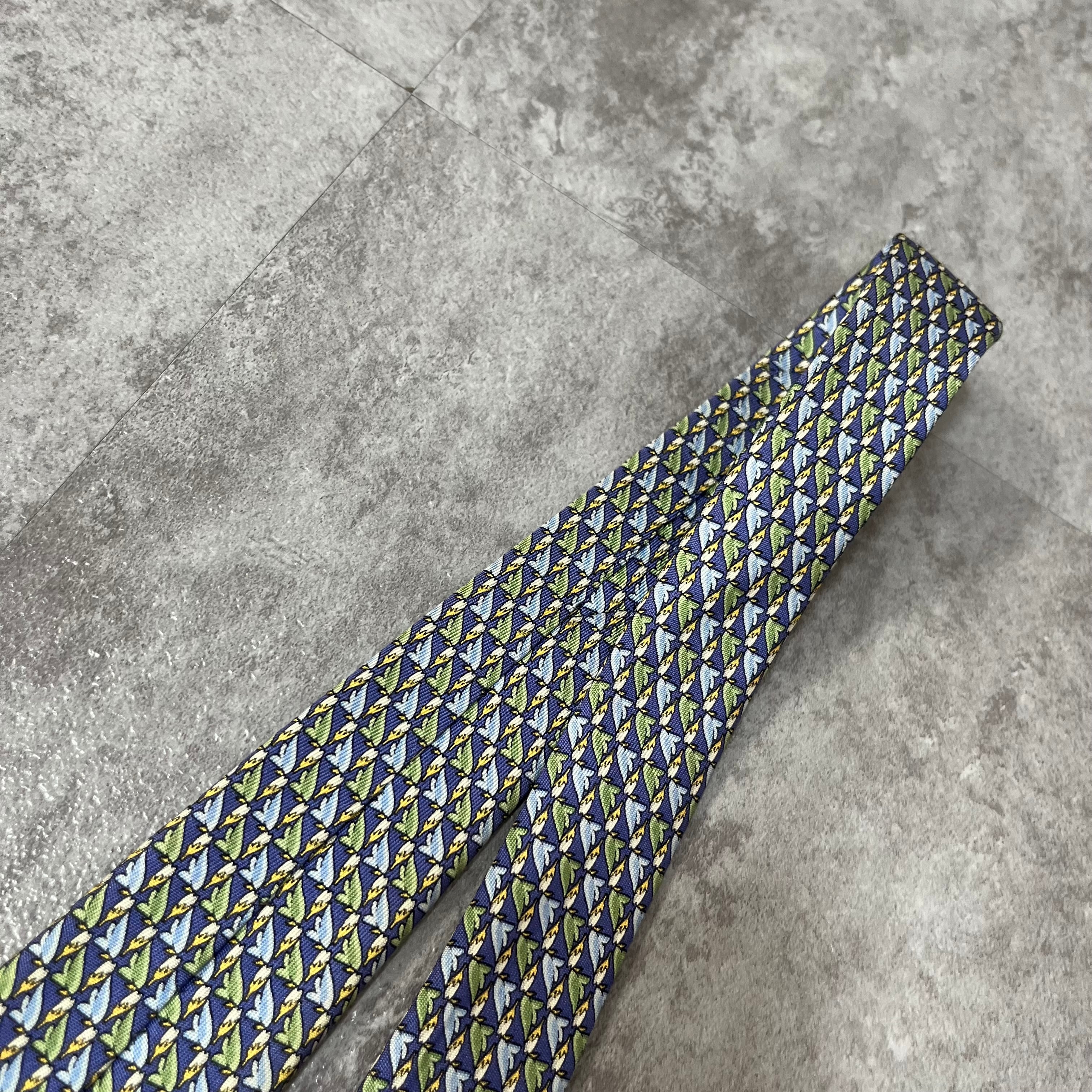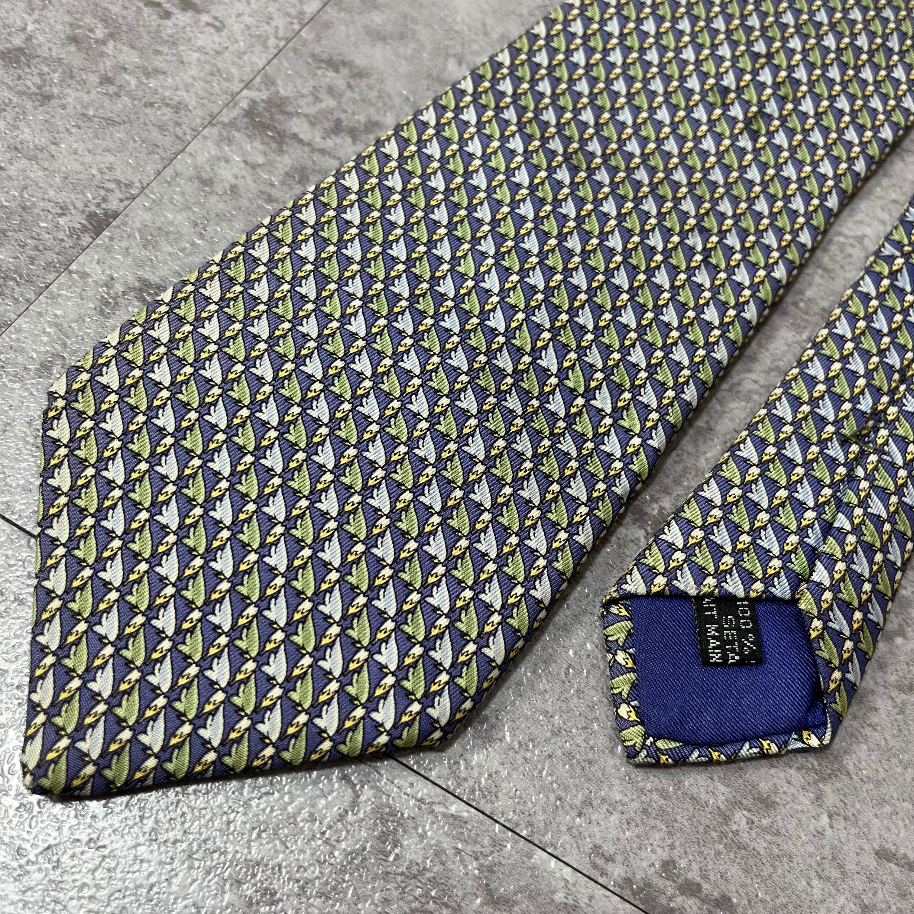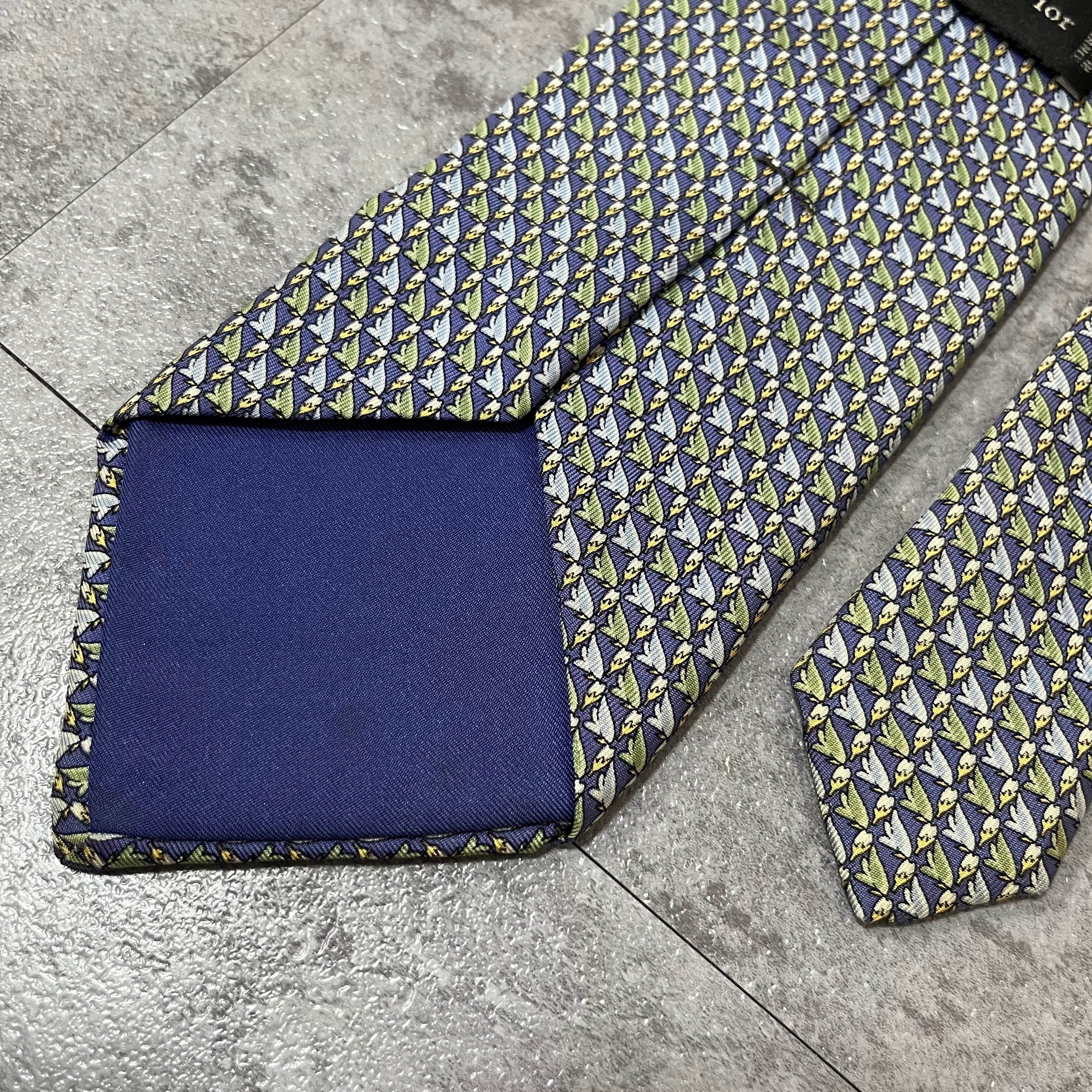 【Christian Dior】羽根モチーフネクタイ 小紋柄 ブルー 羽根と花