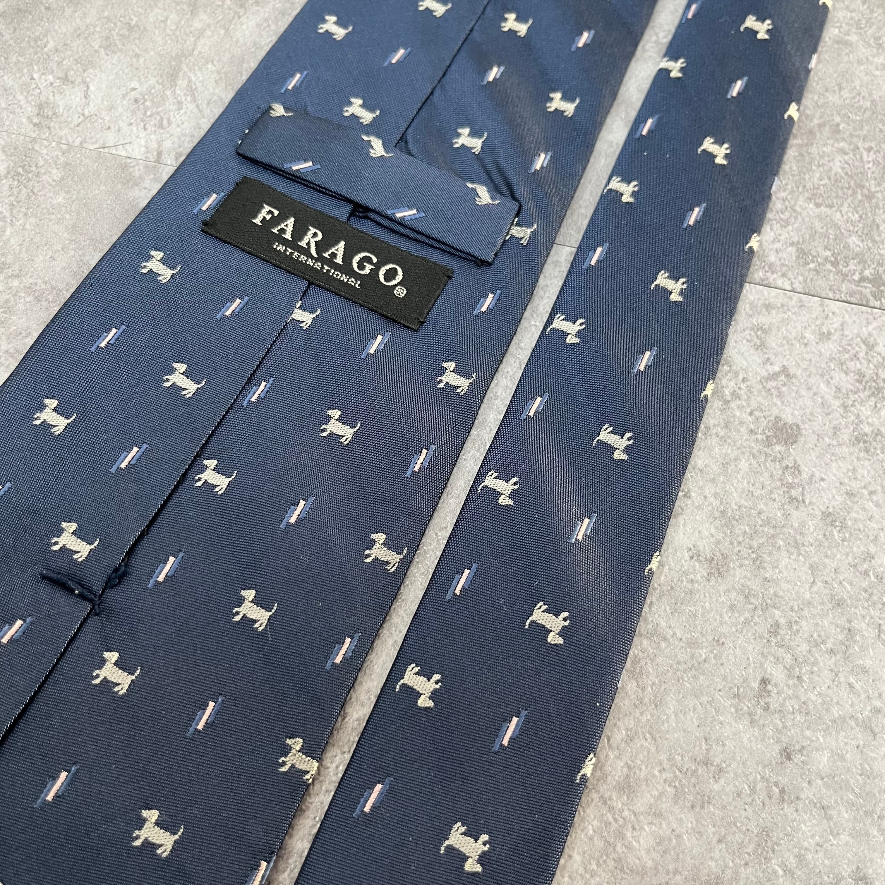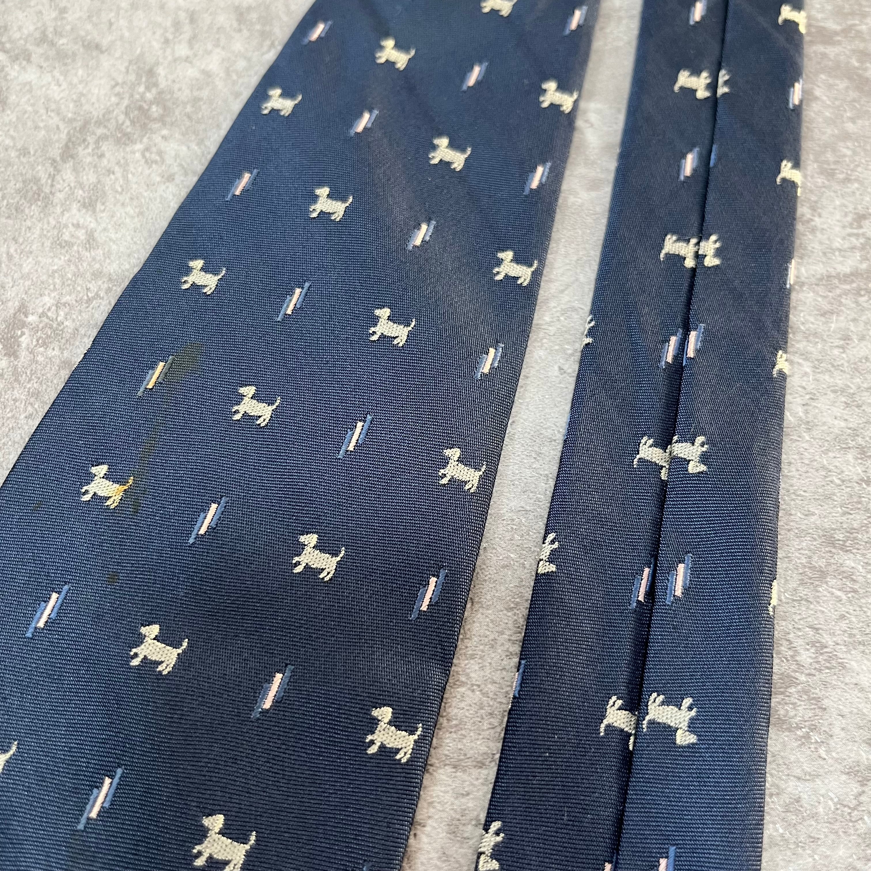 【アニマル柄】犬柄ネクタイ ネイビー ダックスフンド 刺繍