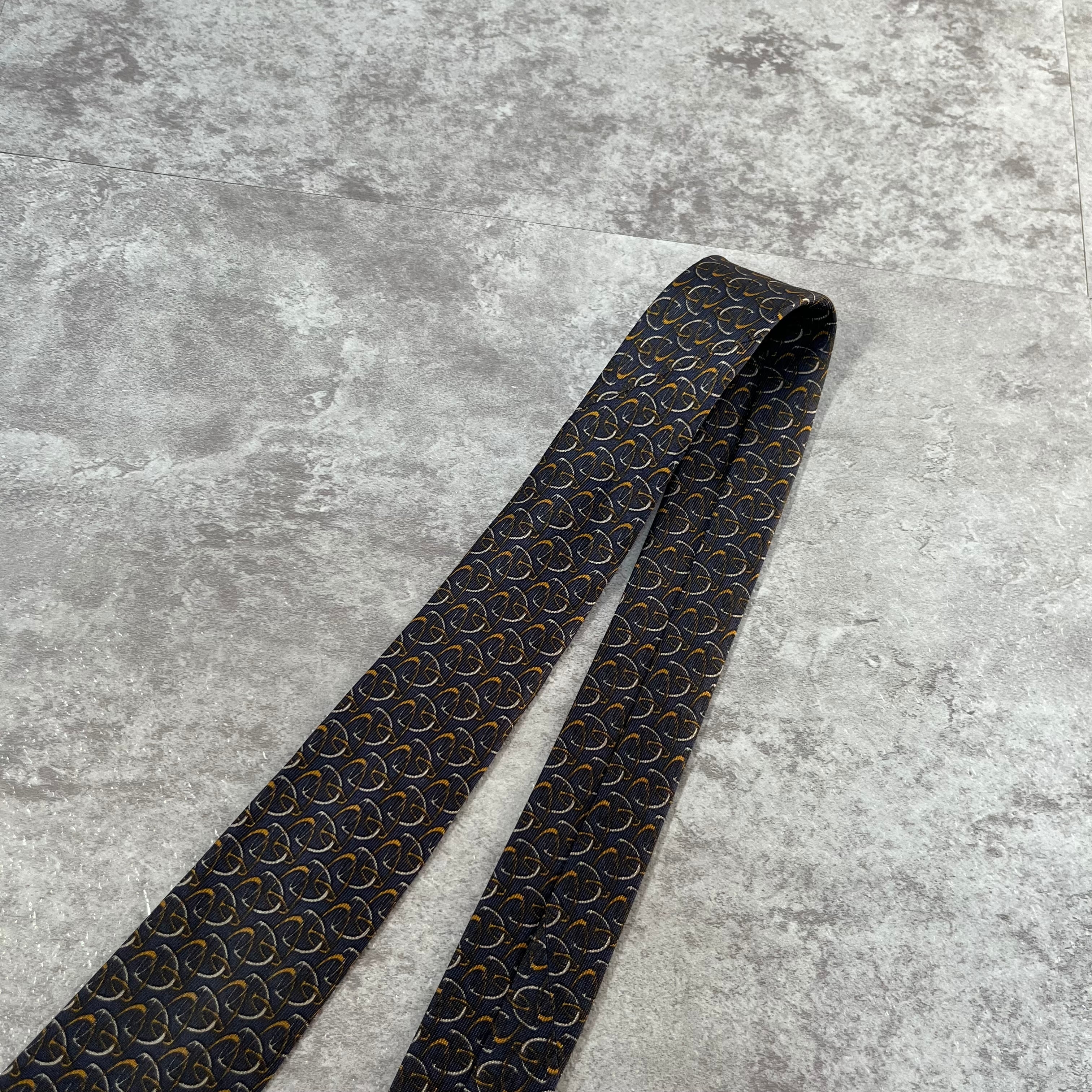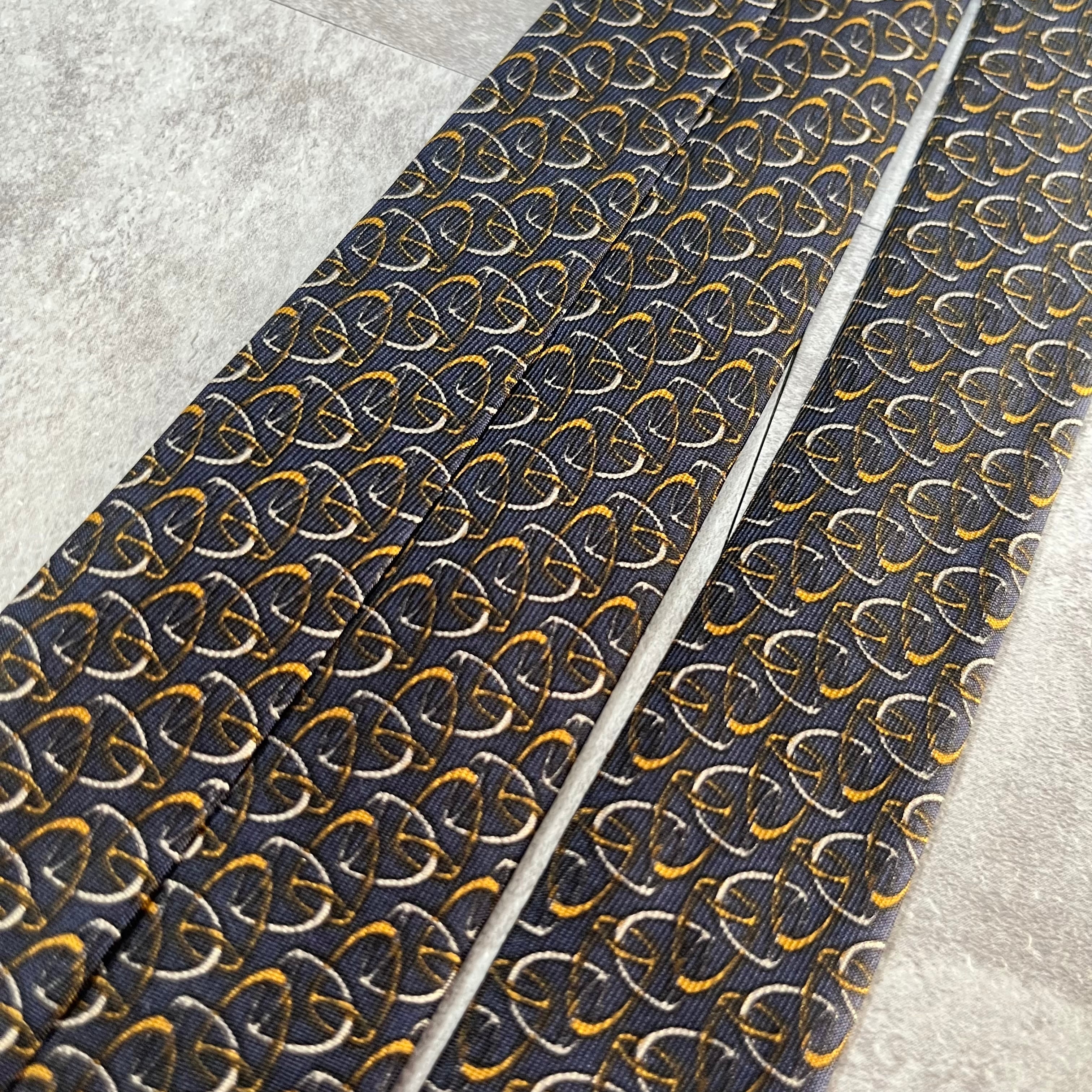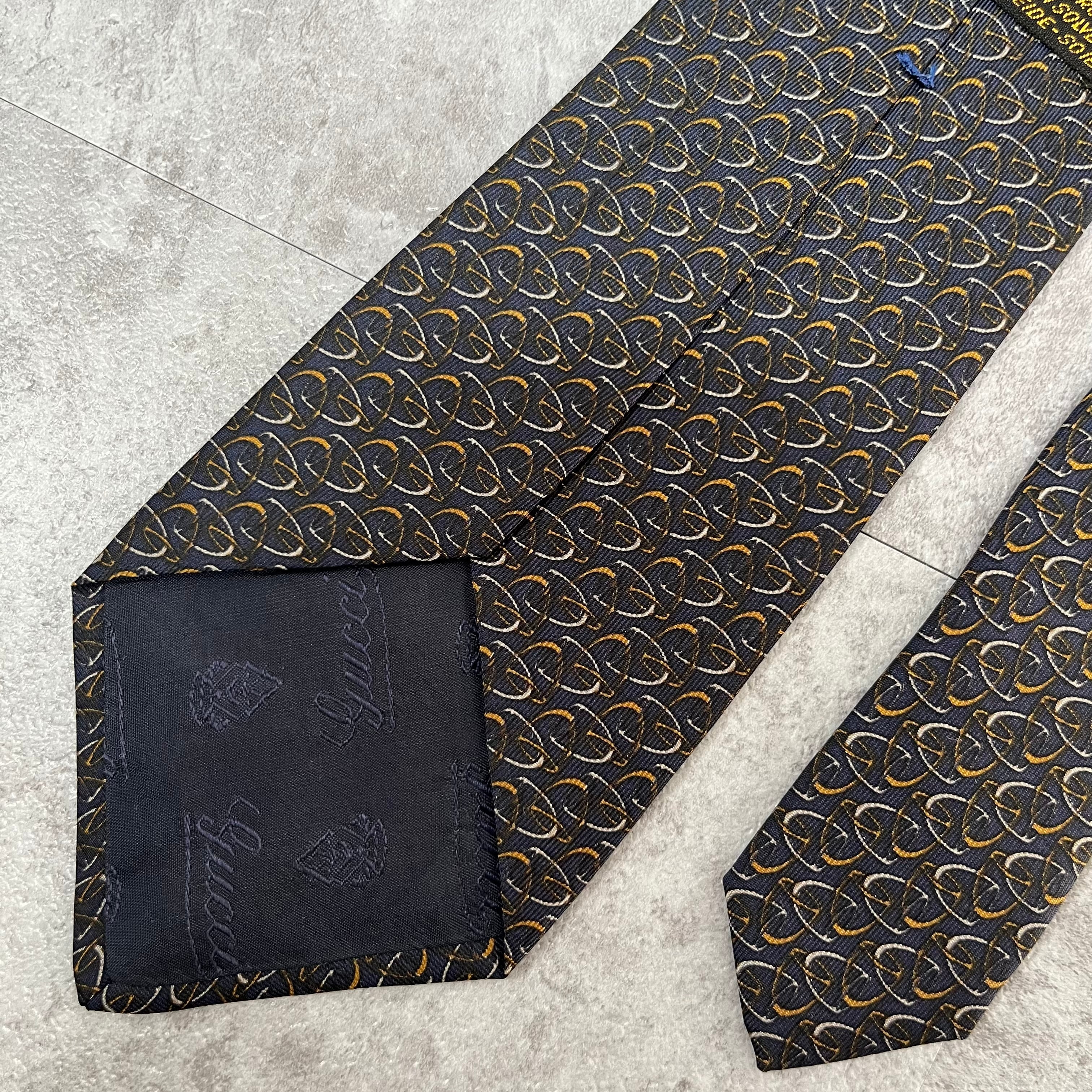 【GUCCI】チェーン柄ネクタイ ネイビー バイカラー 総柄 オールドグッチ