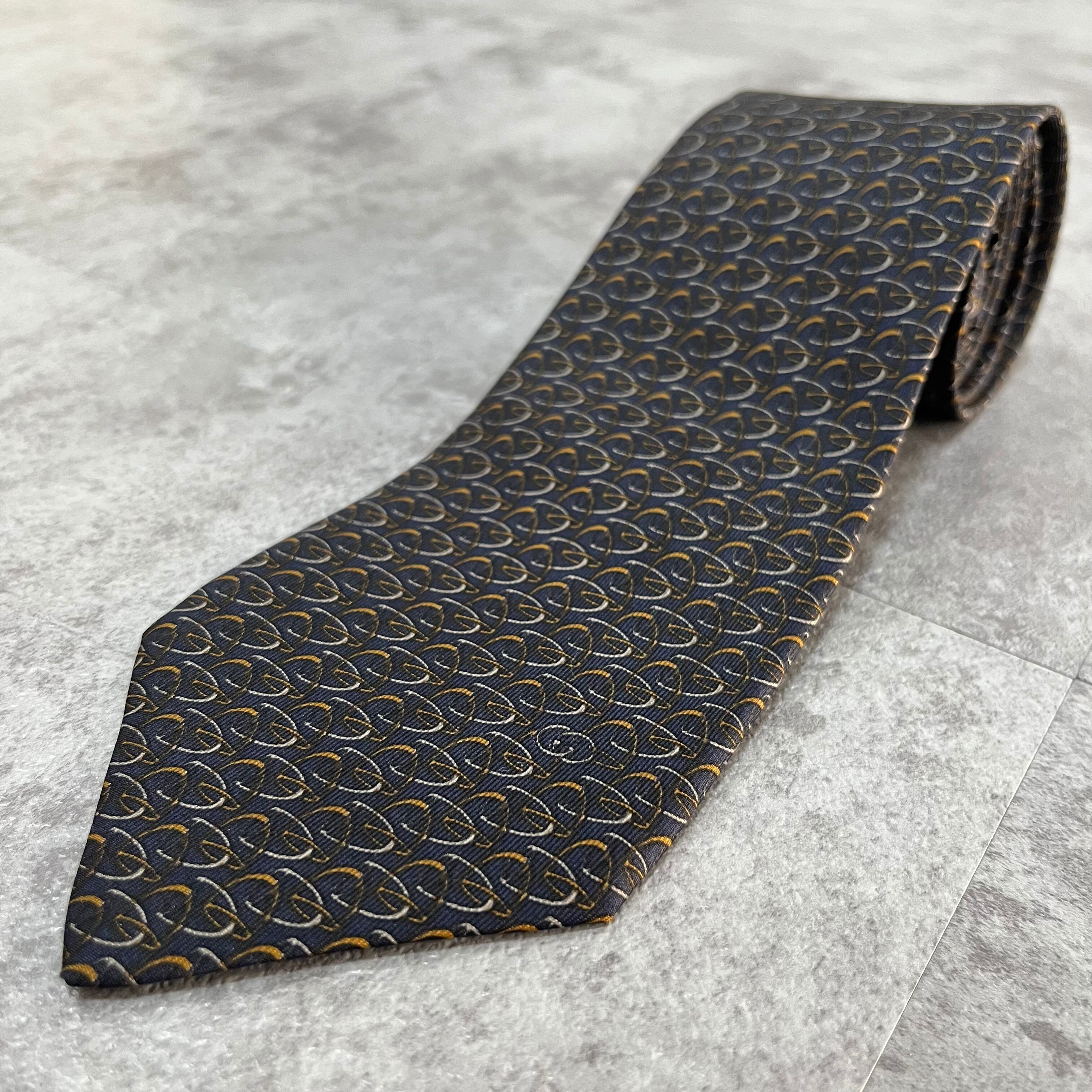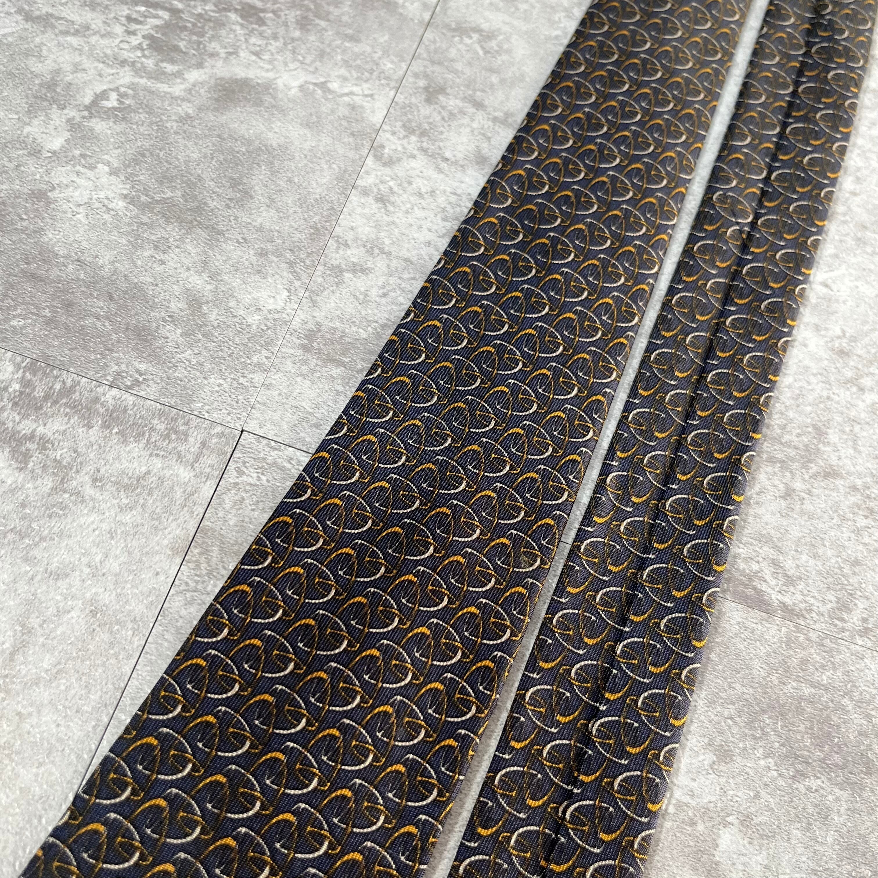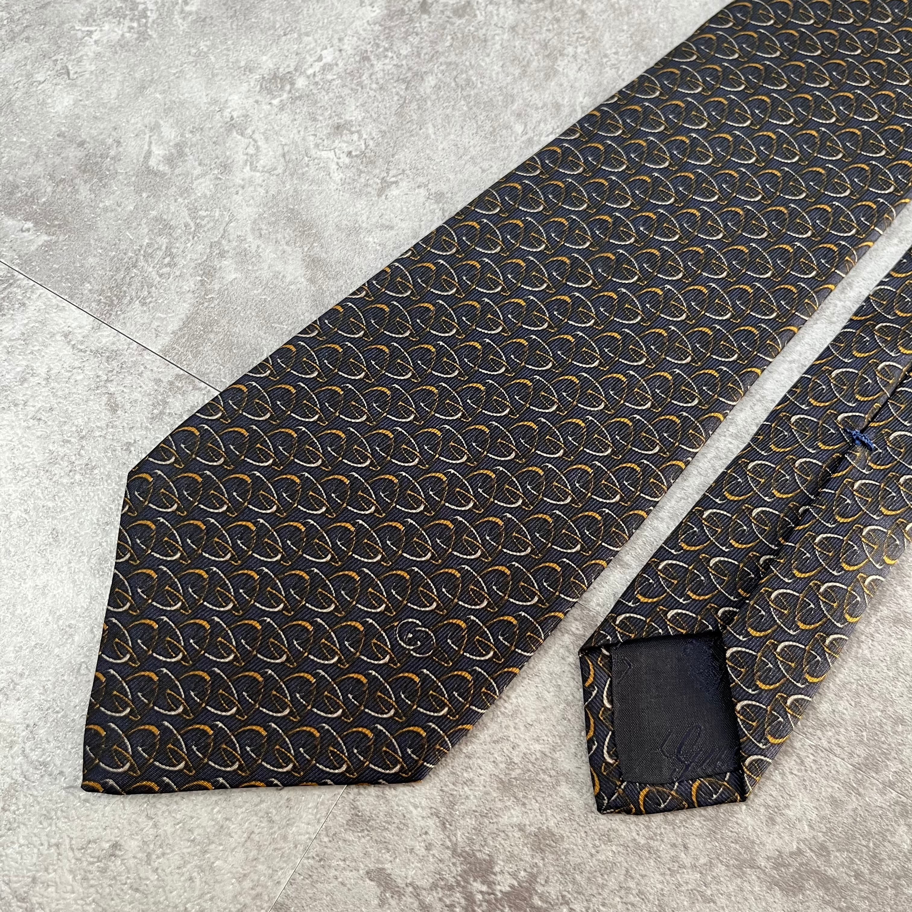 【GUCCI】チェーン柄ネクタイ ネイビー バイカラー 総柄 オールドグッチ