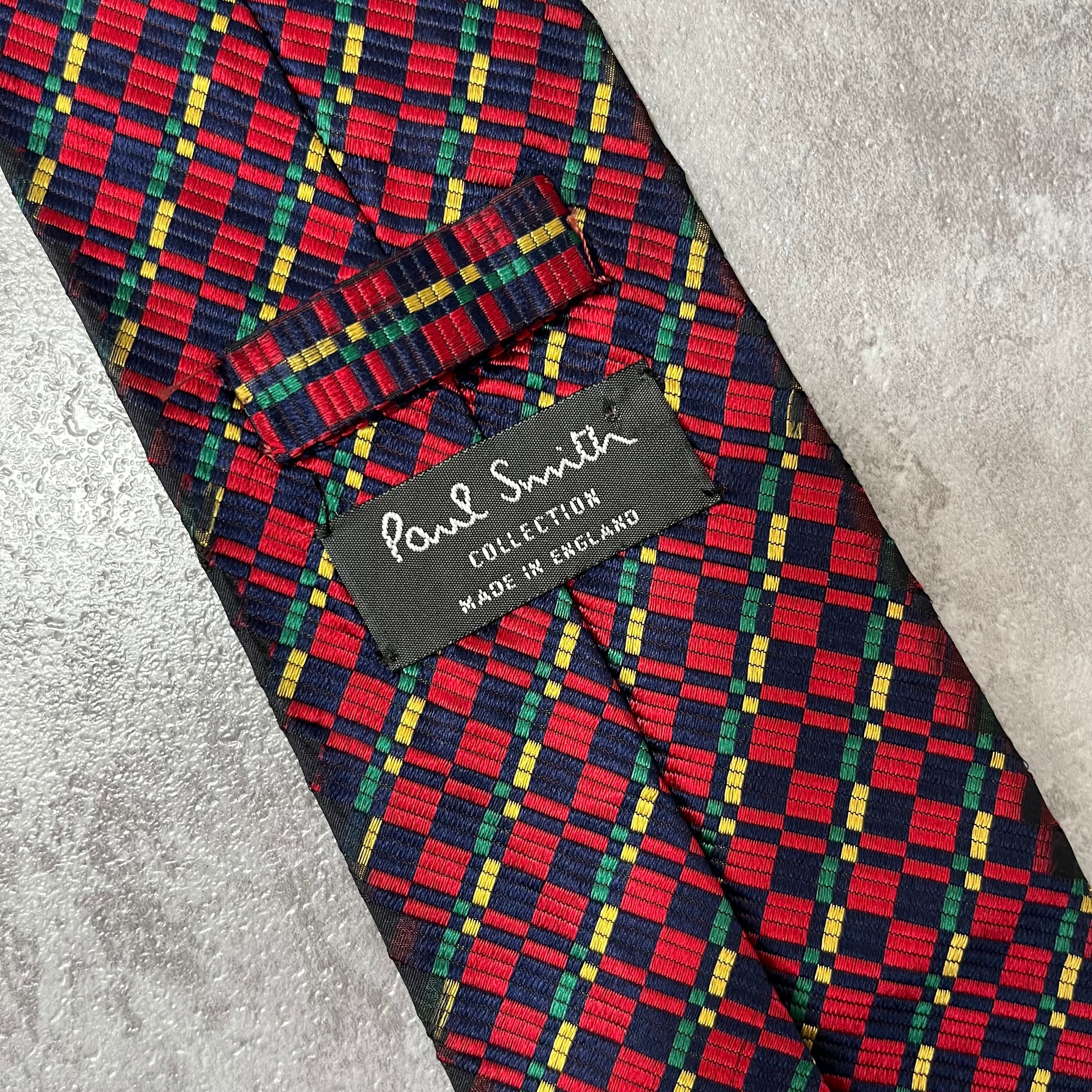 【Paul Smith】ブラックチェック×ストライプネクタイ レッド