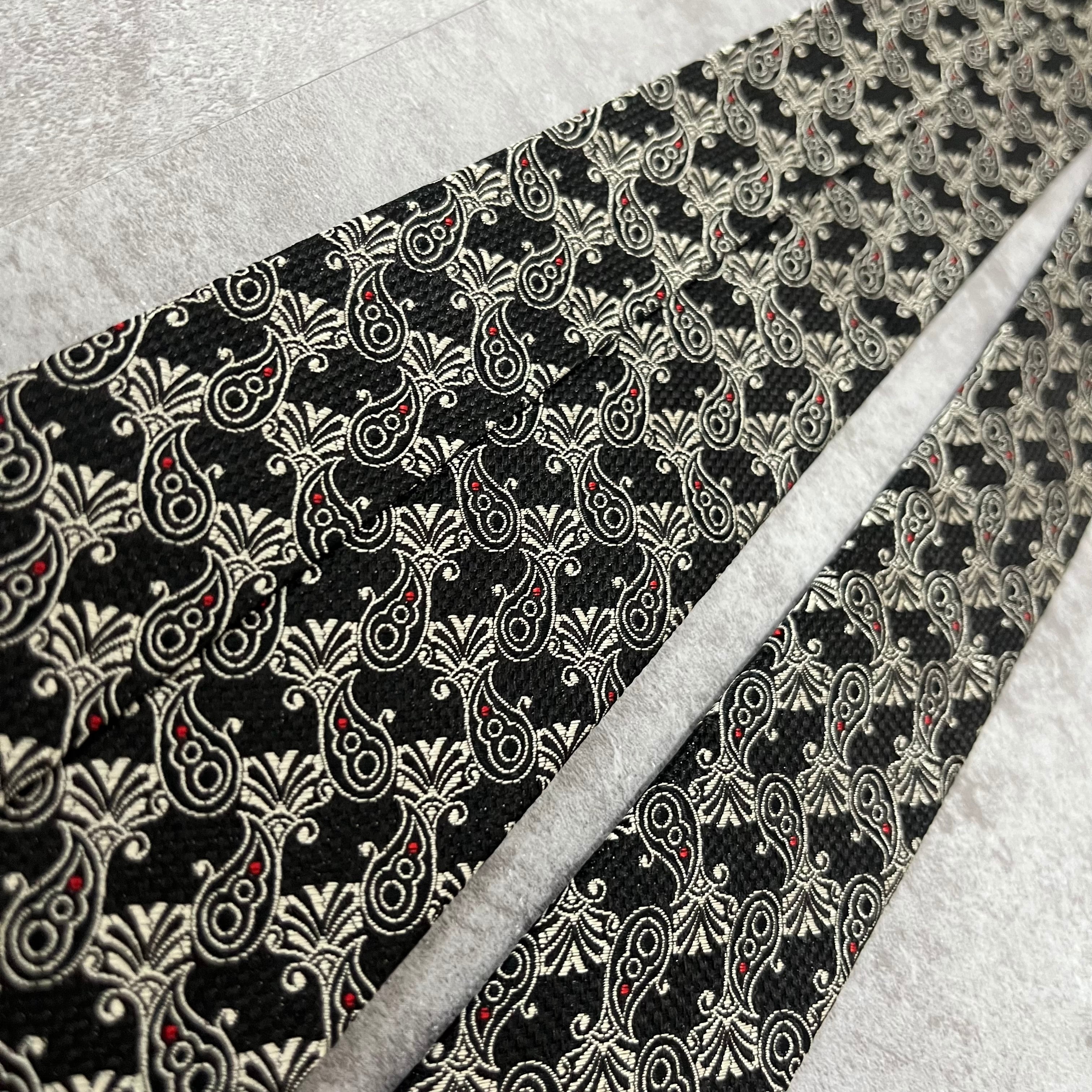 【VALENTINO】ジャガードペイズリーネクタイ ブラック シルバー バイカラー レッド 刺繍