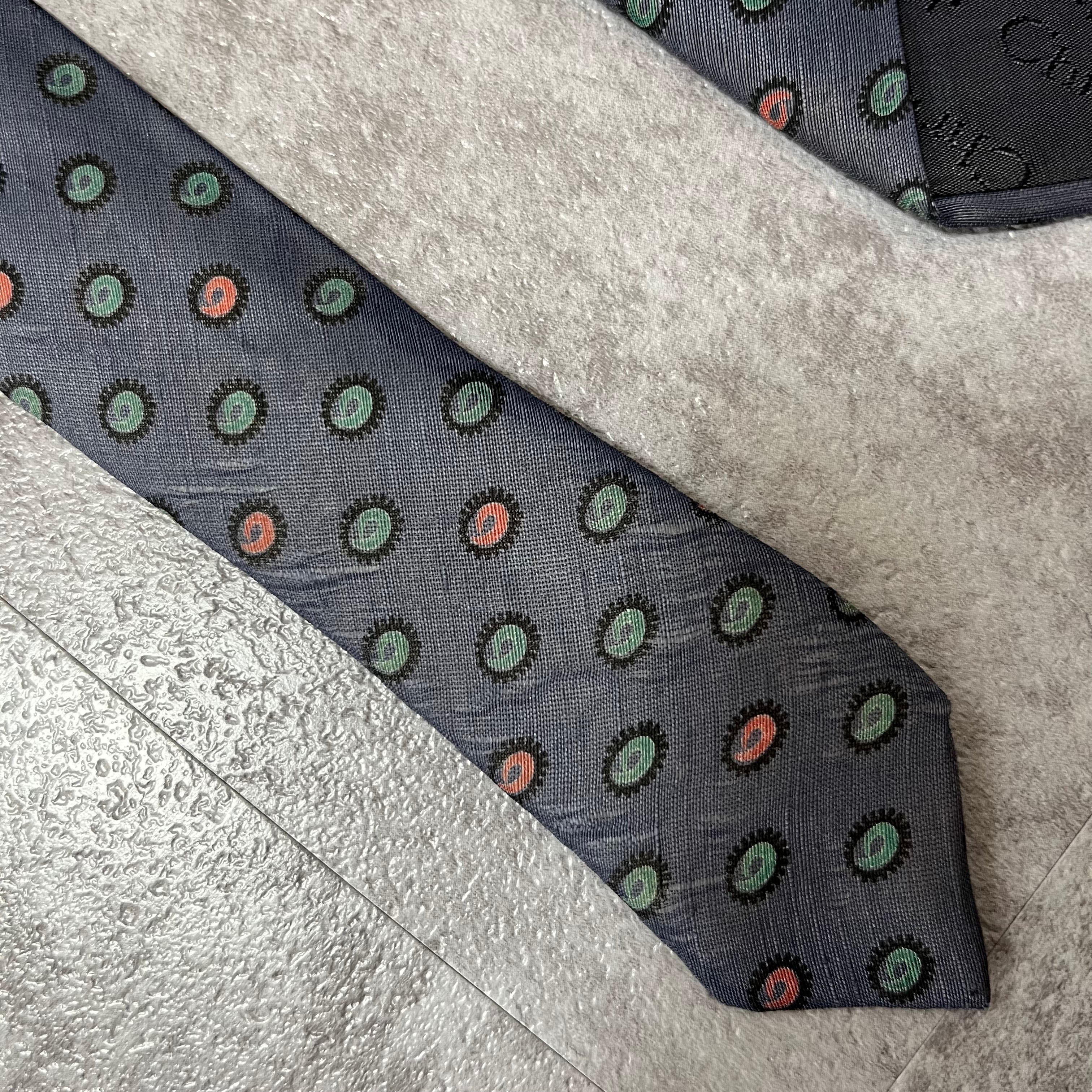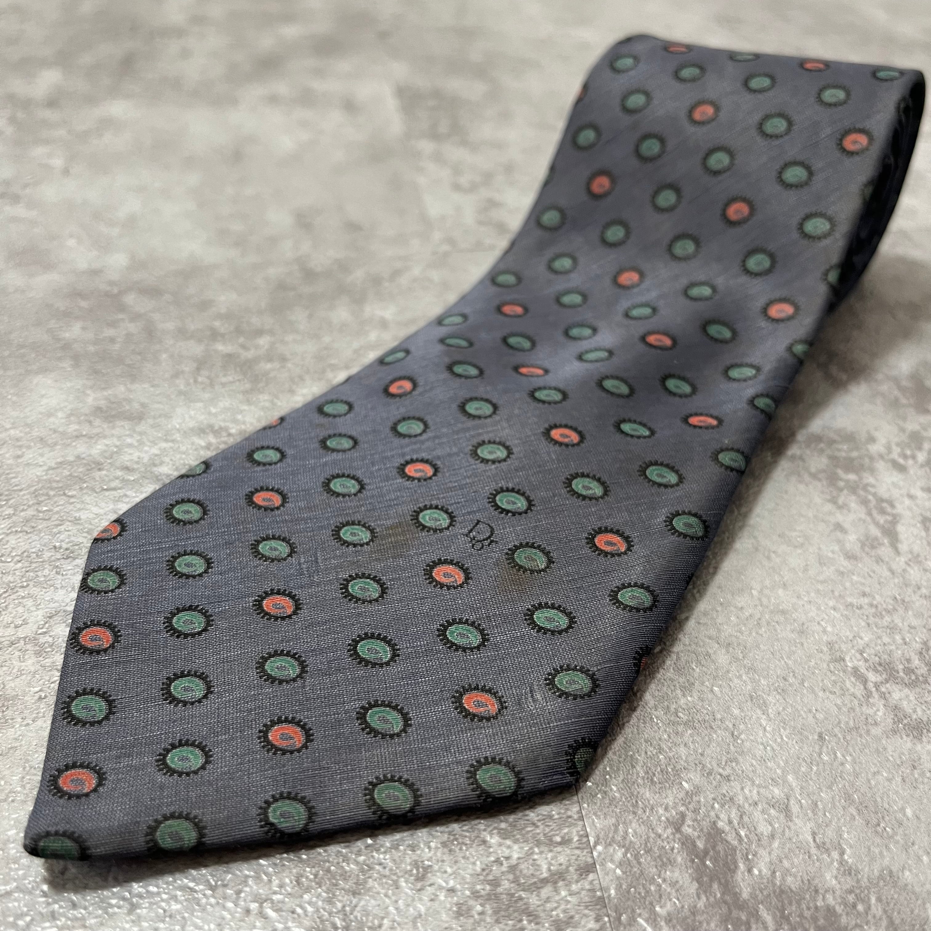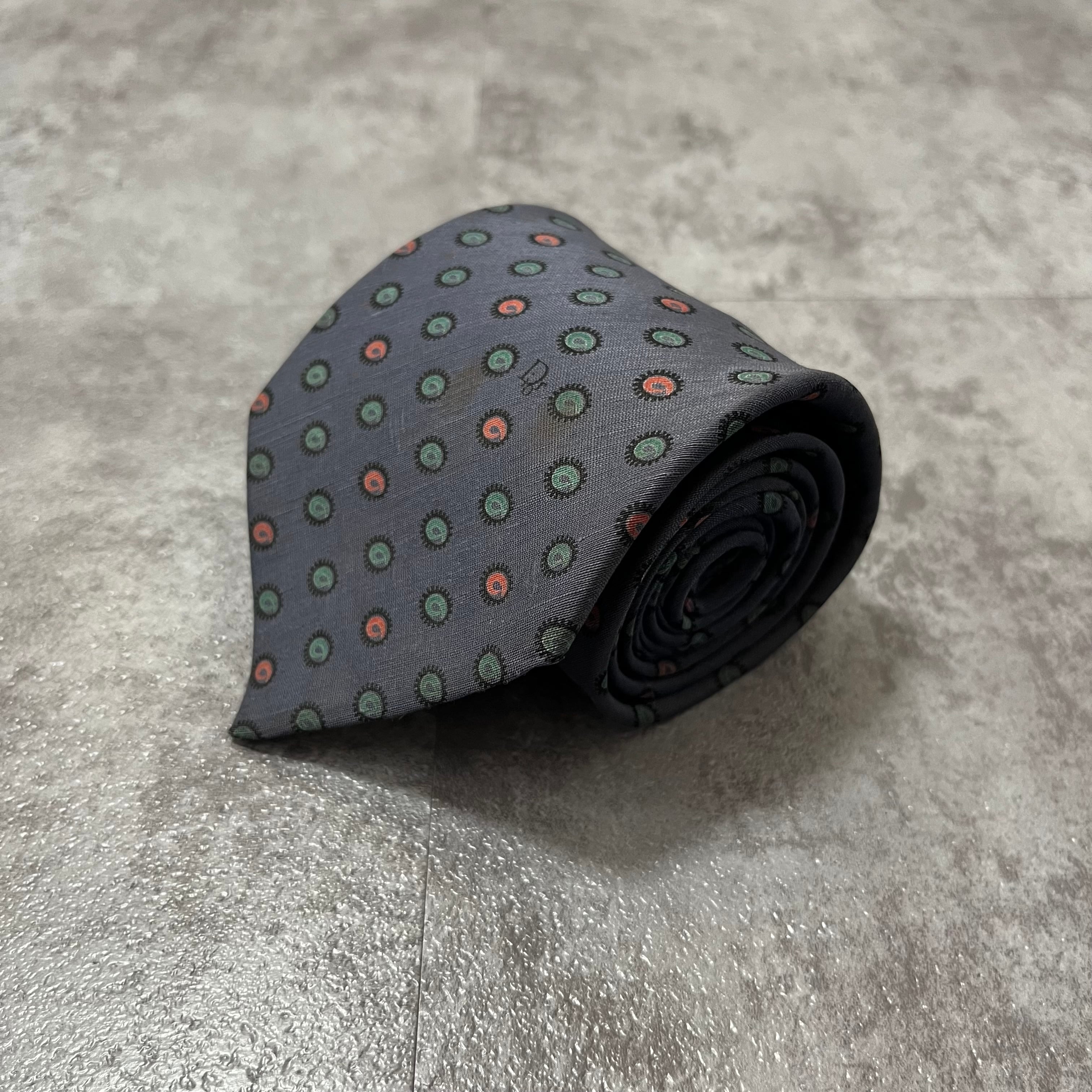 【Christian Dior】ロゴ入りドットネクタイ グレー マルチカラー