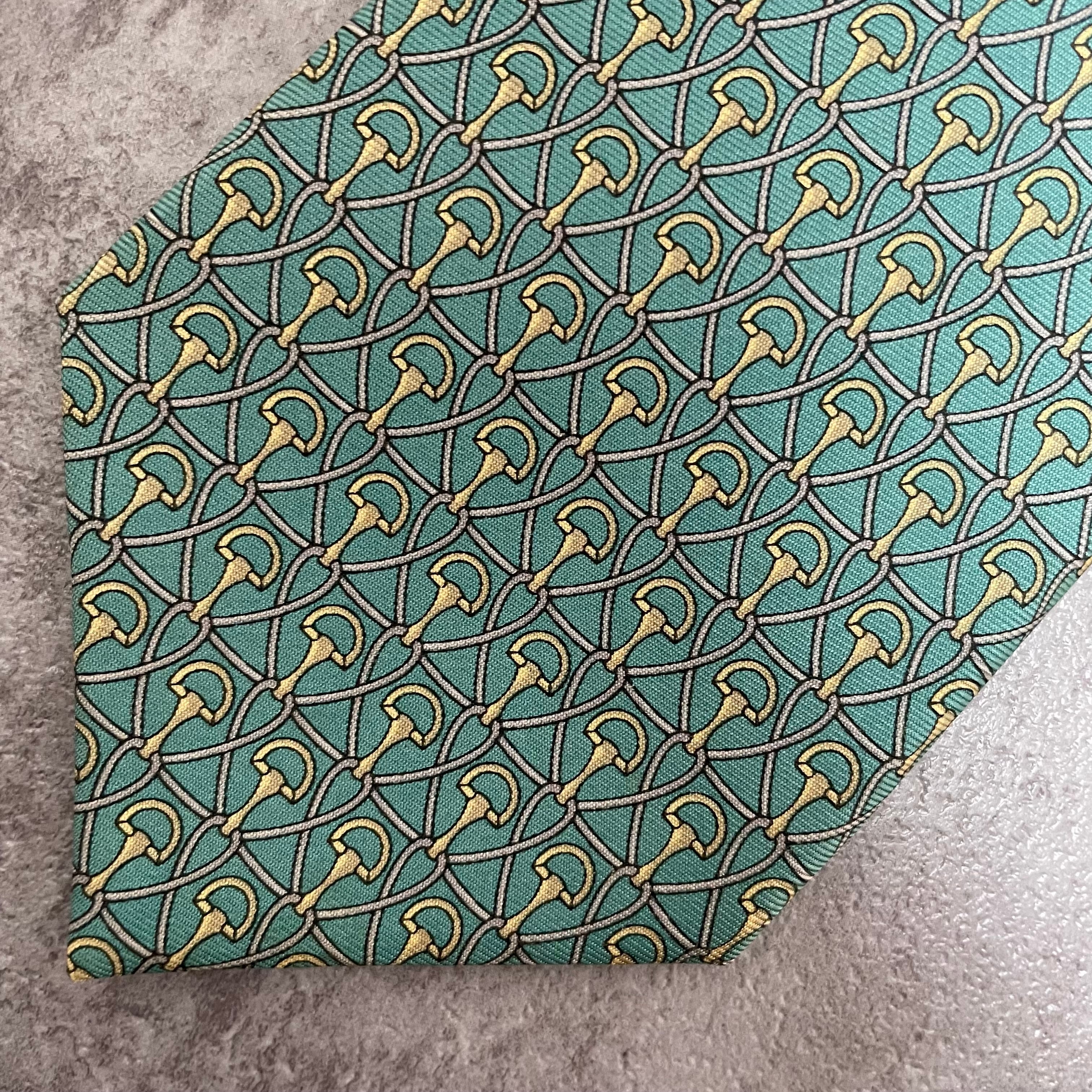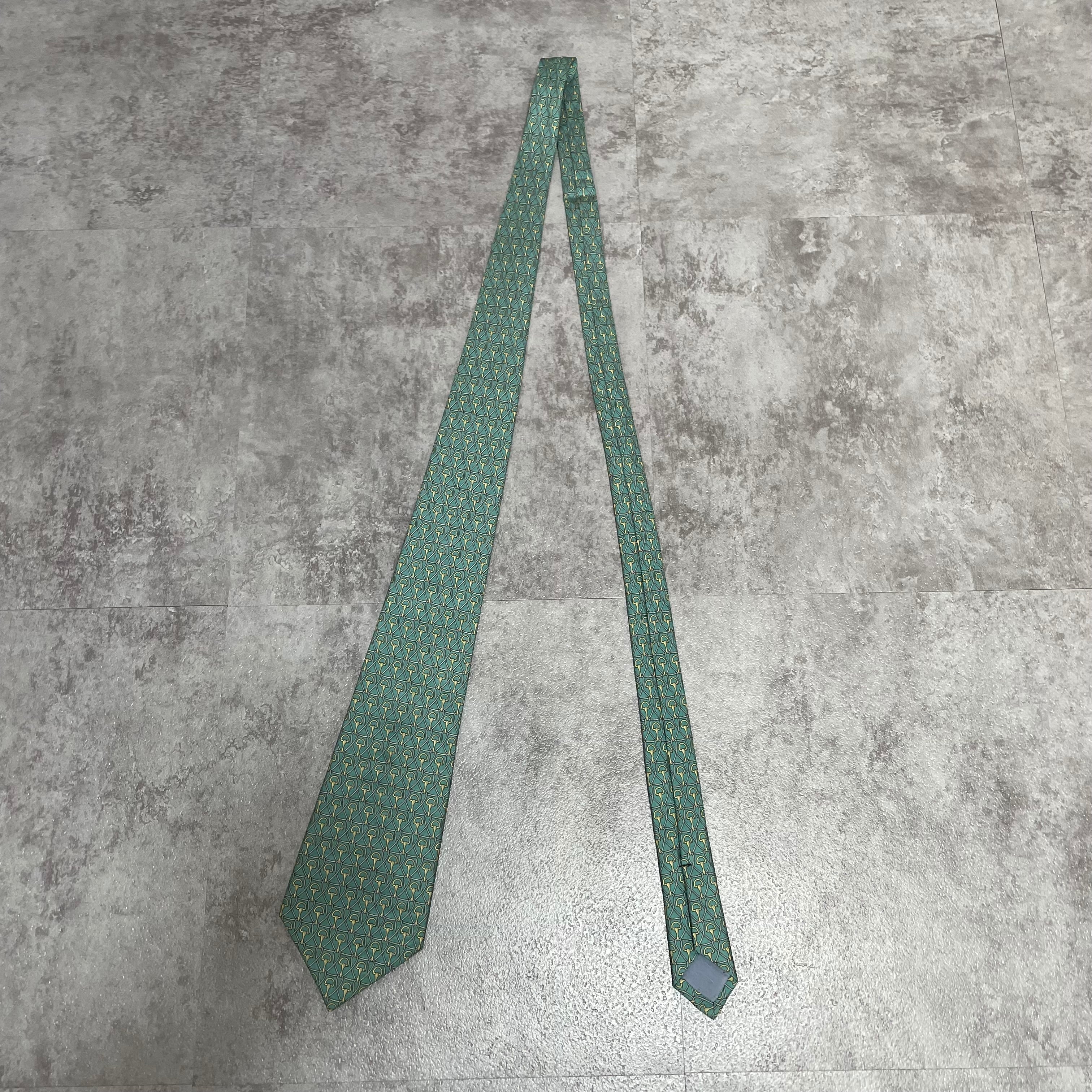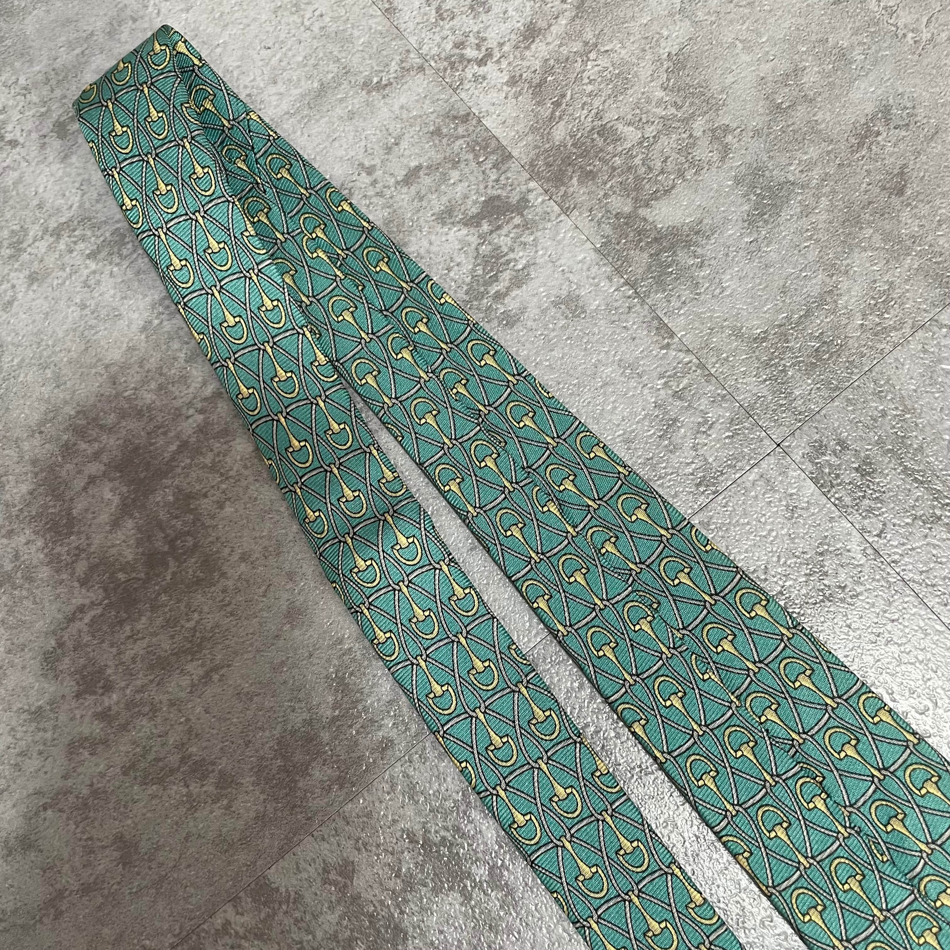【CELINE】チェーン柄ネクタイ ブルーグリーン バイカラー