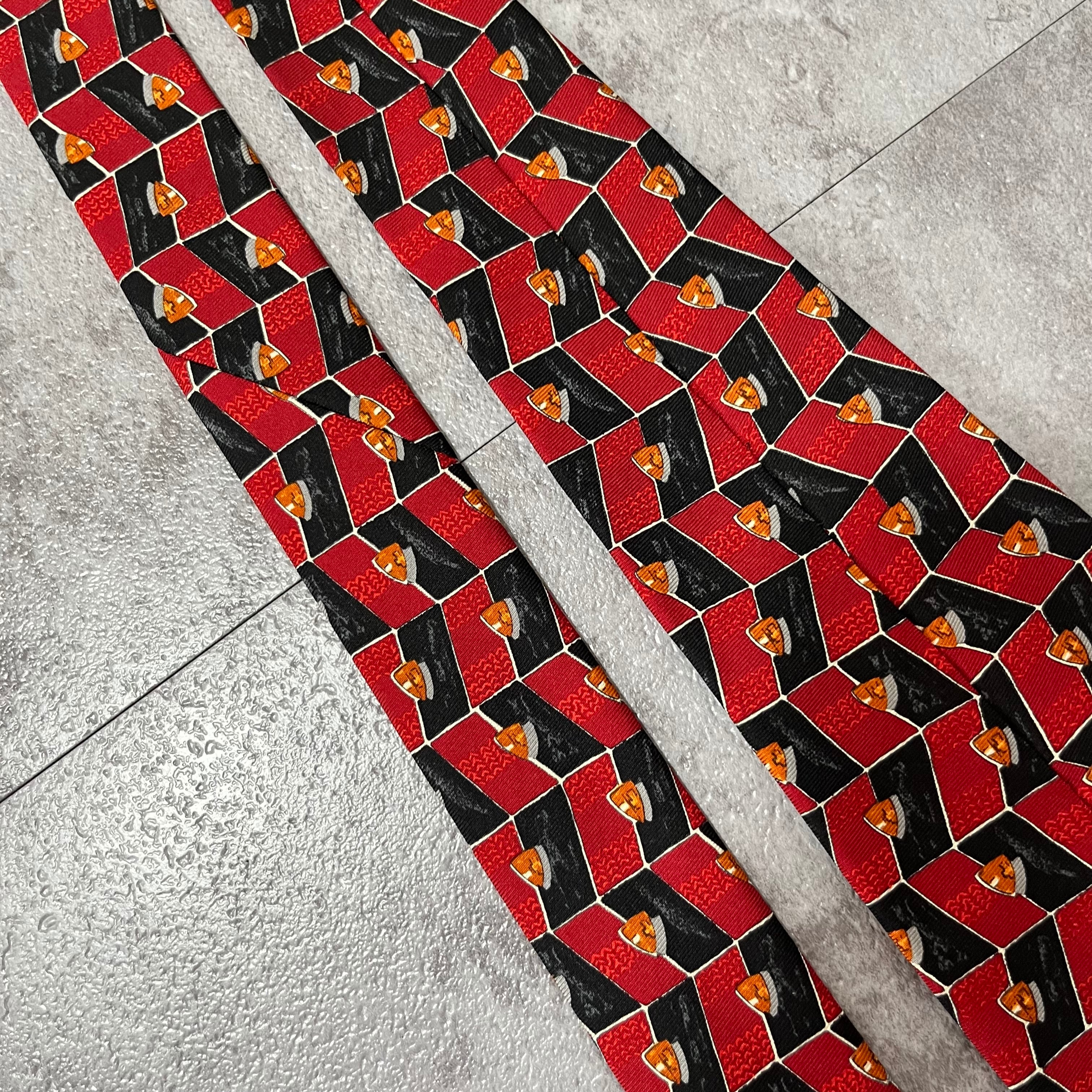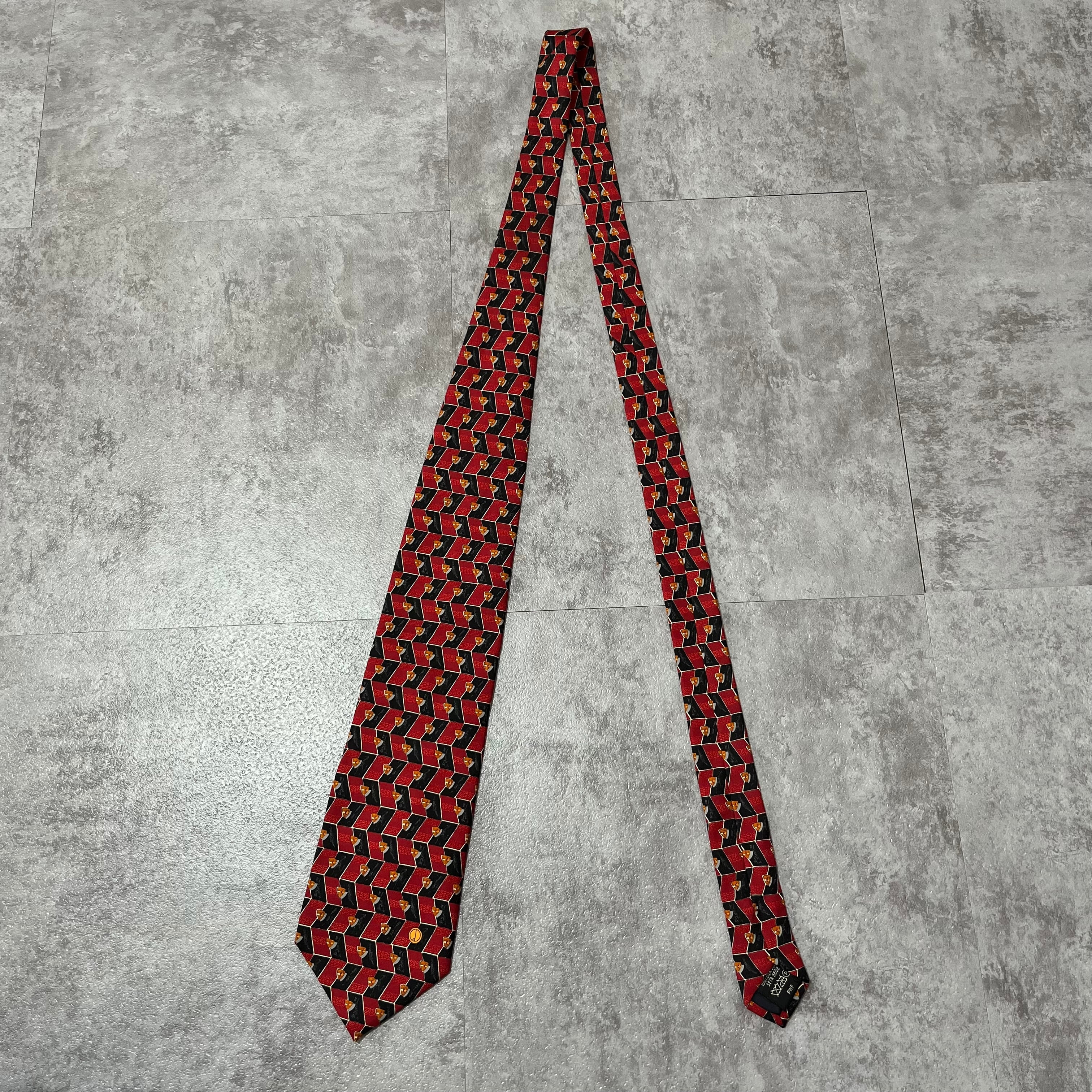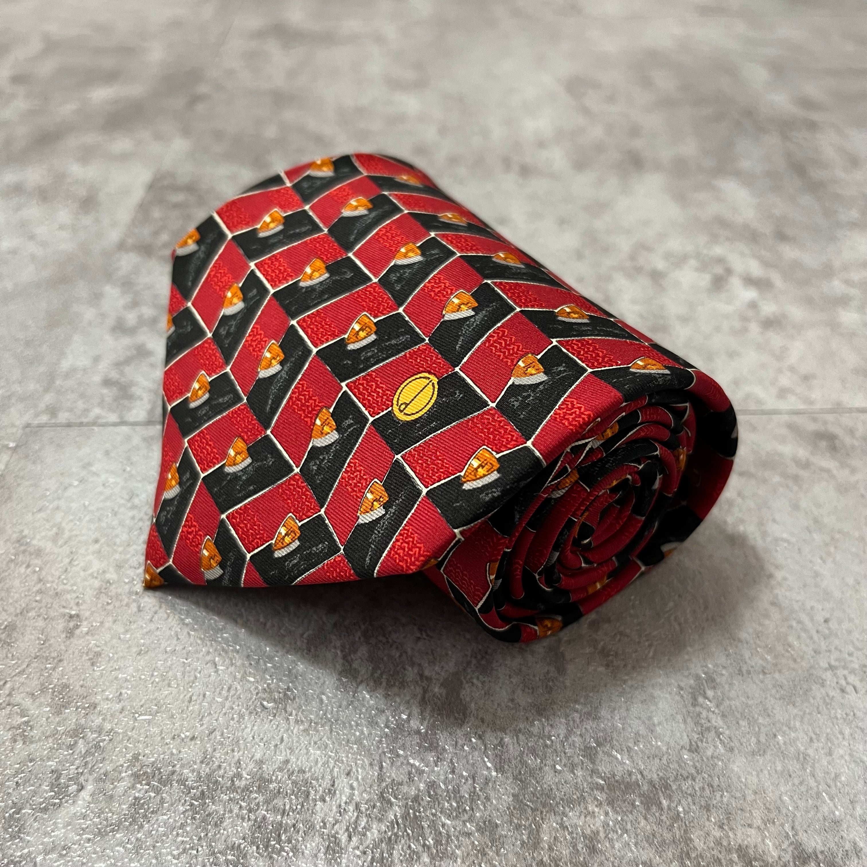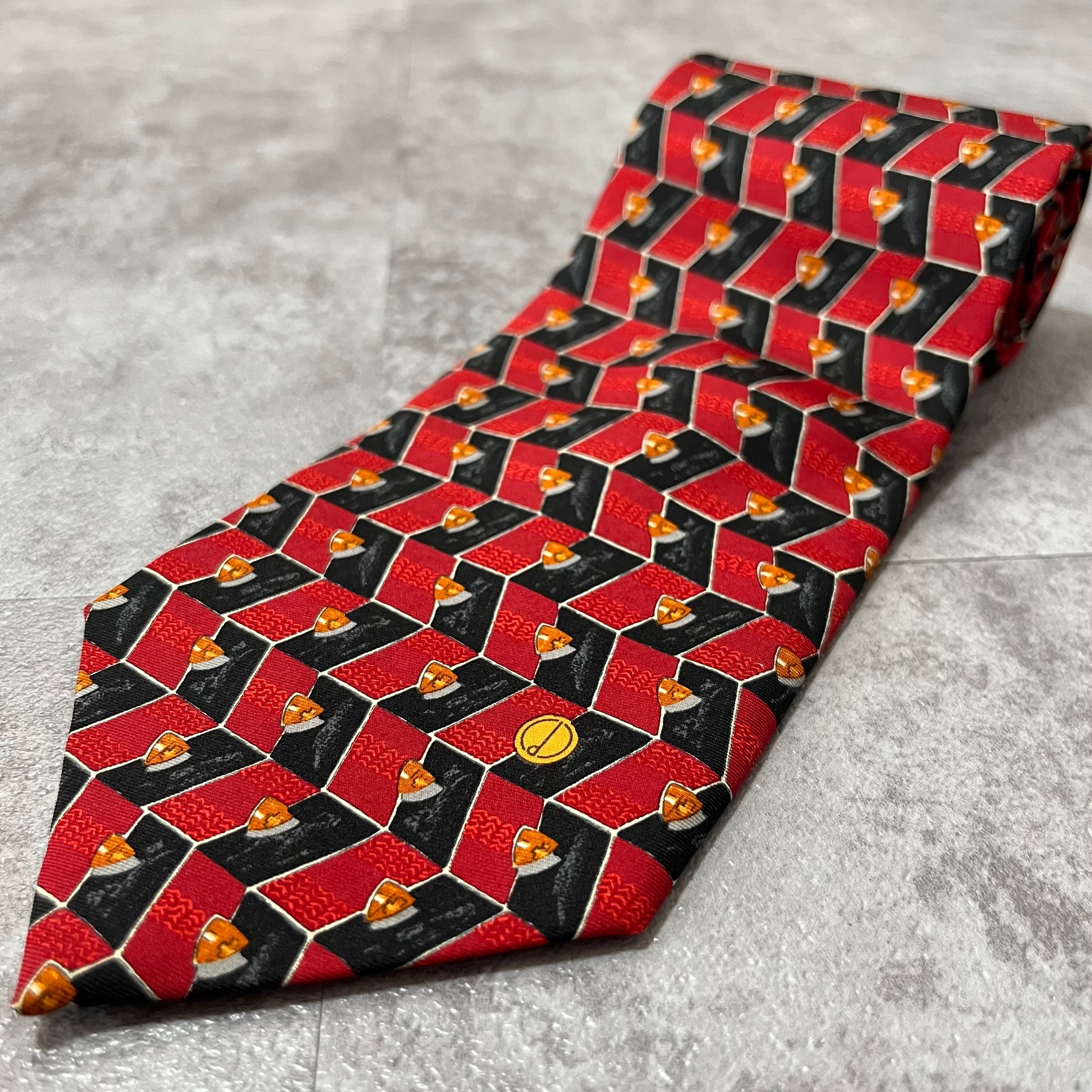 【dunhill】パネルパターンネクタイ バイカラー レッド ブラック ロゴ入り dロゴ