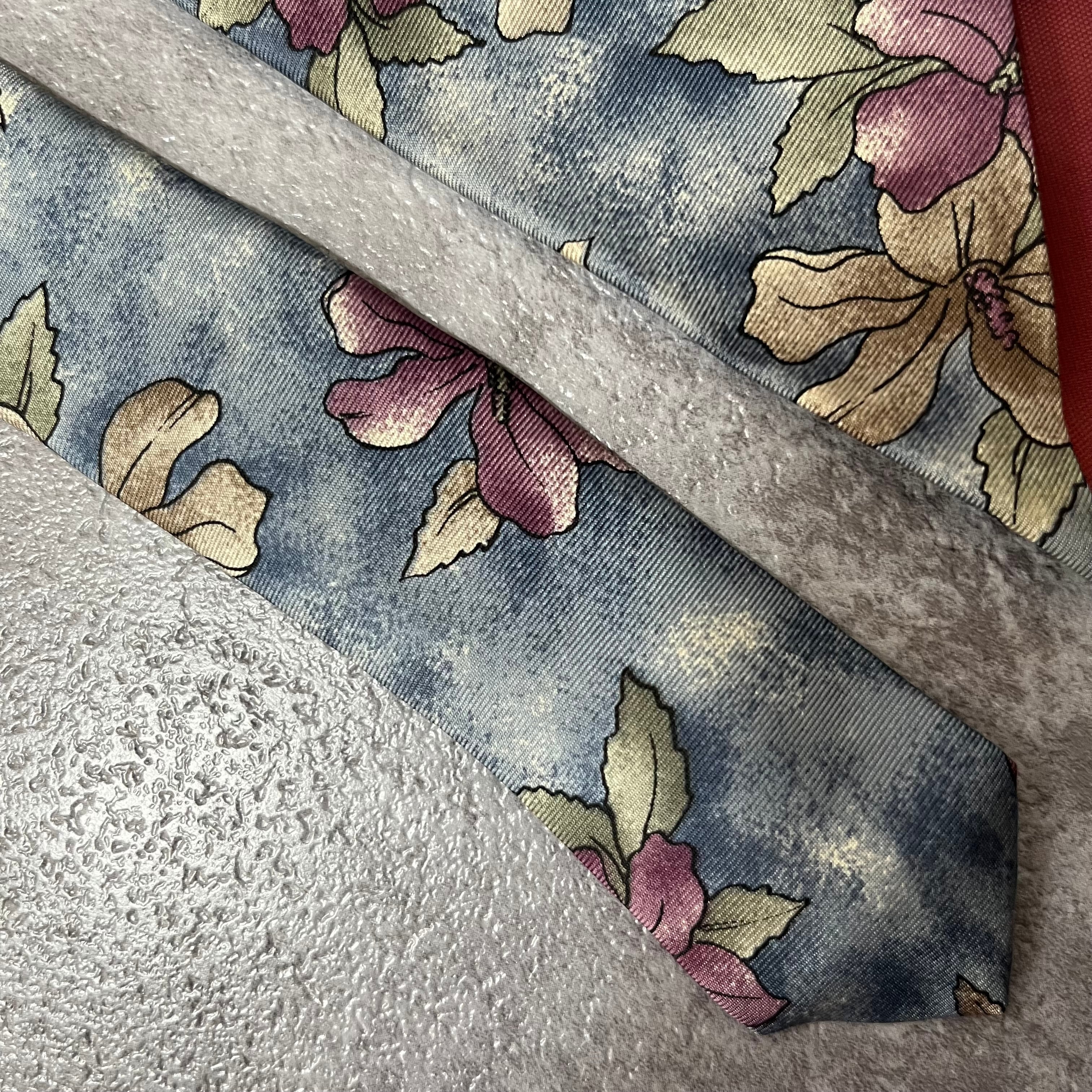 【Christian Dior】花柄ネクタイ ブルー くすみカラー
