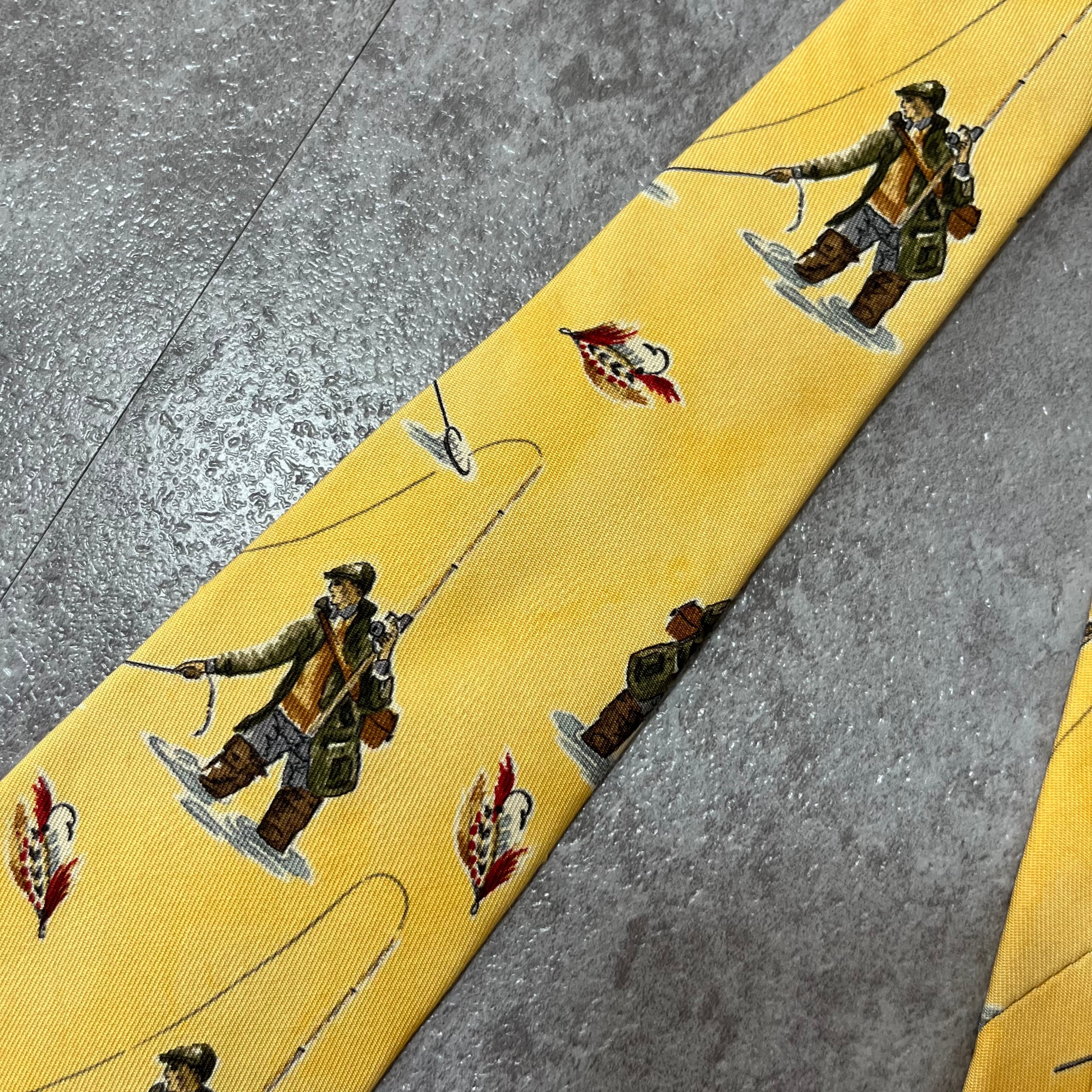 【RALPH LAUREN】釣り人ネクタイ イエロー たも網 竿 ルアー