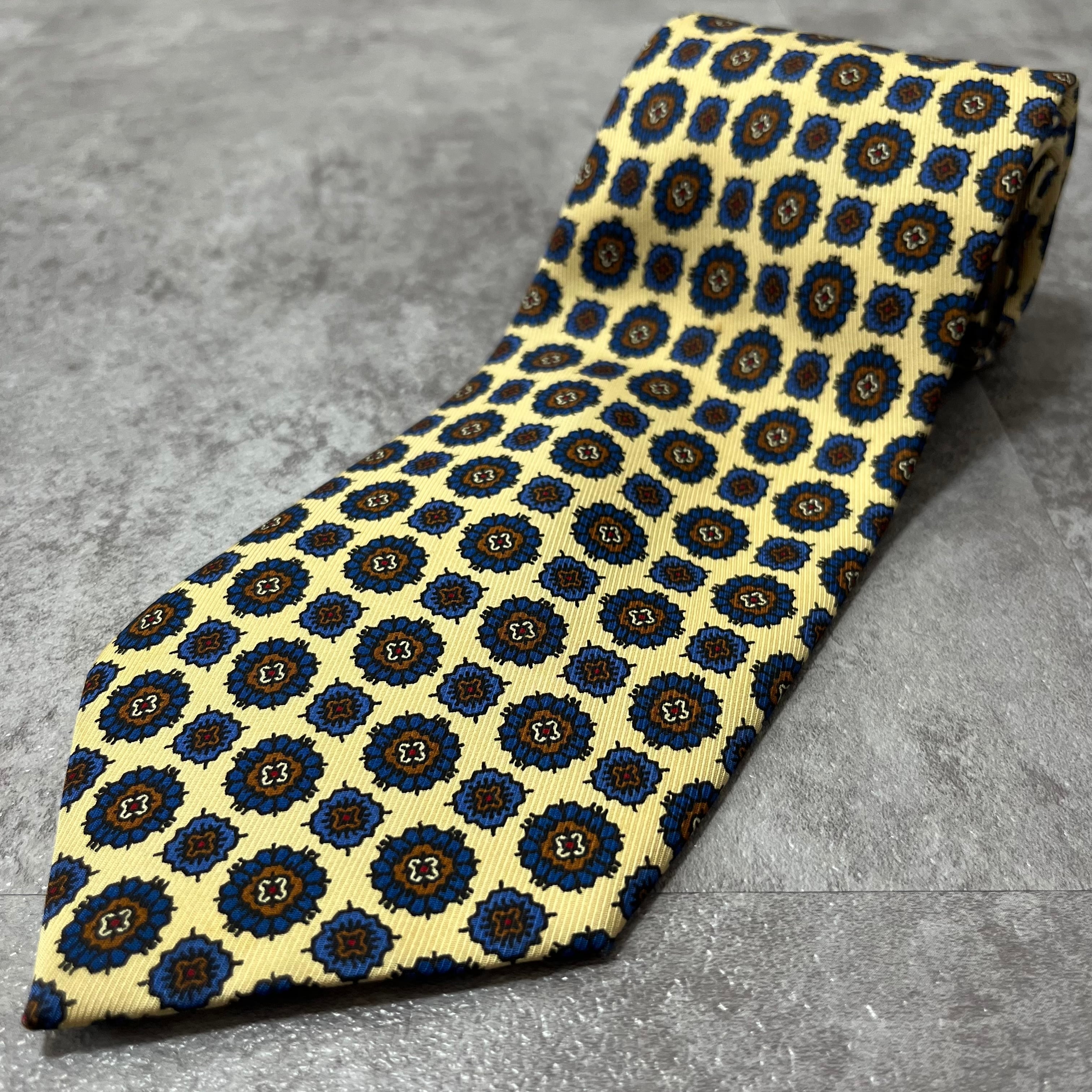 【Burberry】小紋花柄ネクタイ イエロー