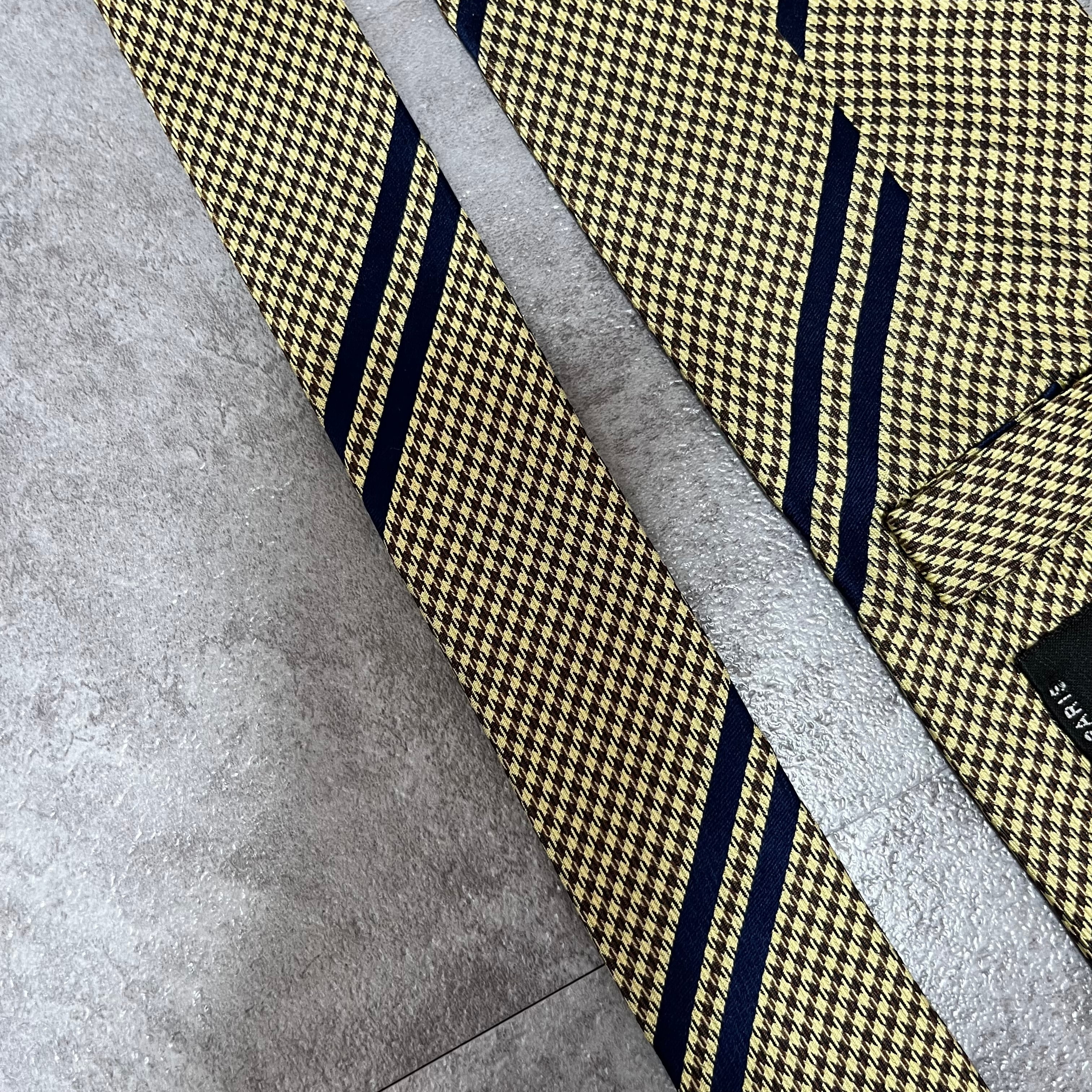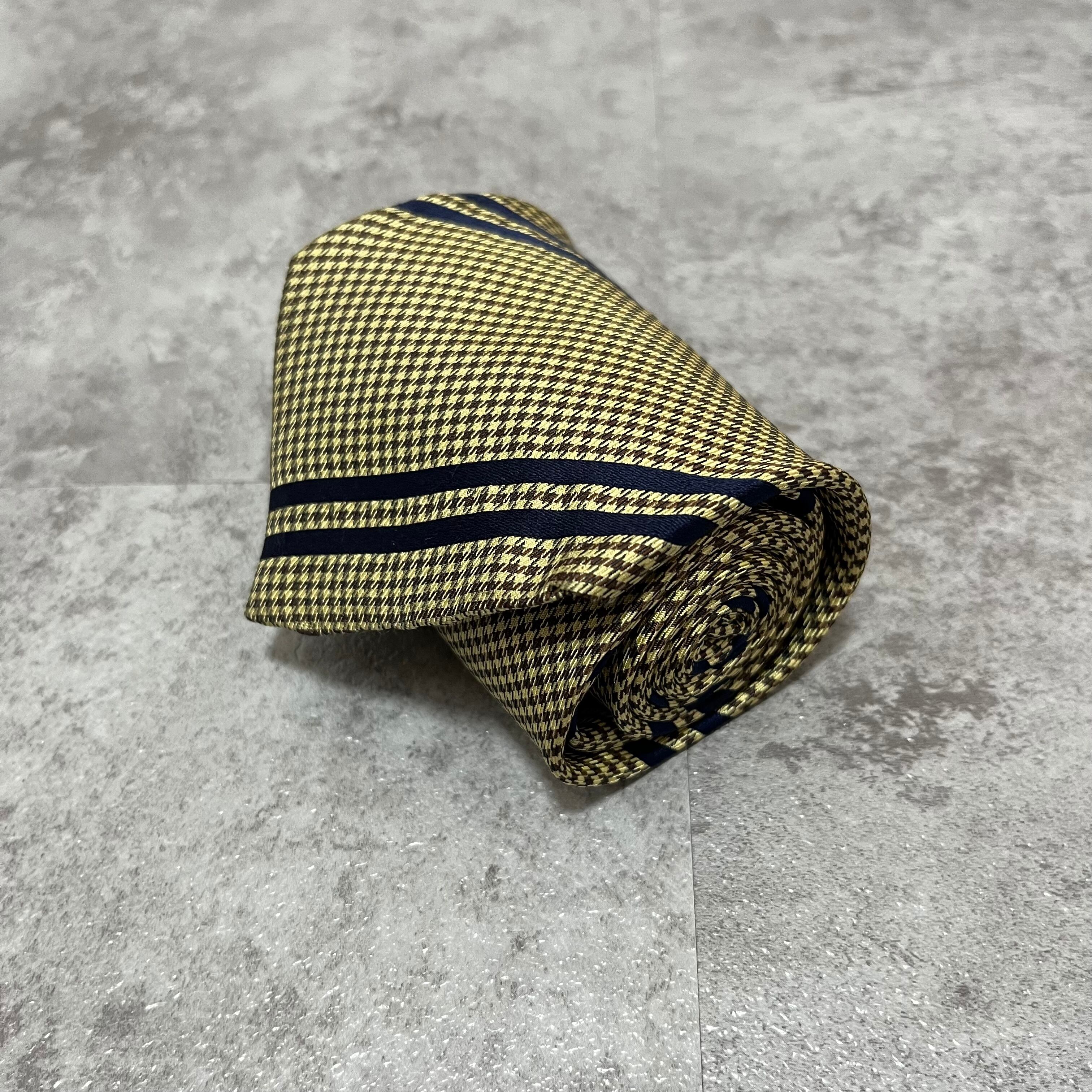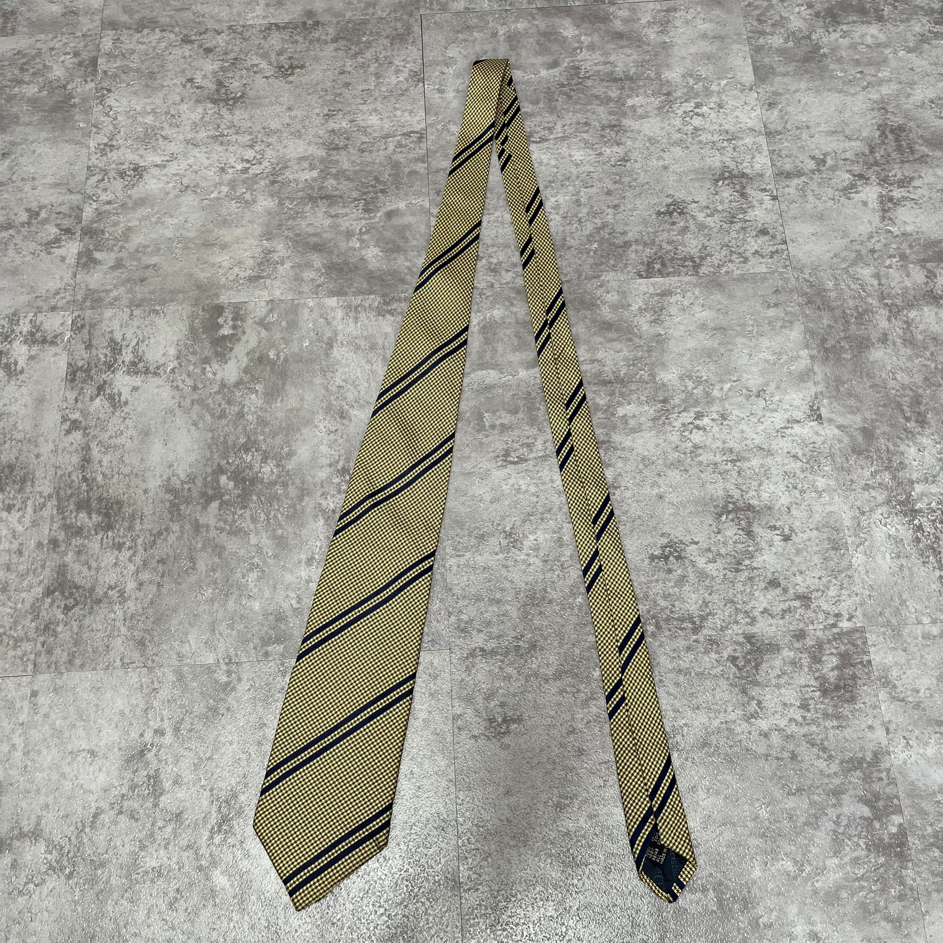【Christian Dior】レジメンタルストライプネクタイ イエロー ネイビー バイカラー