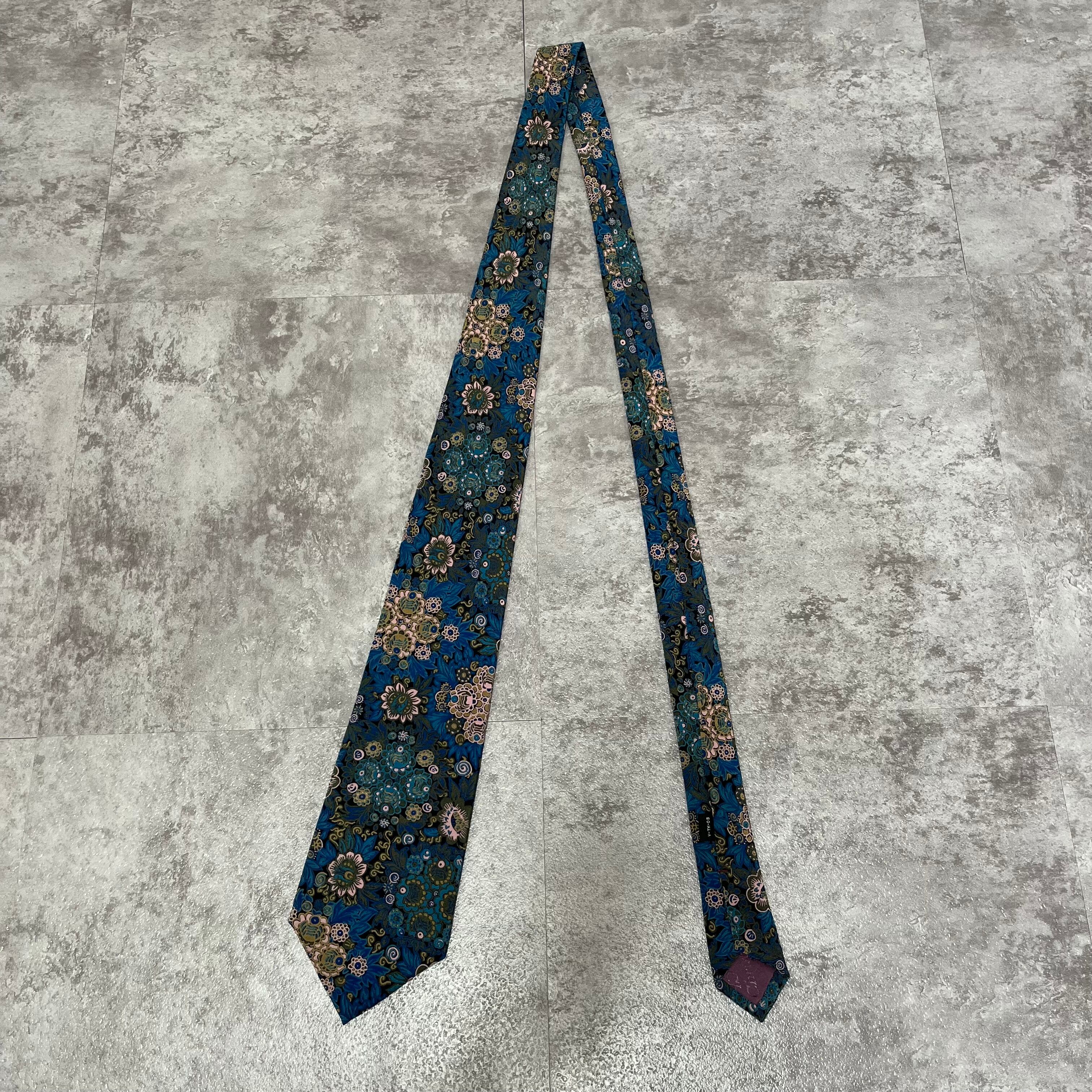 【Christian Dior】花柄ネクタイ ブルー ボタニカル
