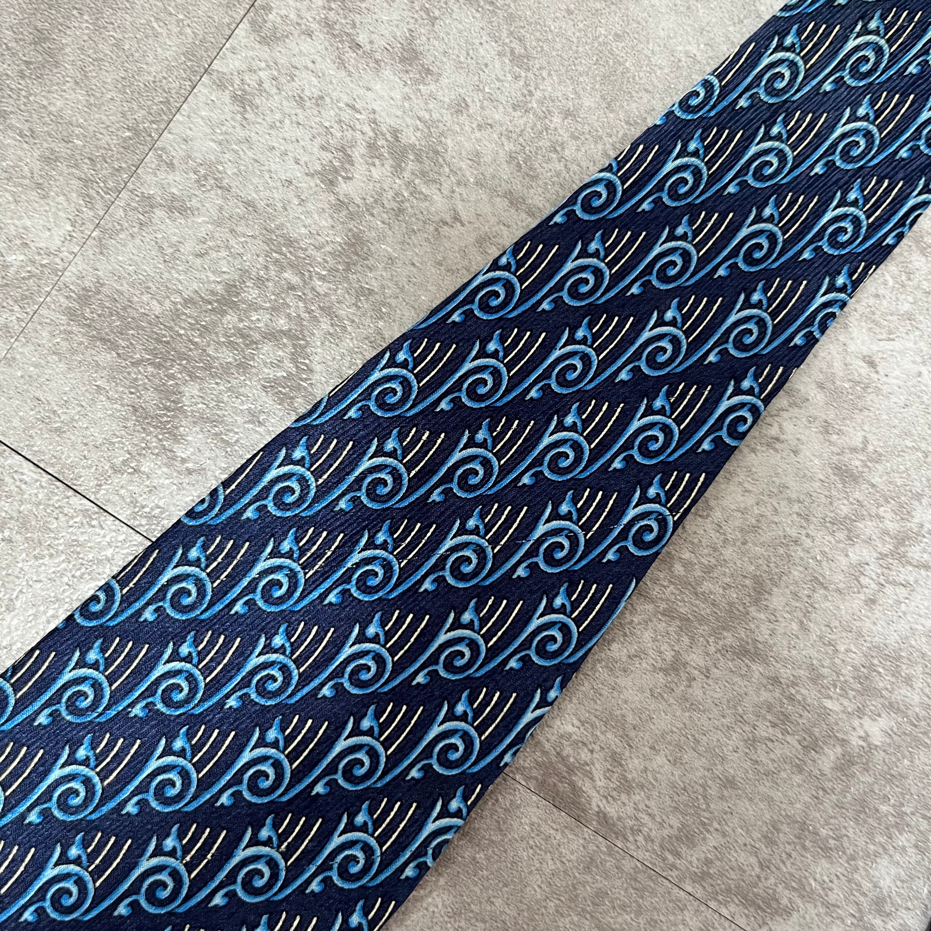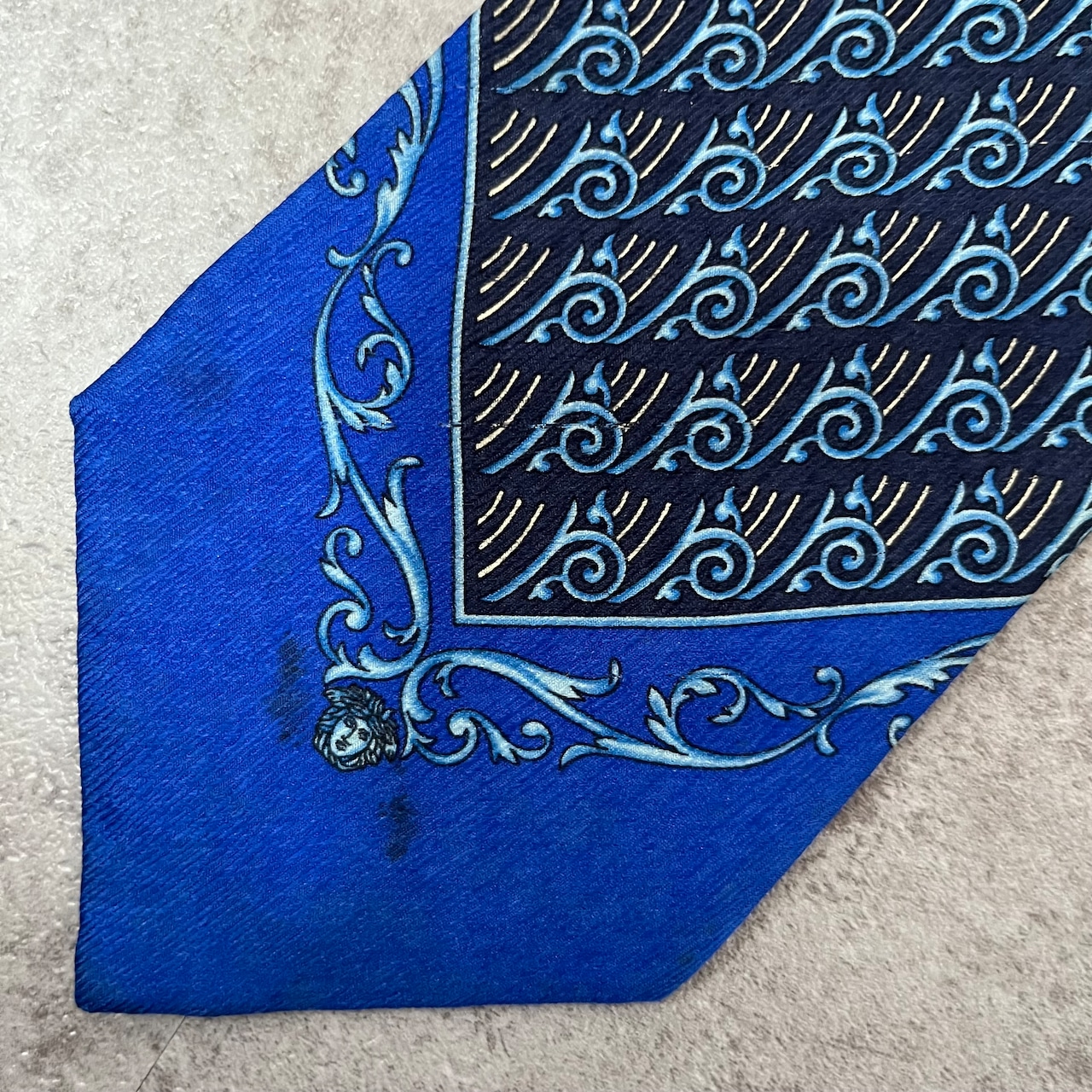 【Versace】スカーフ風ネクタイ ブルー グレカ柄 グレカ模様 バイカラー
