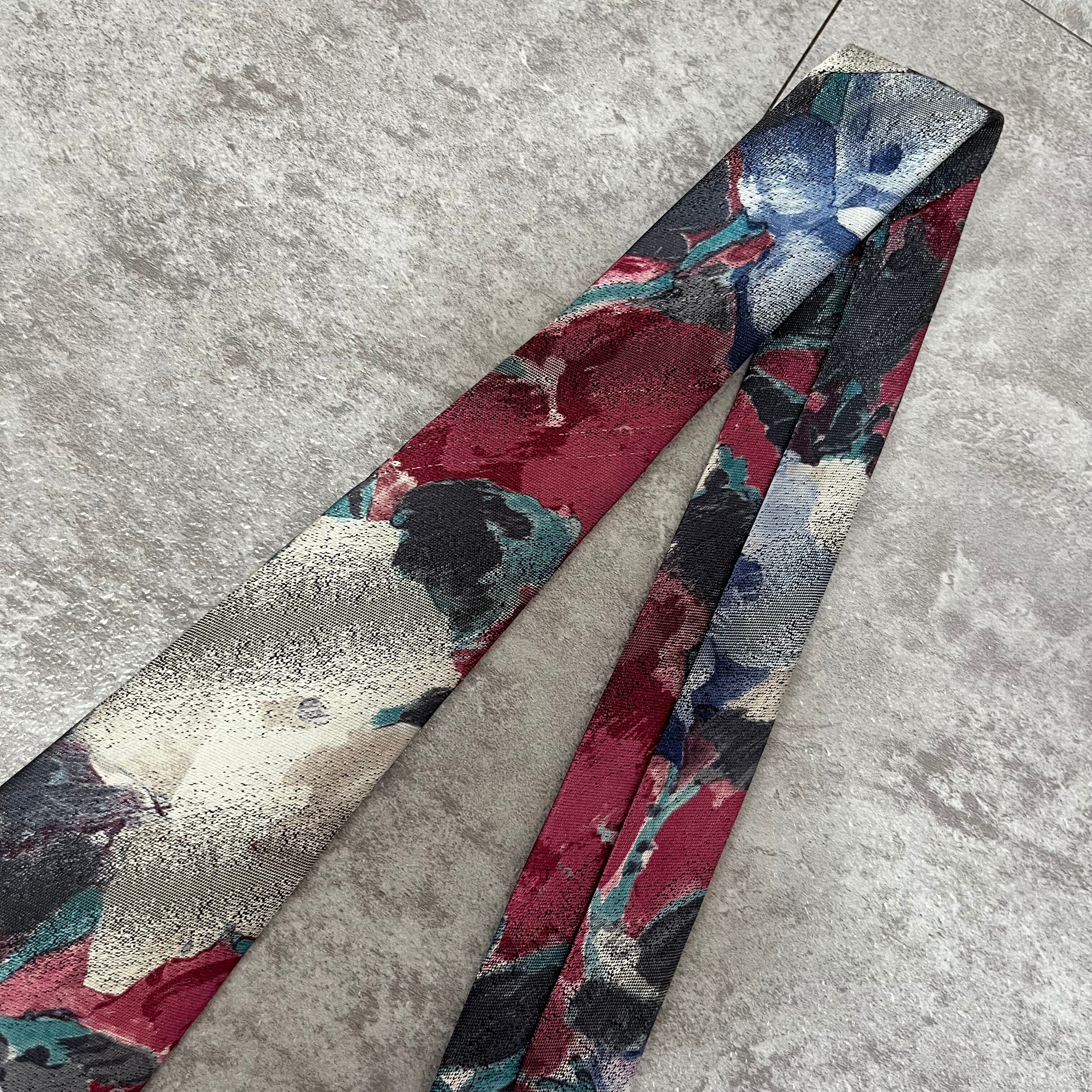 【Christian Dior】花柄ネクタイ 光沢 ワインレッド パープル グレー くすみカラー