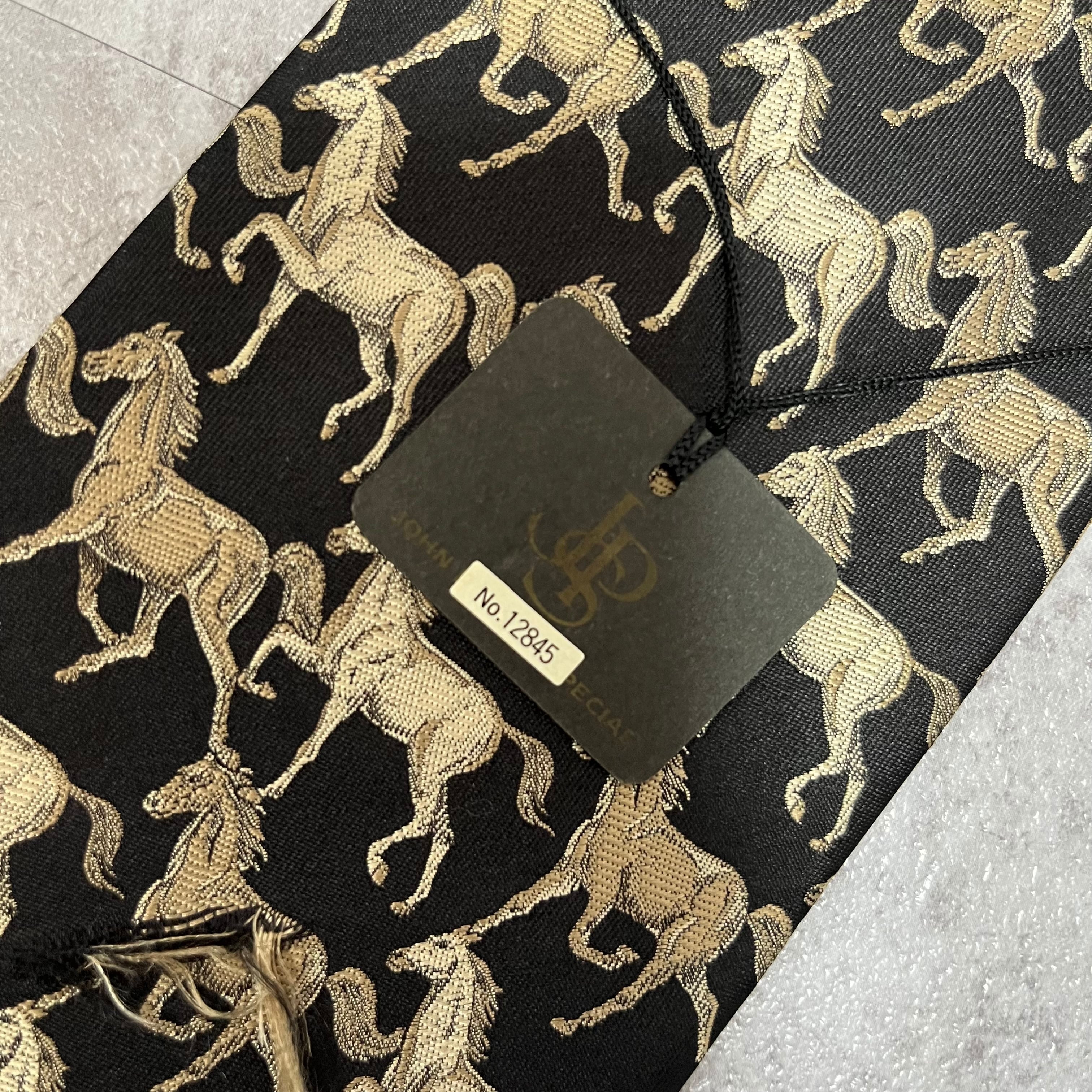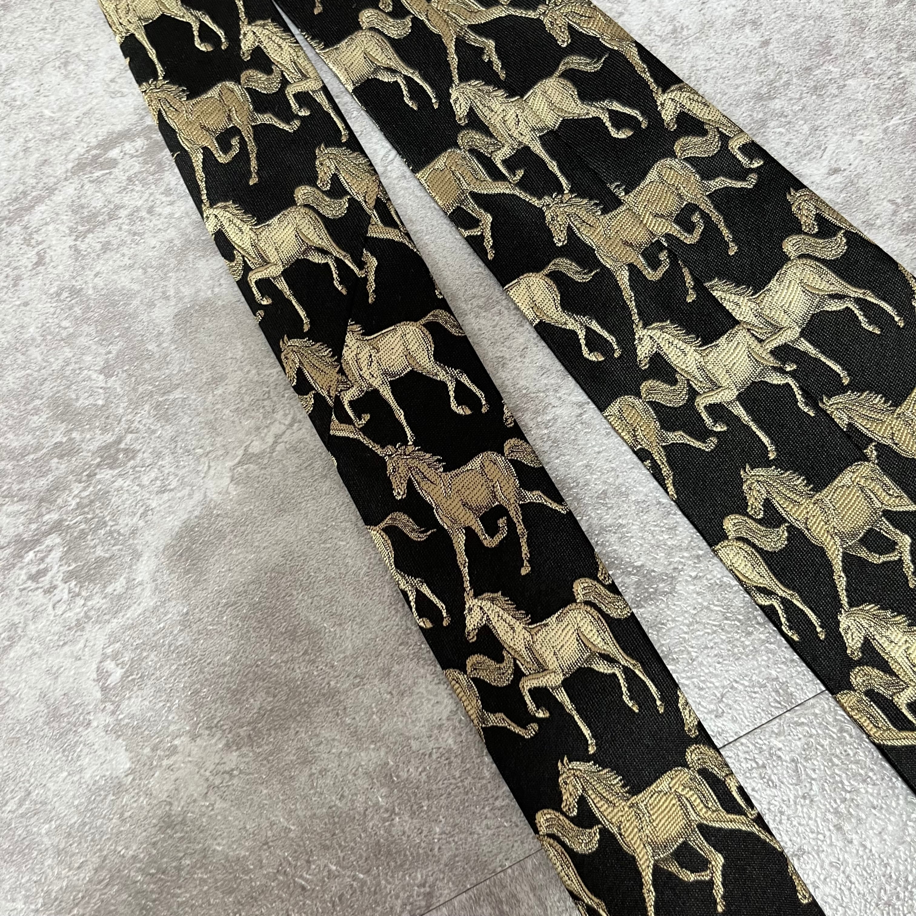【馬柄】タグ付きアニマル柄ネクタイ 馬柄 ブラック シルバー