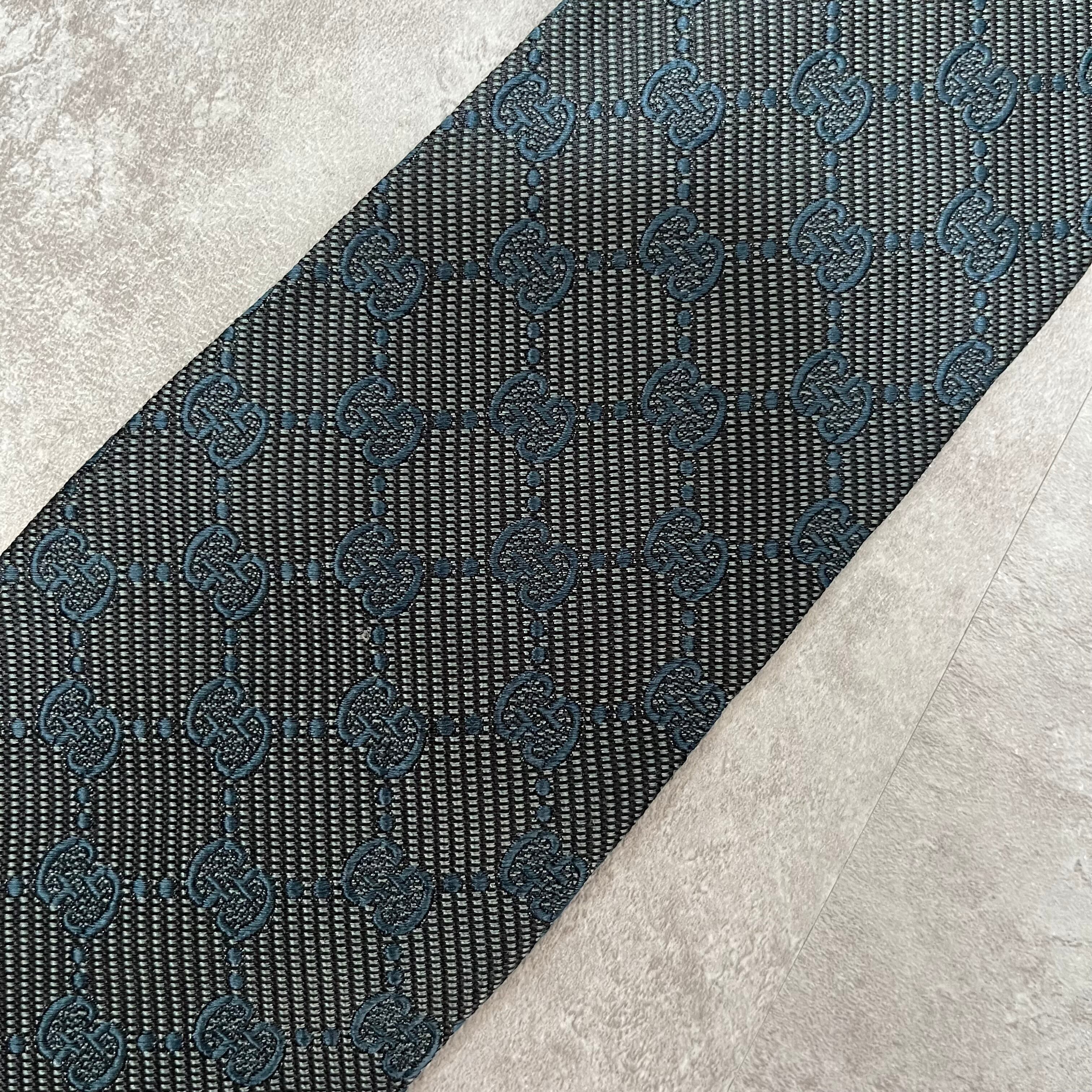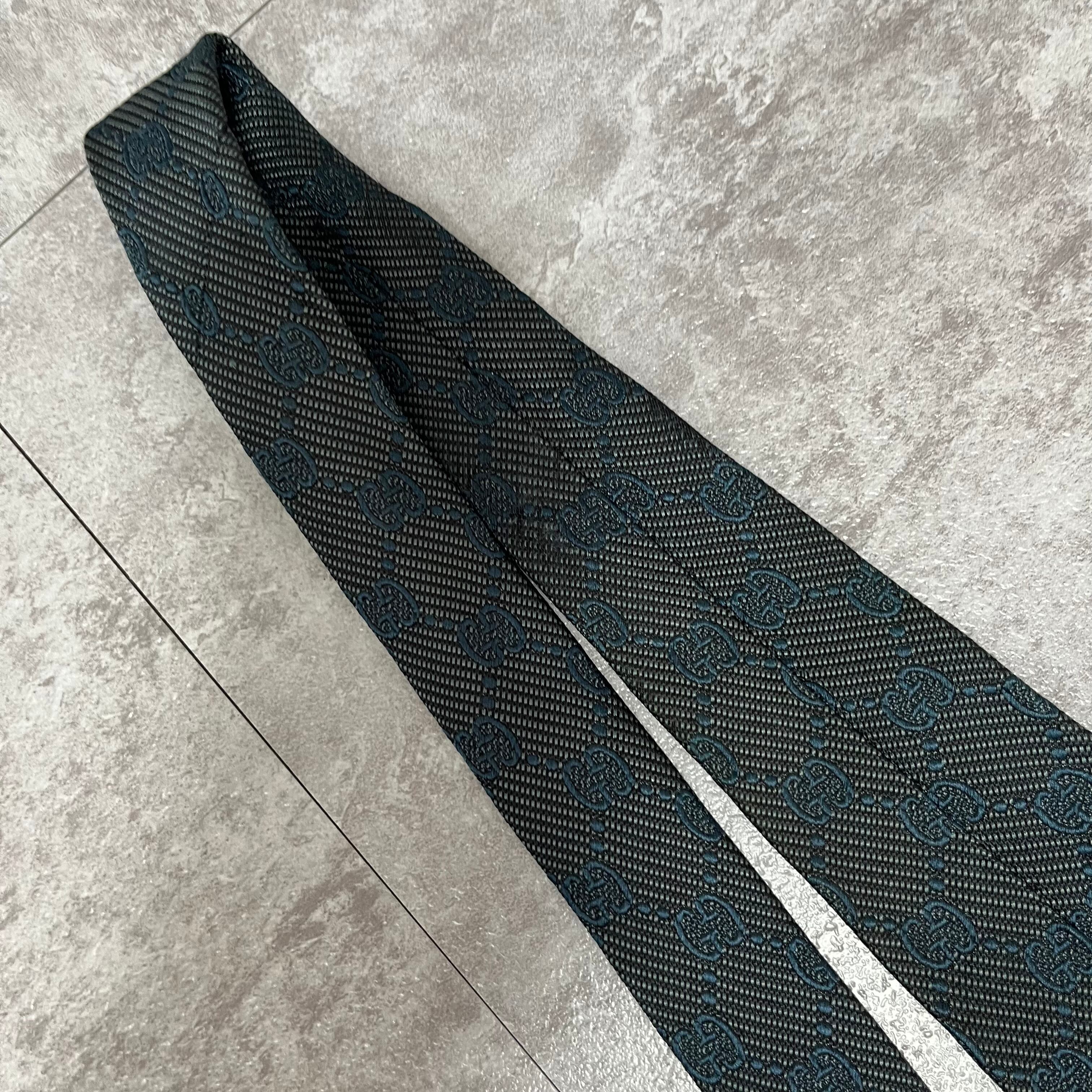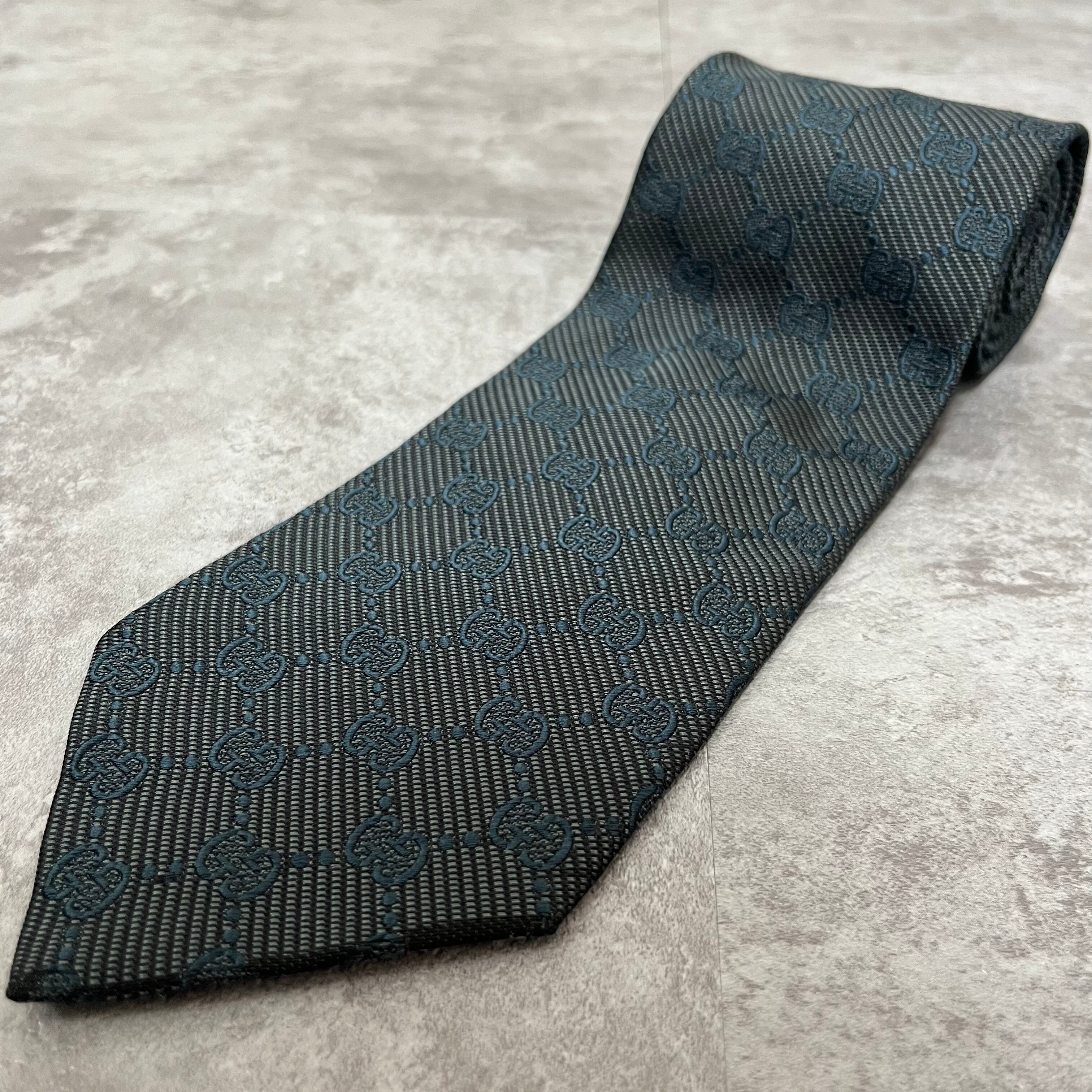 【GUCCI】gg柄ネクタイ ネイビー 総ロゴ