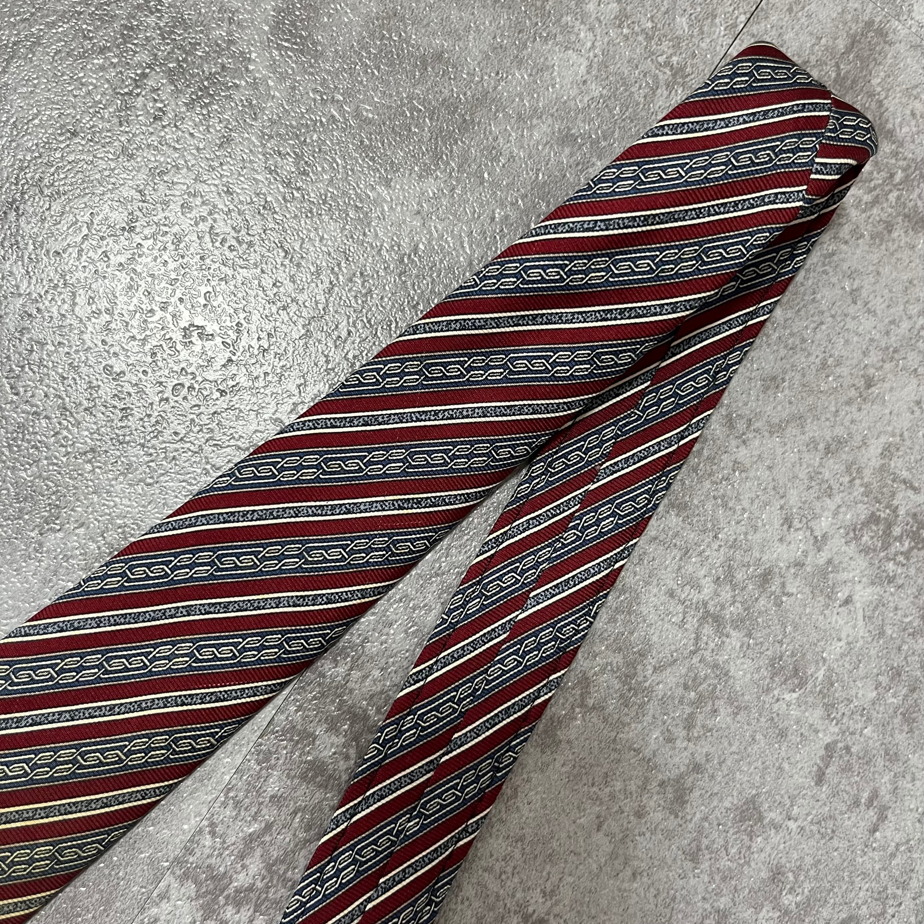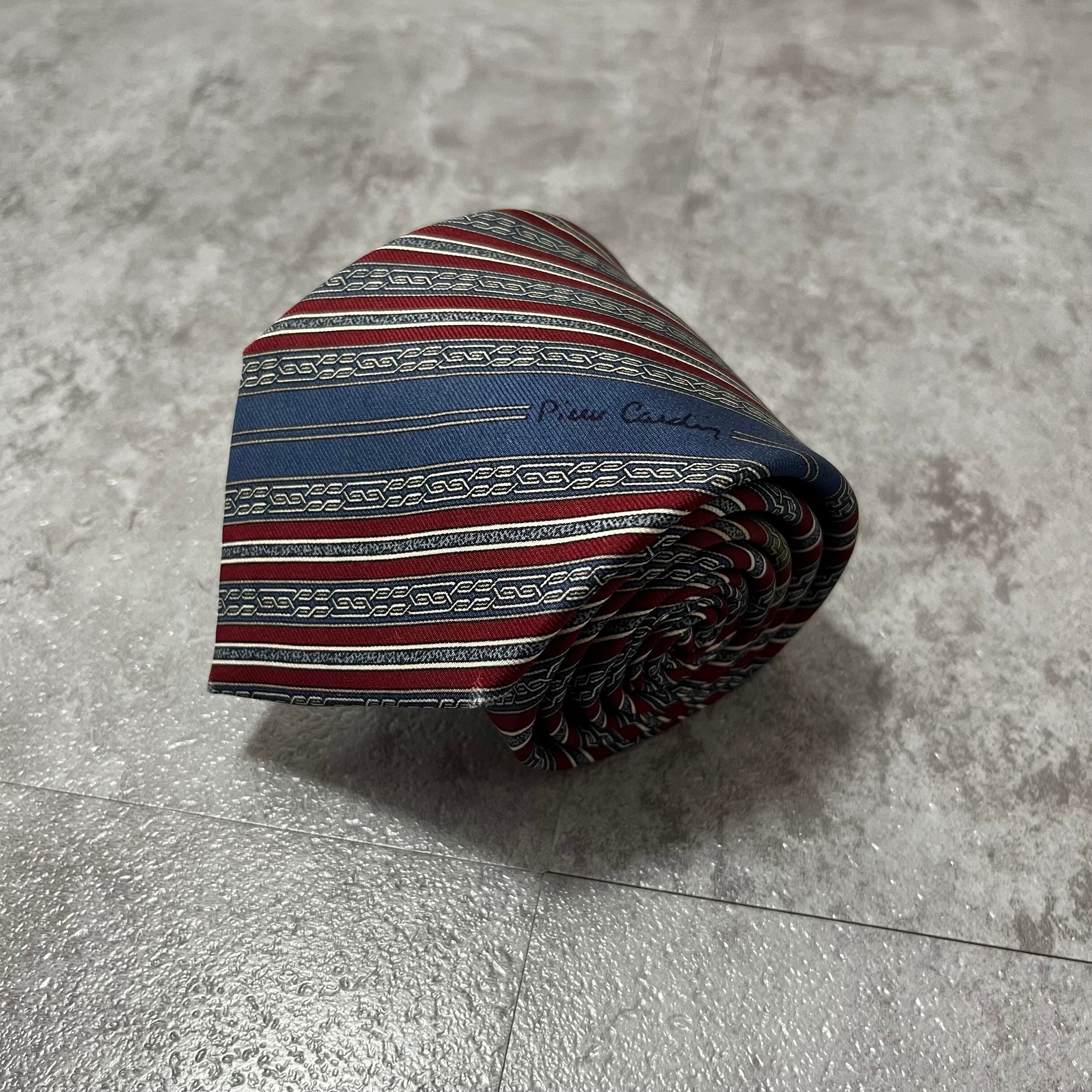 【pierre cardin】ロゴ入りレジメンタルストライプネクタイ レッド ネイビー バイカラー