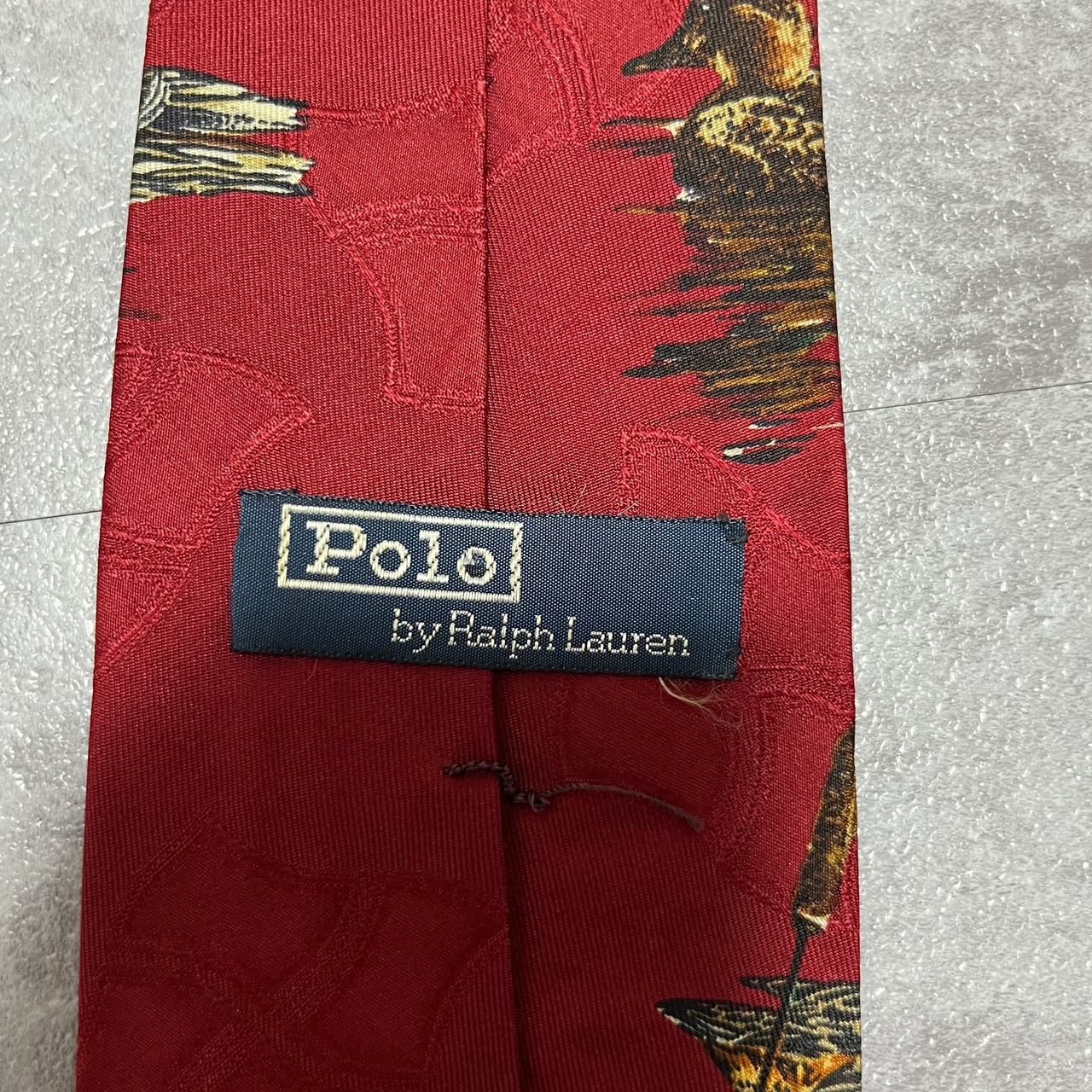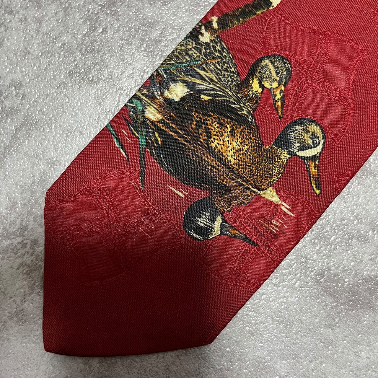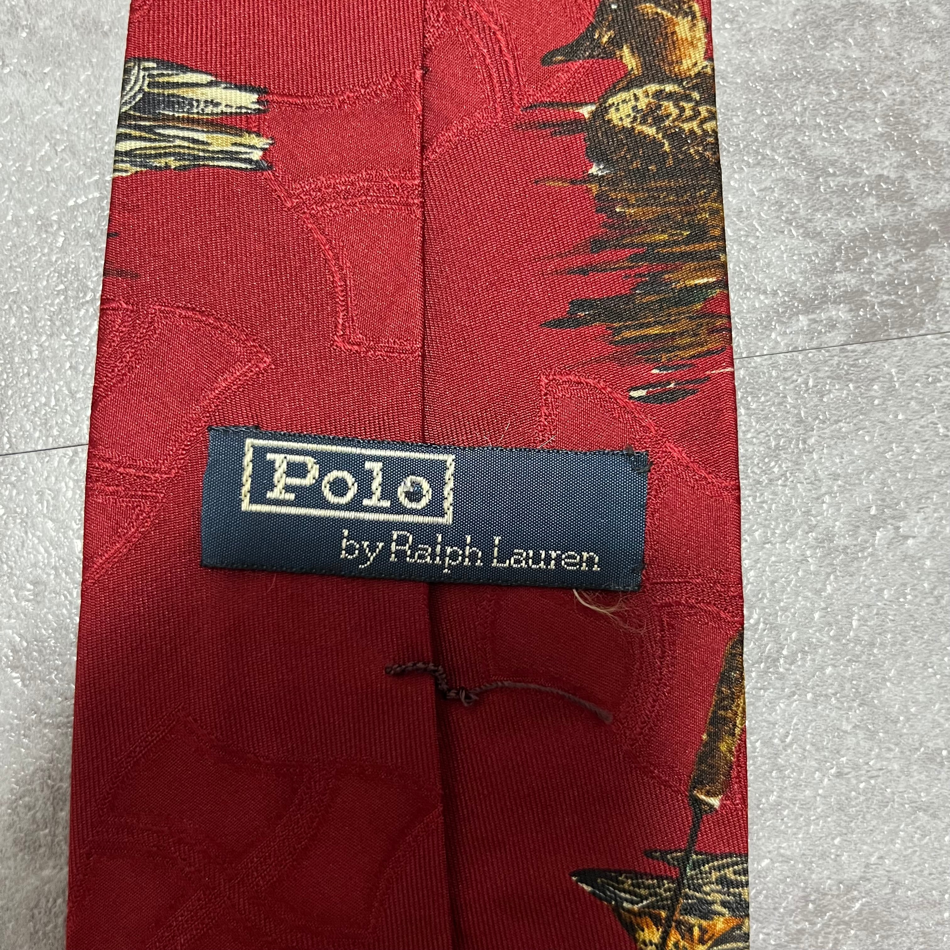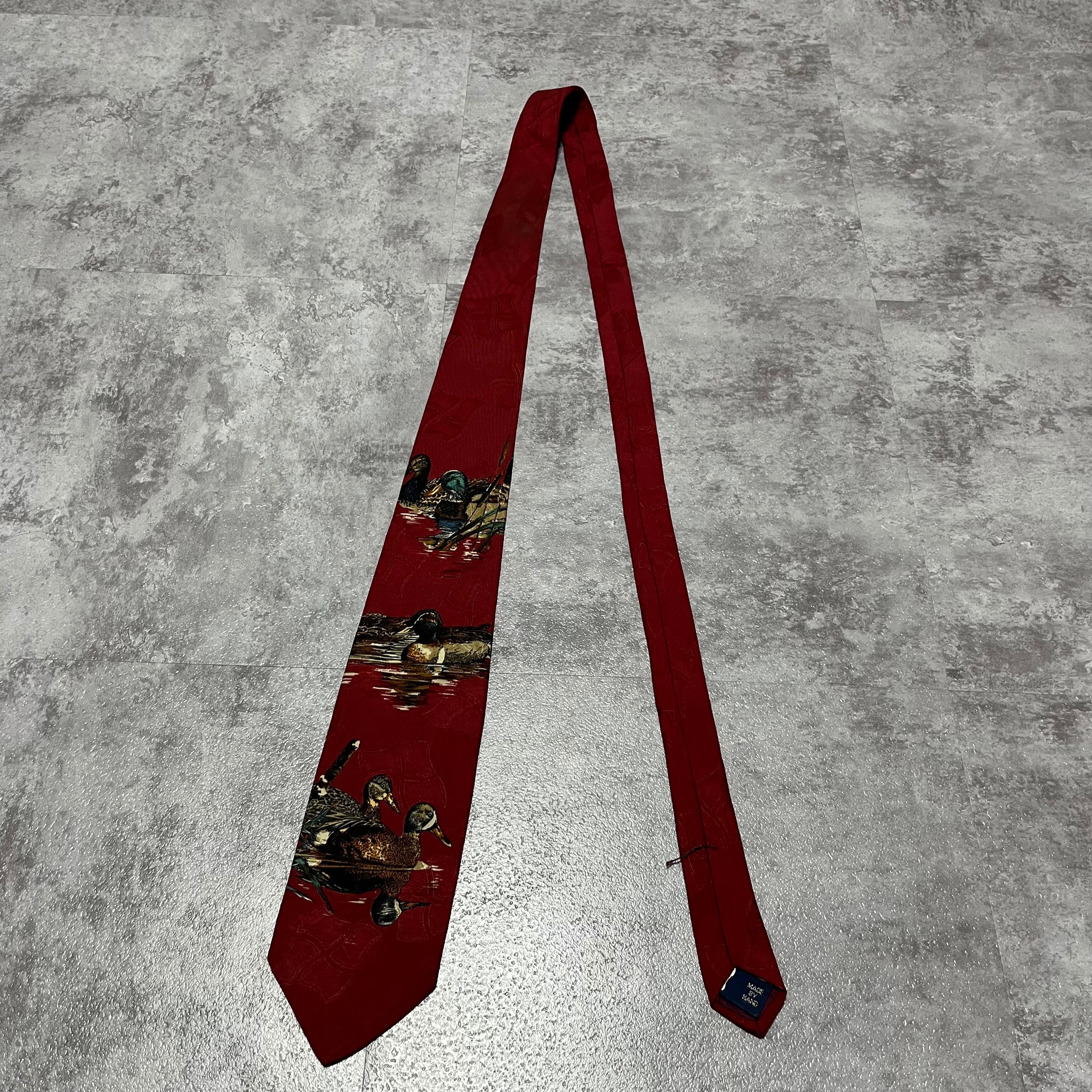 【RALPH LAUREN】アニマル柄ネクタイ カモ 鴨 レッド シャドウ幾何学