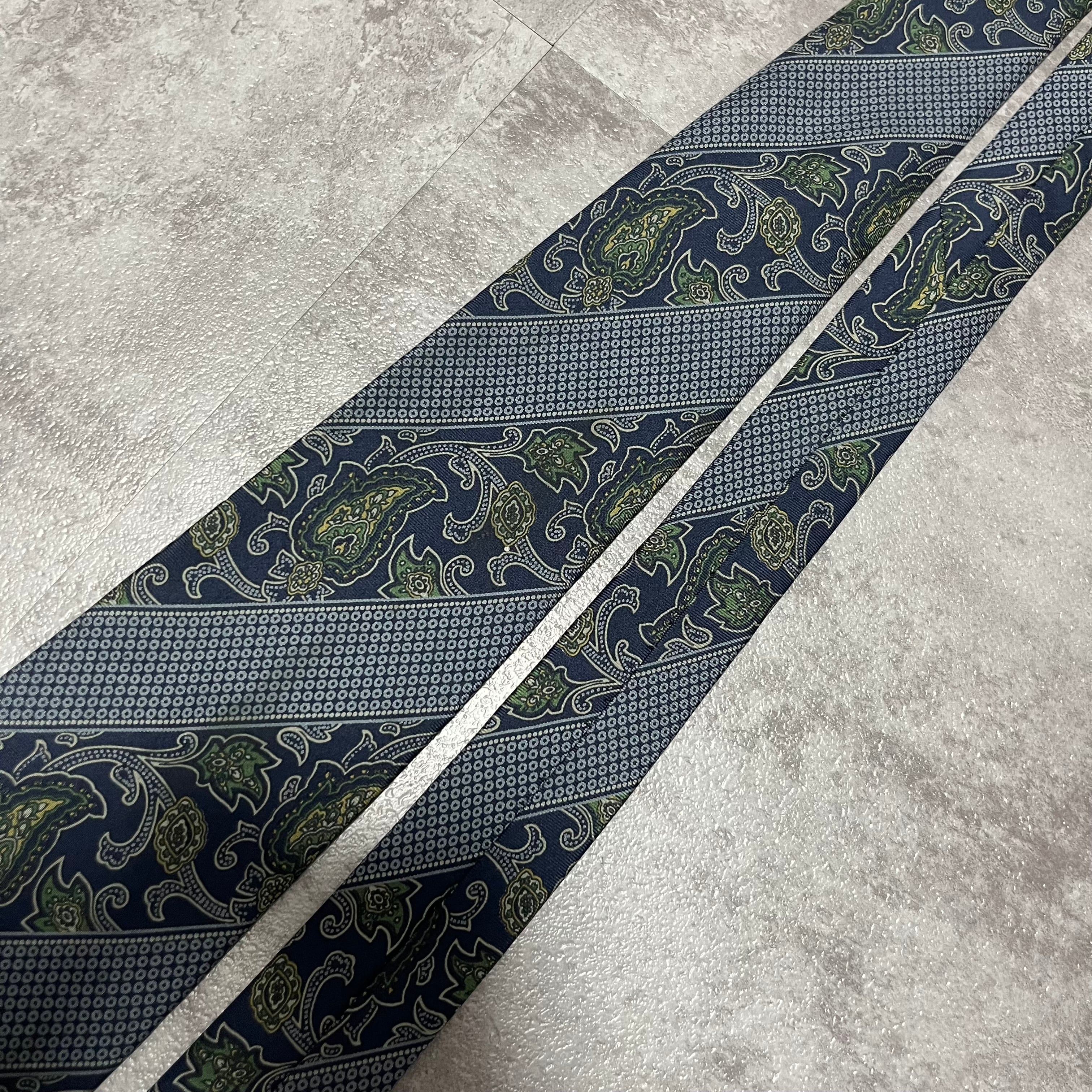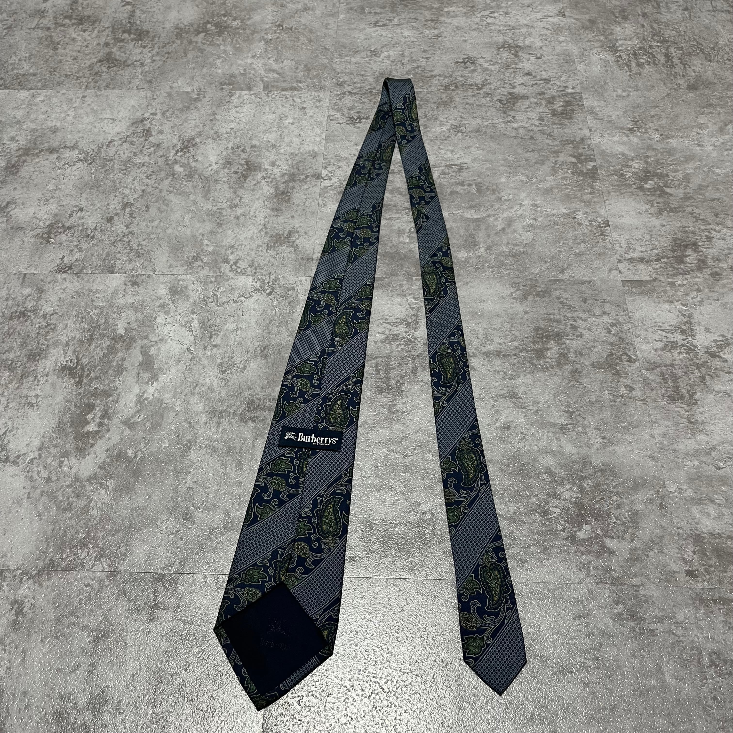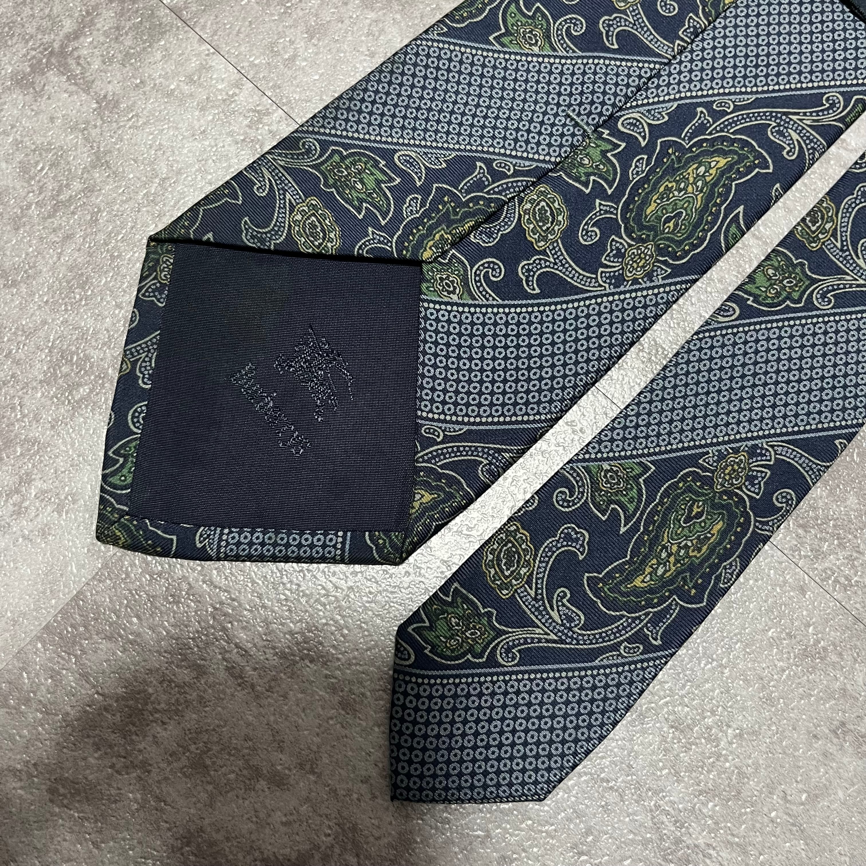 【Burberry】ストライプ×ペイズリー柄ネクタイ ネイビー レジメンタルストライプ