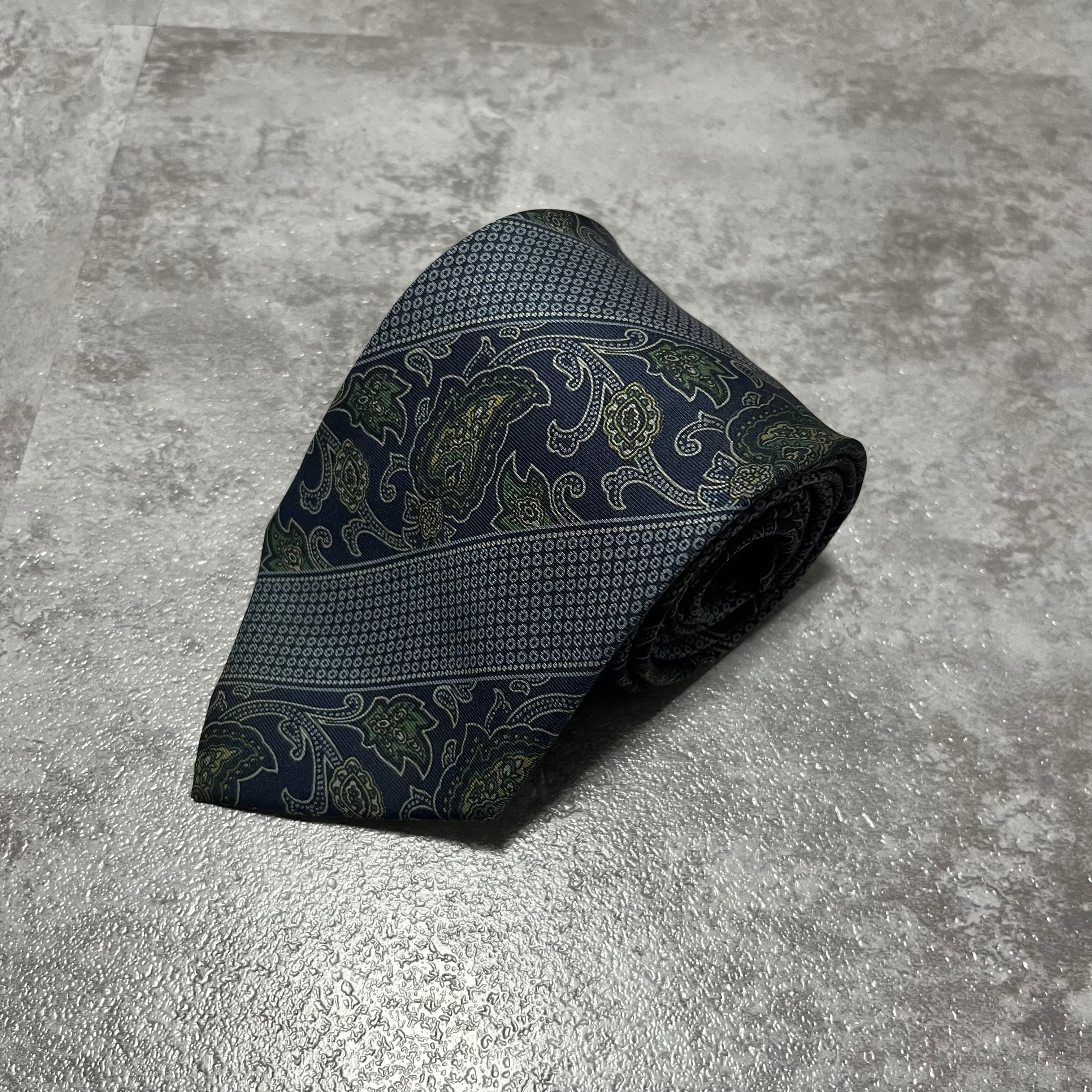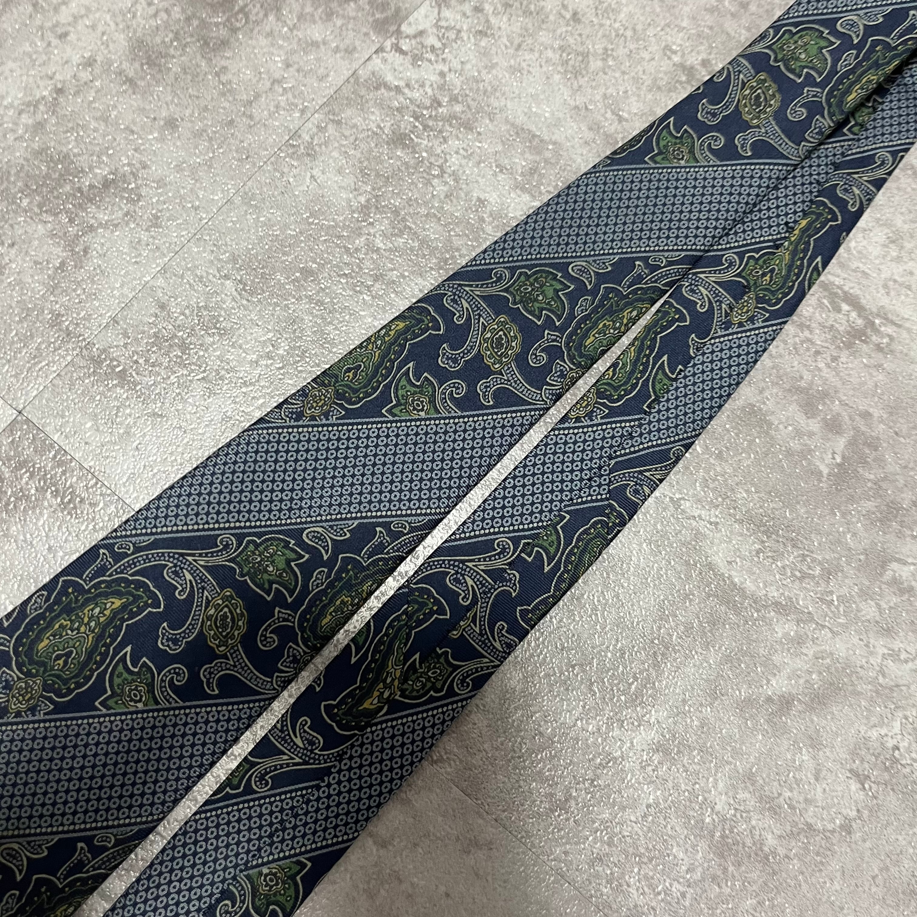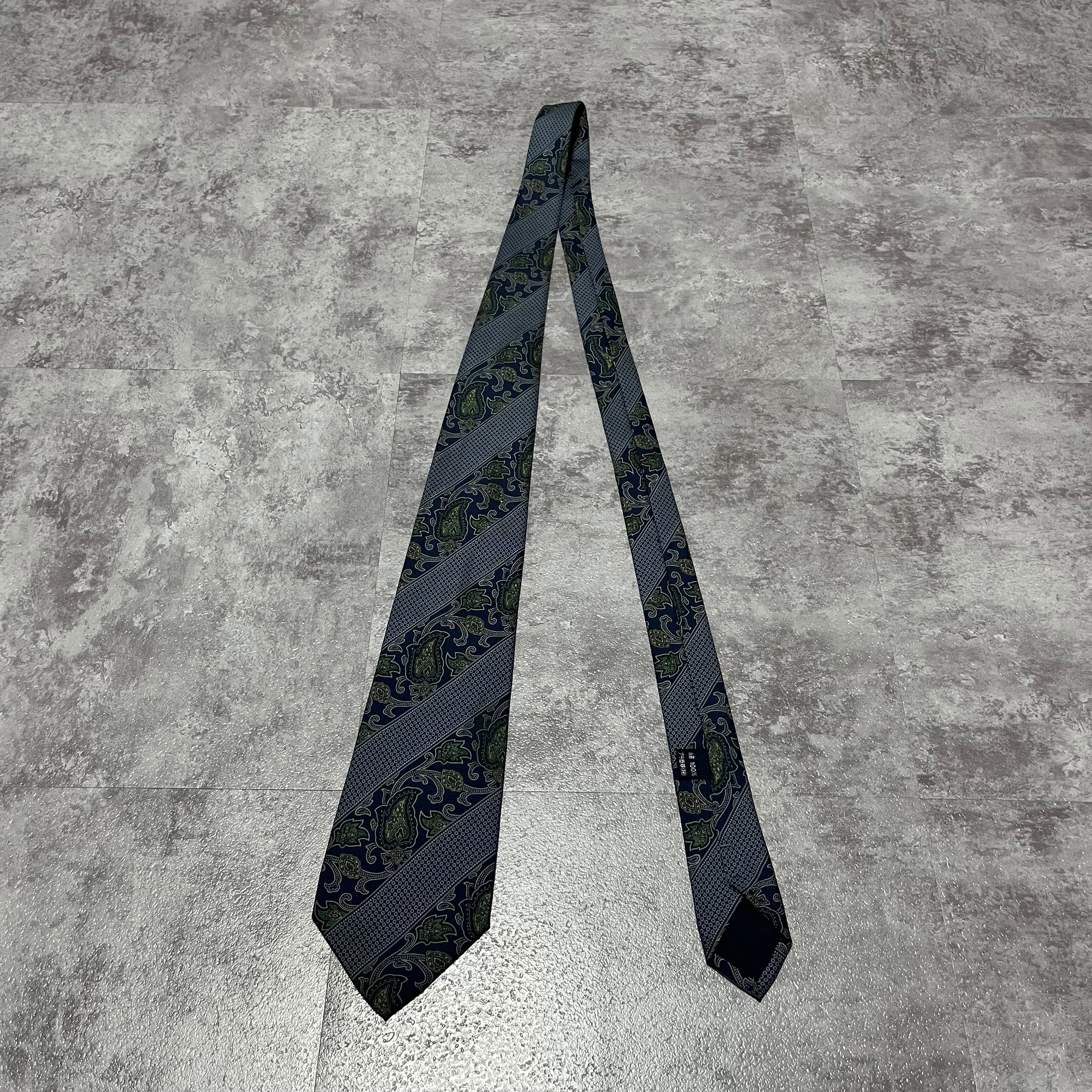 【Burberry】ストライプ×ペイズリー柄ネクタイ ネイビー レジメンタルストライプ