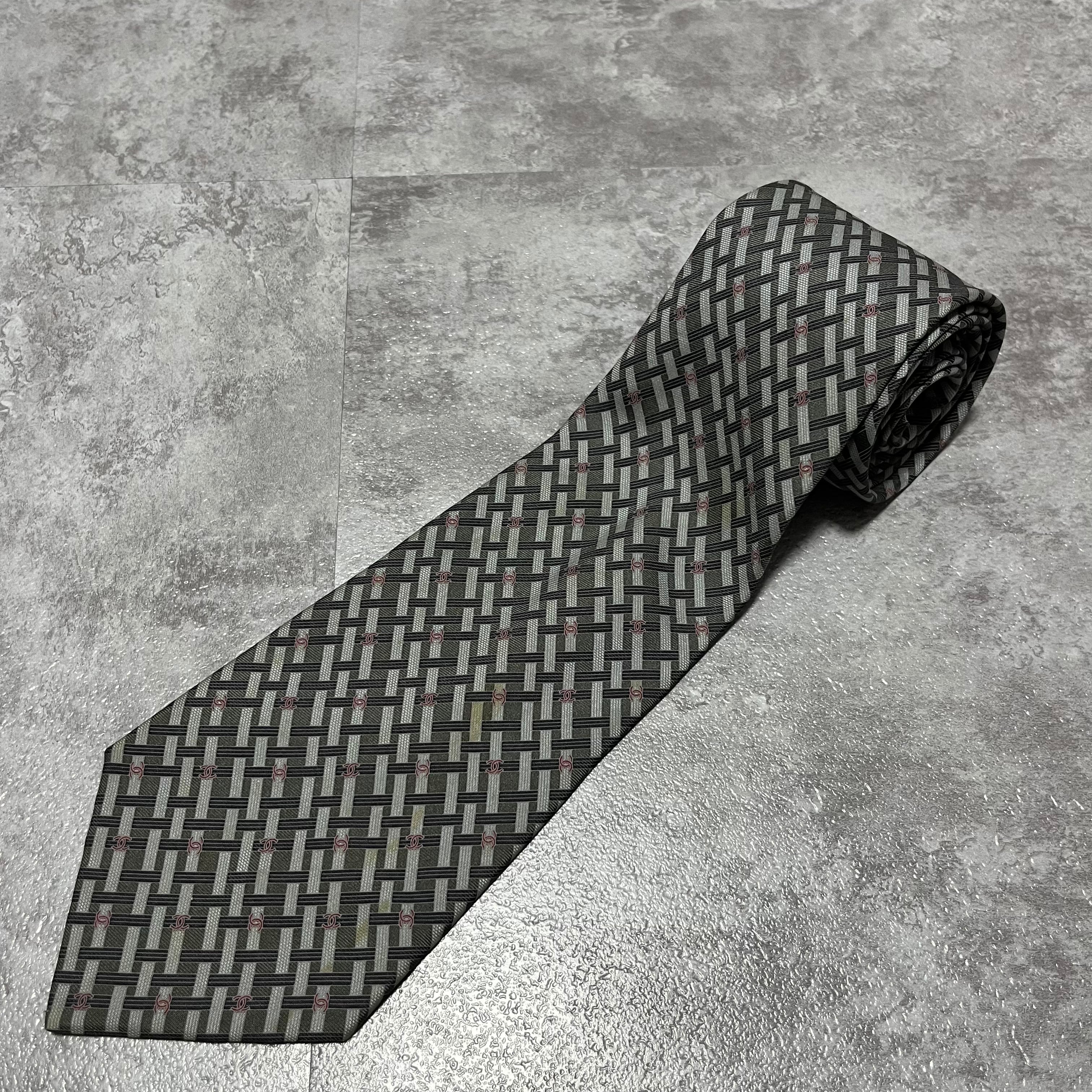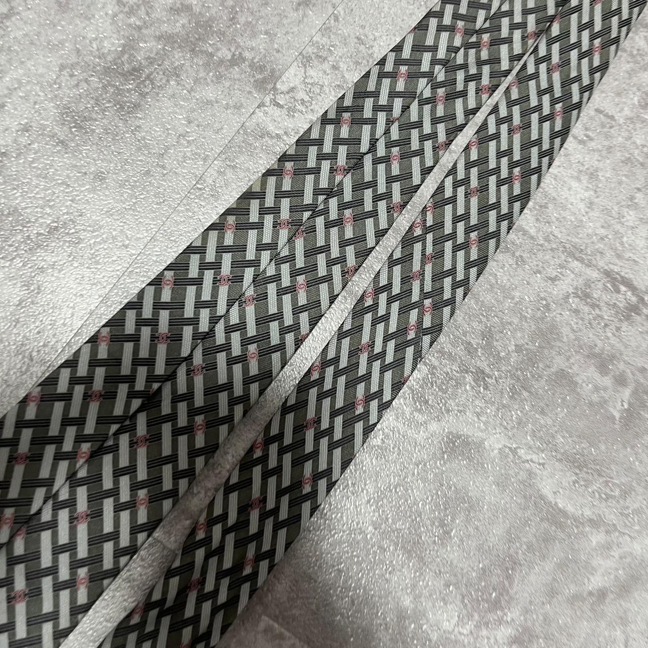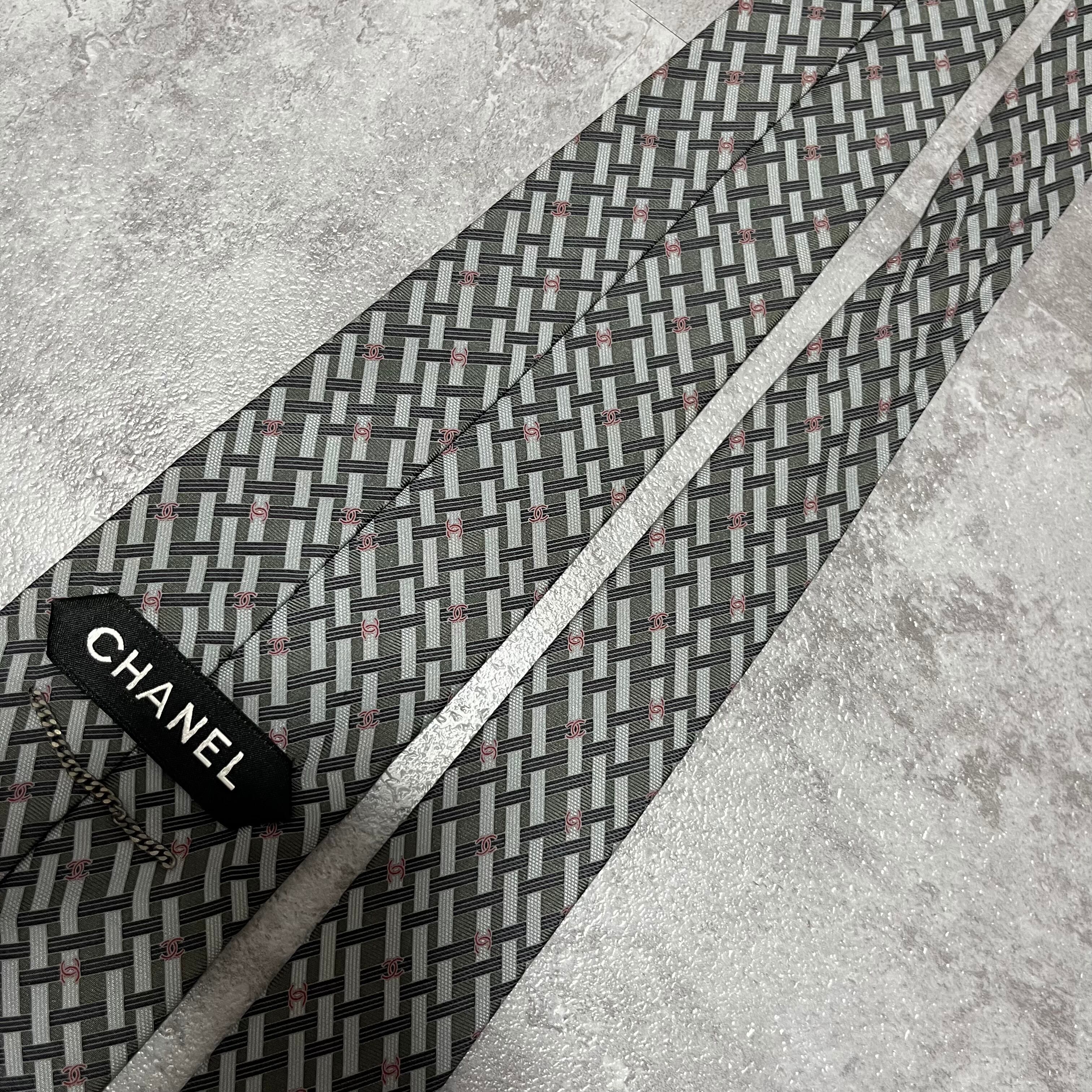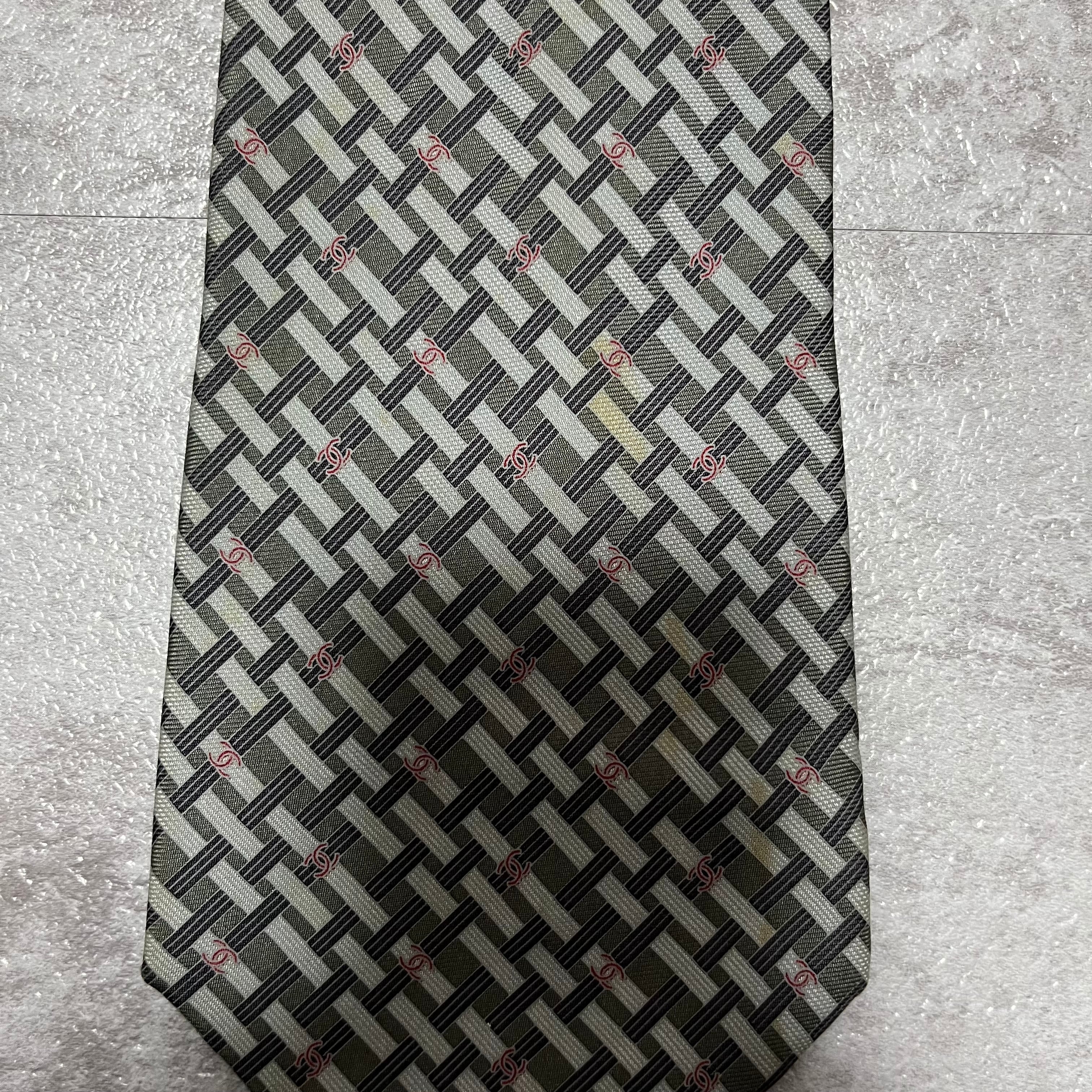 【CHANEL】チェック柄ネクタイ ロゴ入り ココマーク グレー