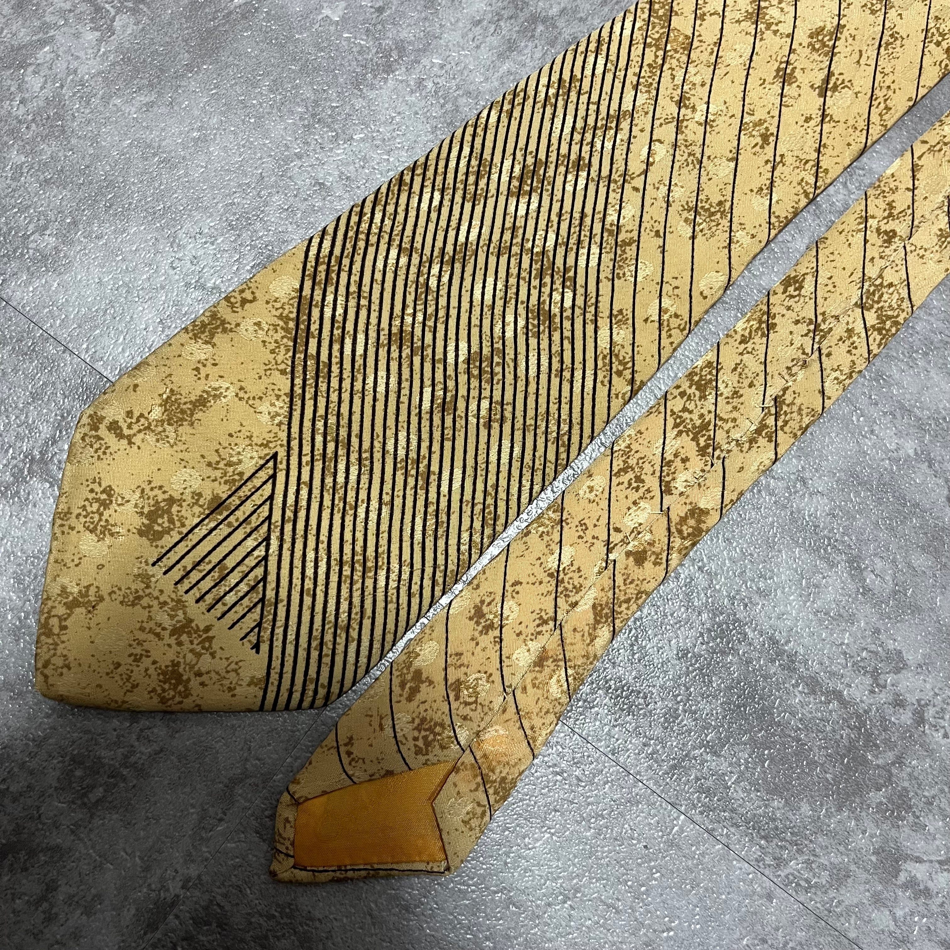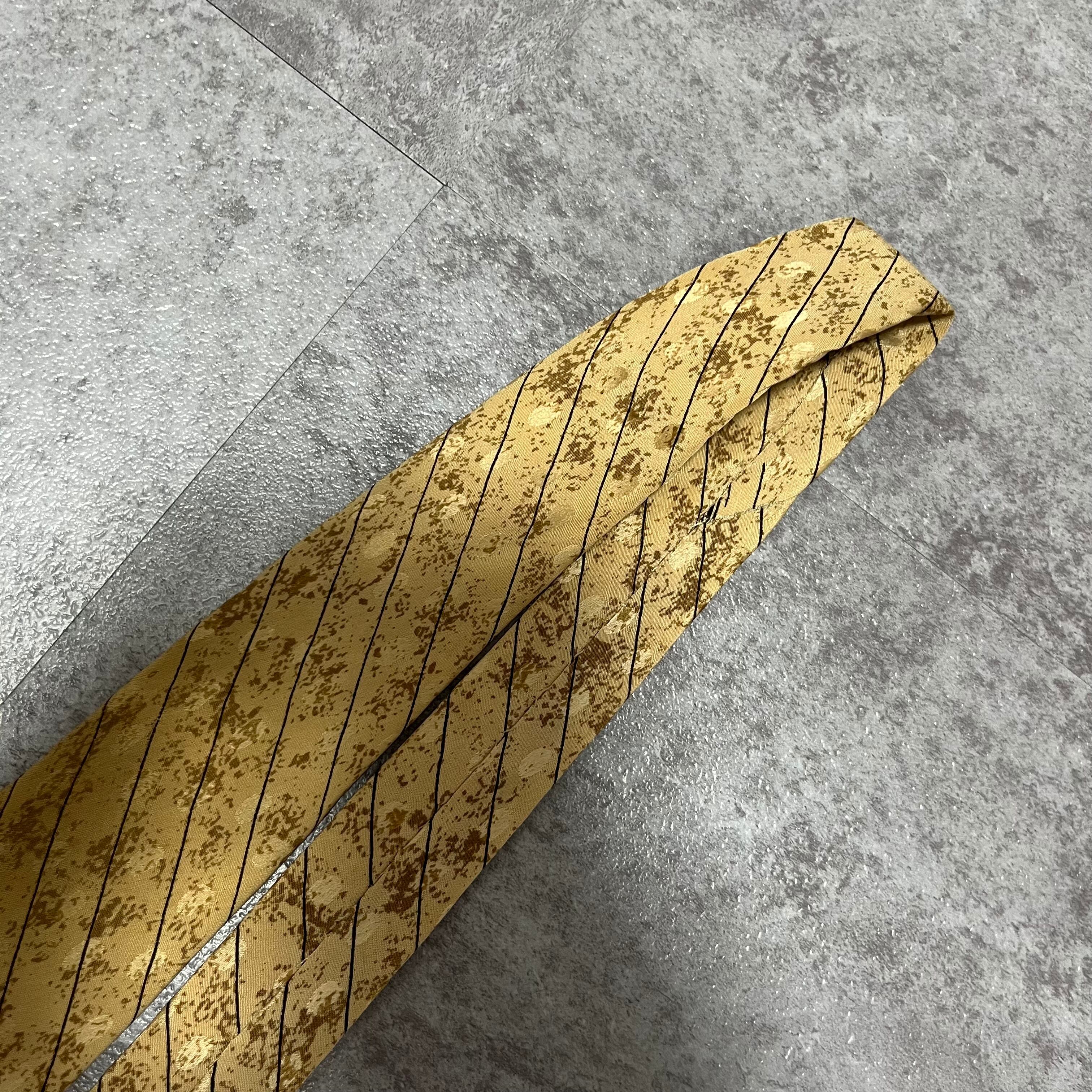 【Christian Dior】切り替えデザイン ストライプネクタイ イエロー シャドウドット