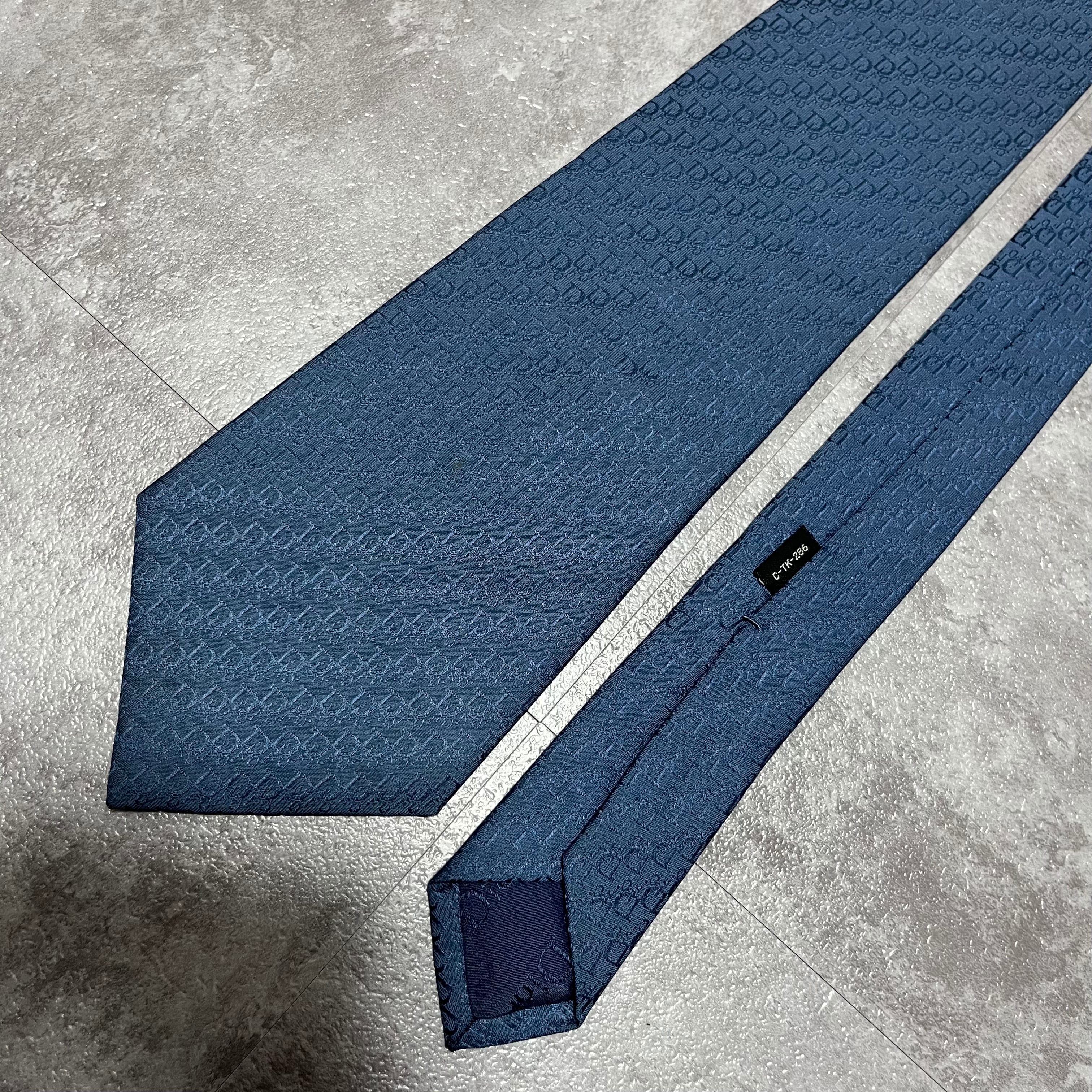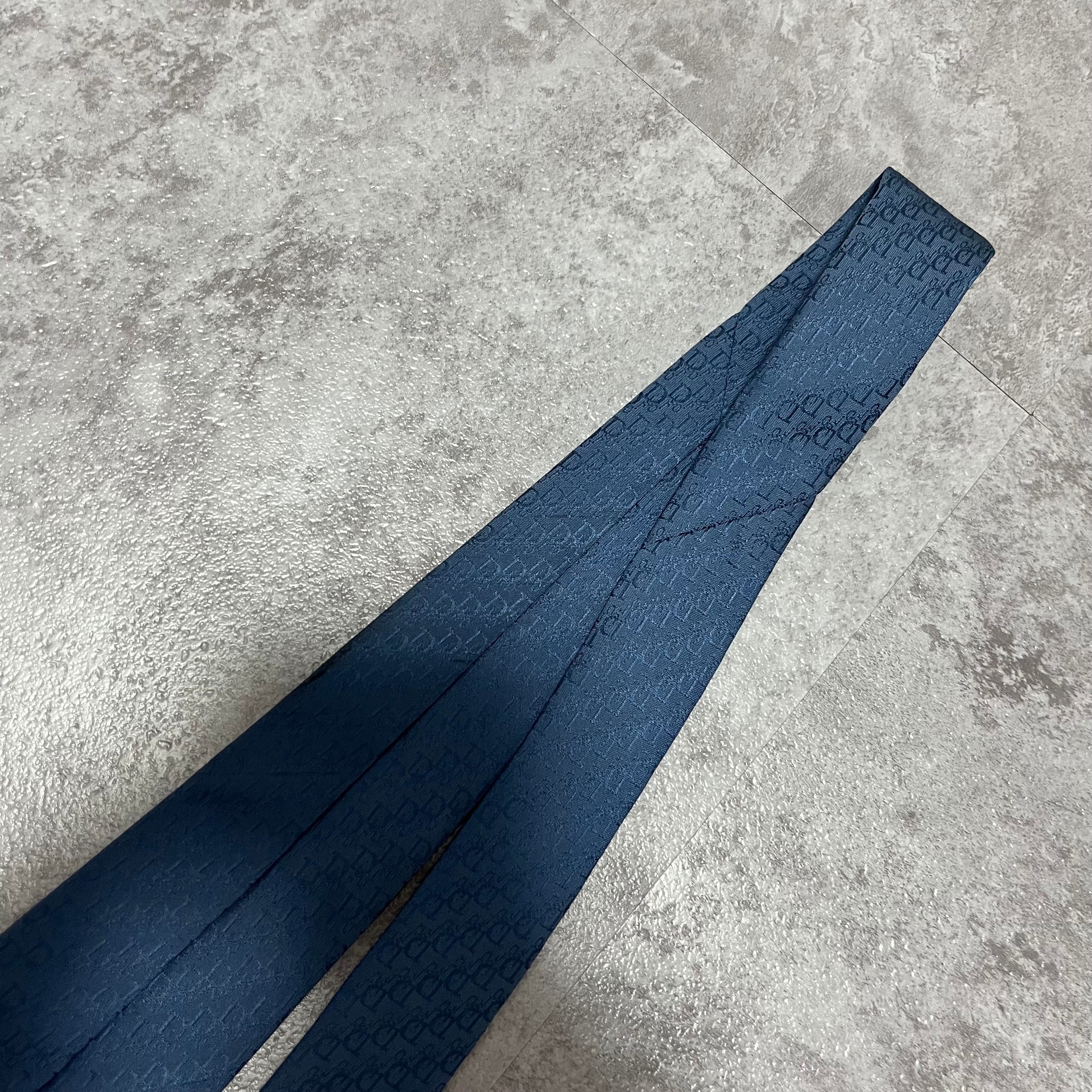 【Christian Dior】トロッター柄ネクタイ ブルー 光沢 総ロゴ