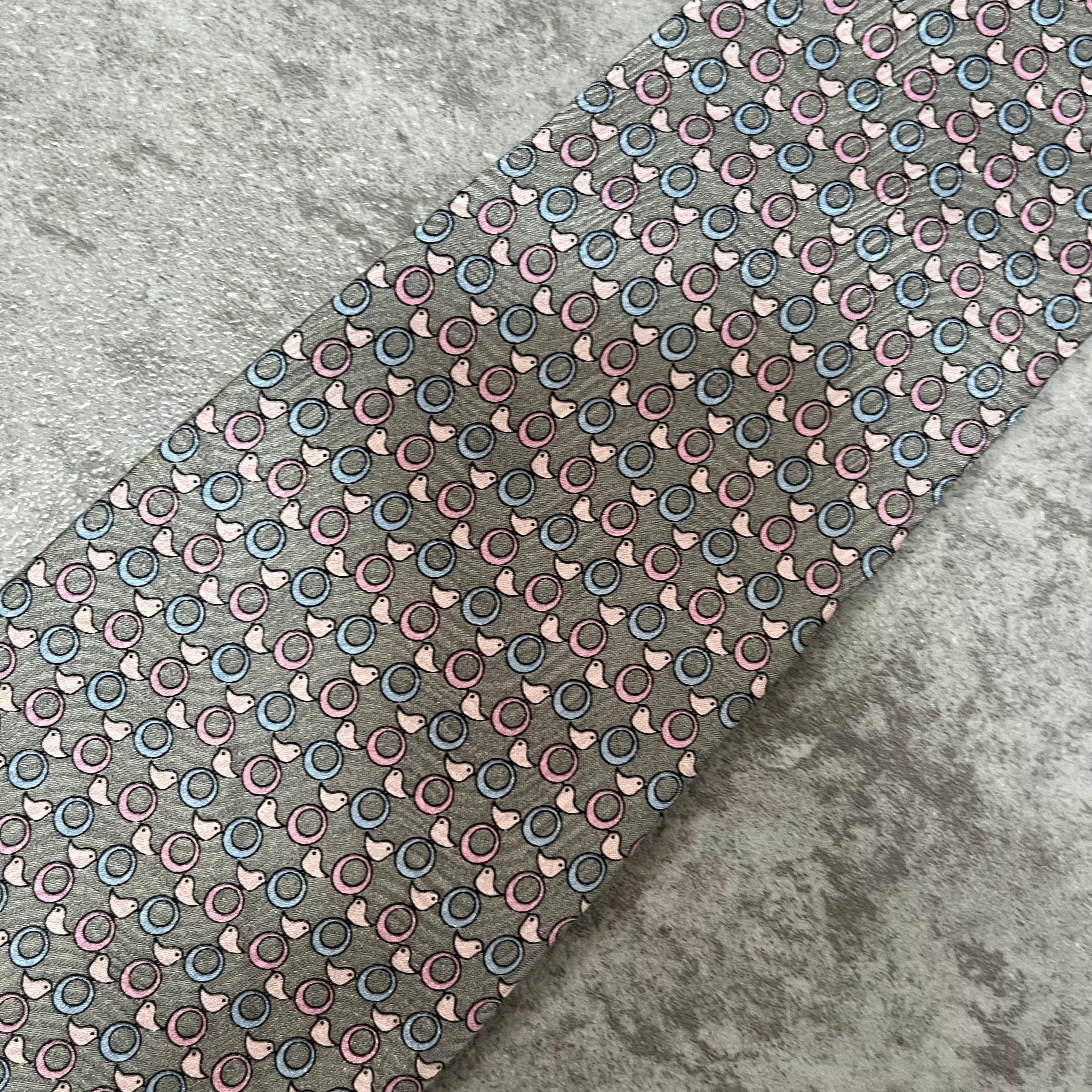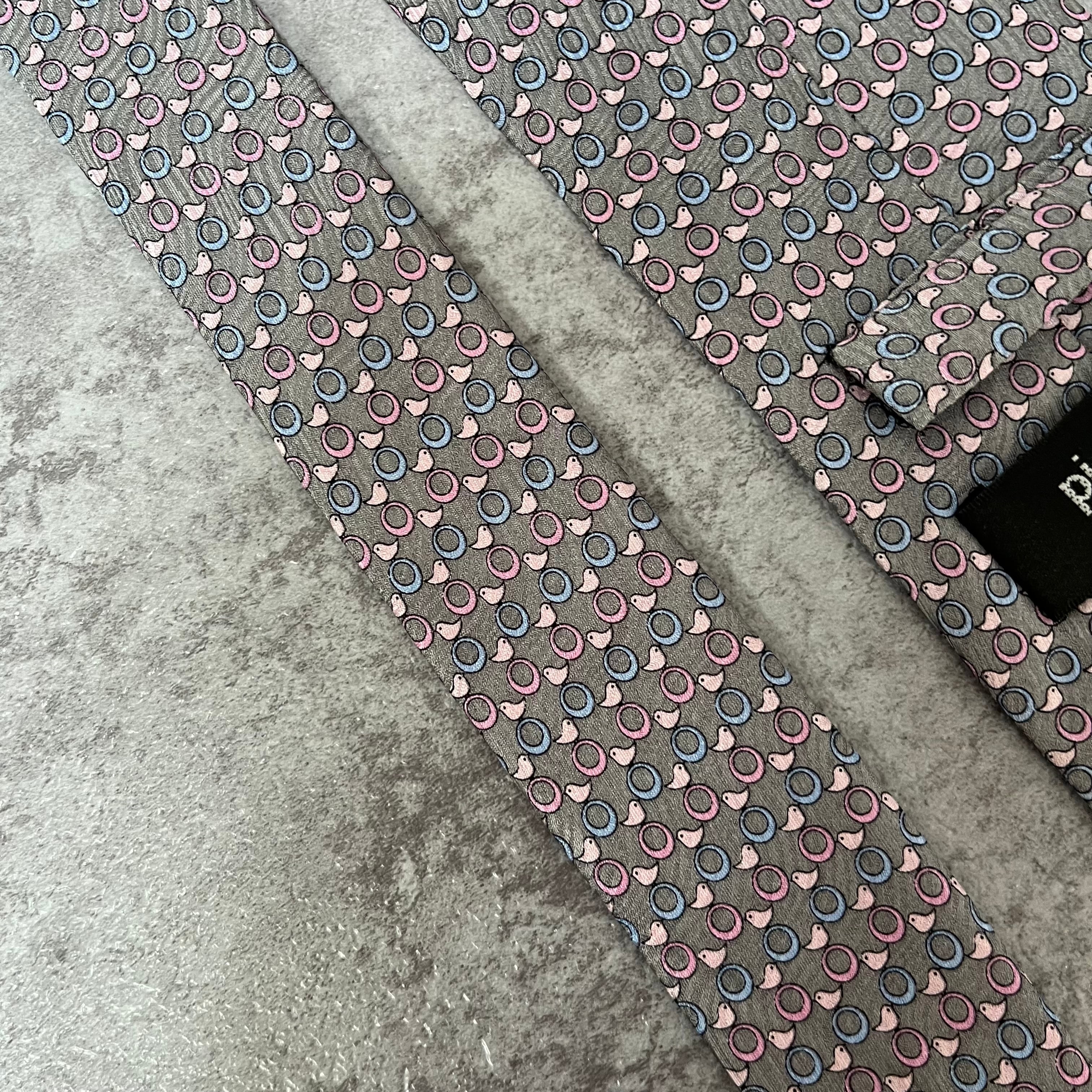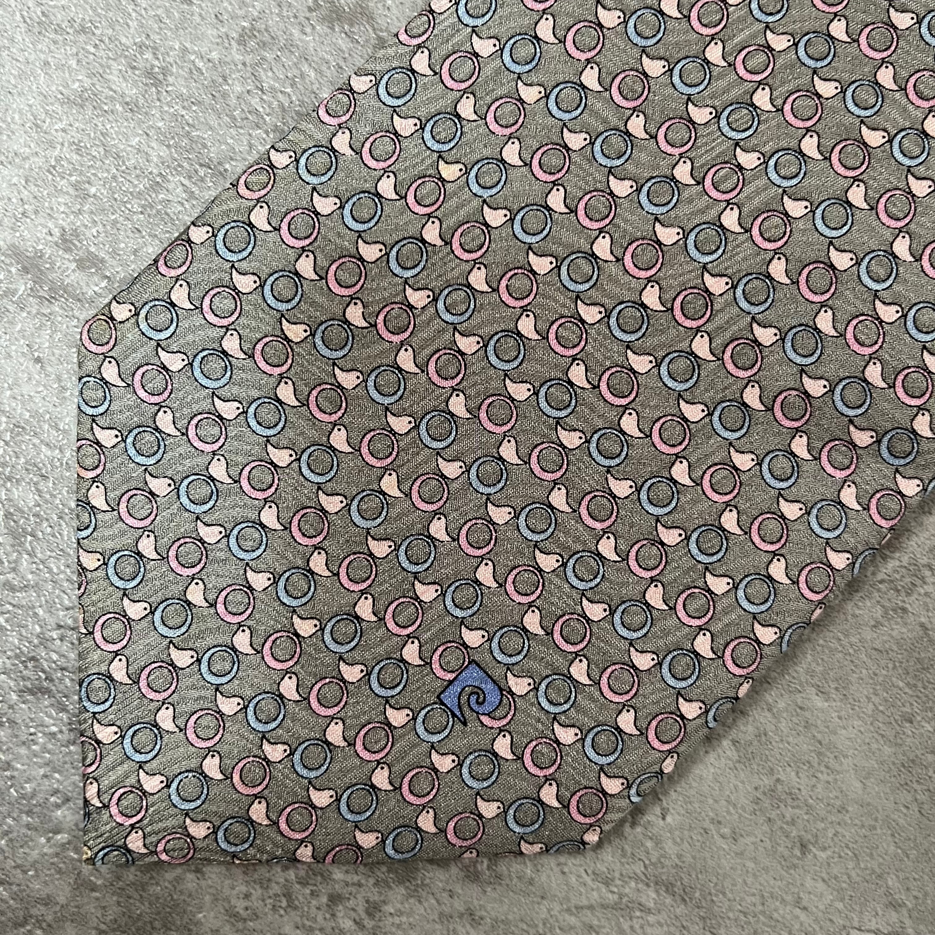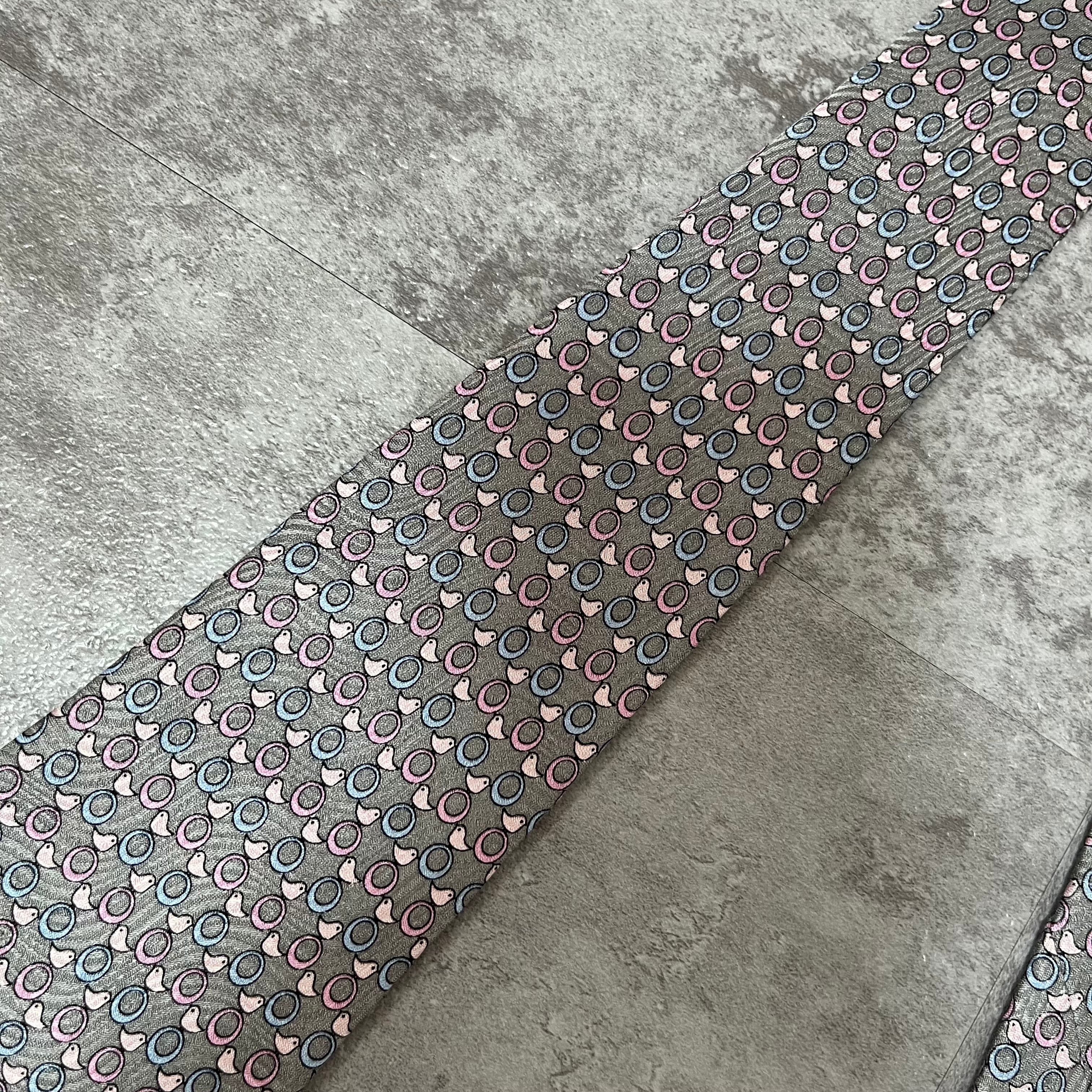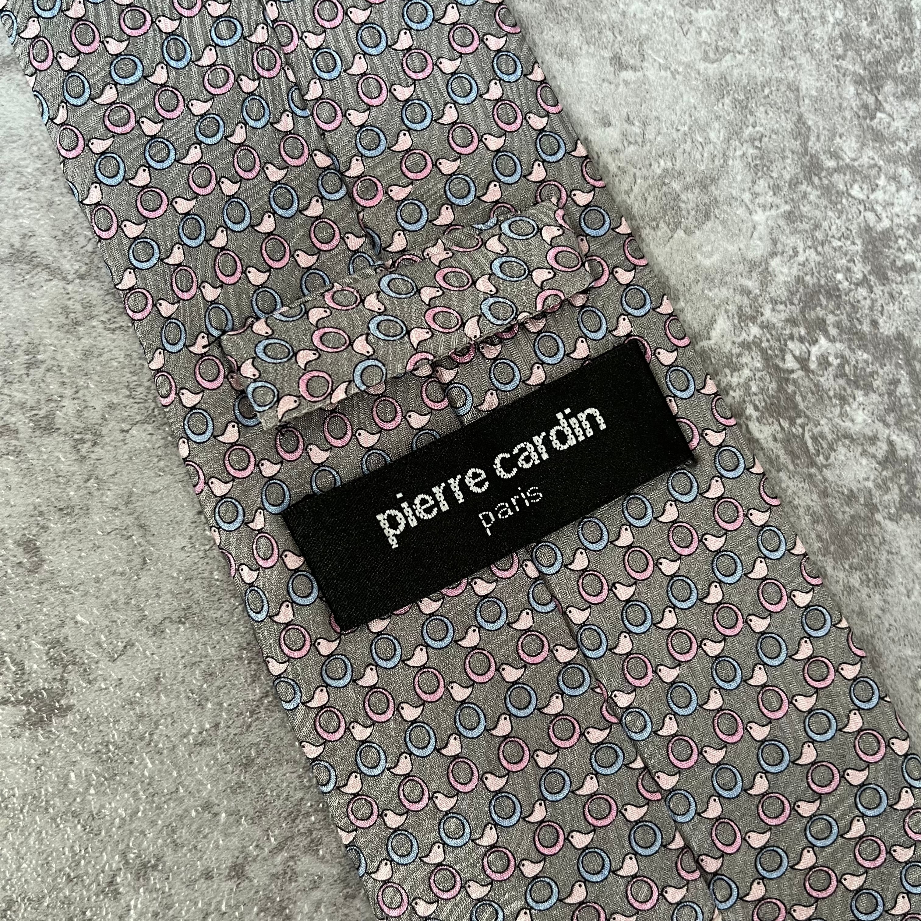 【pierre cardin】アニマル柄ネクタイ ひよこと輪っか グレー ロゴ入り